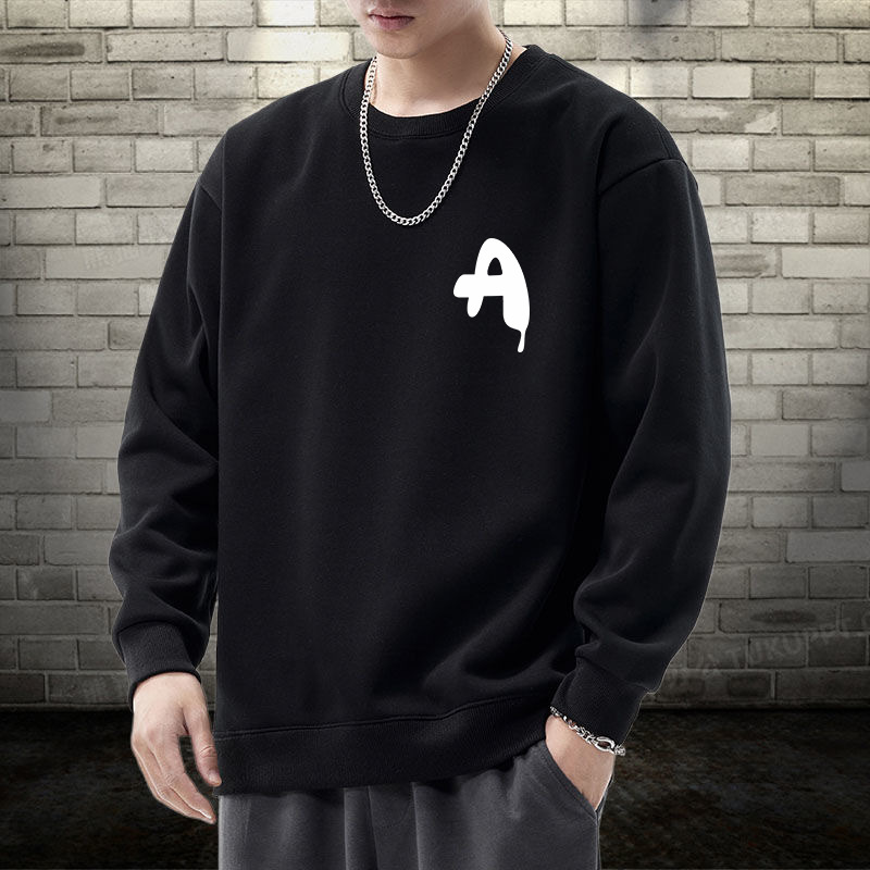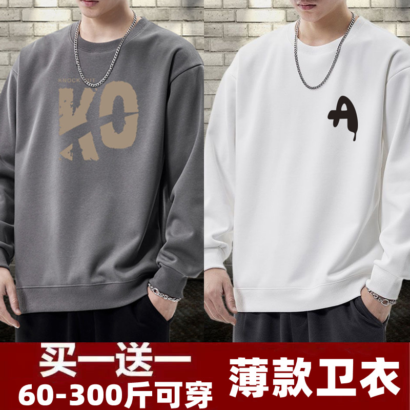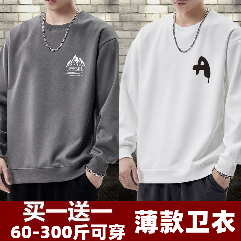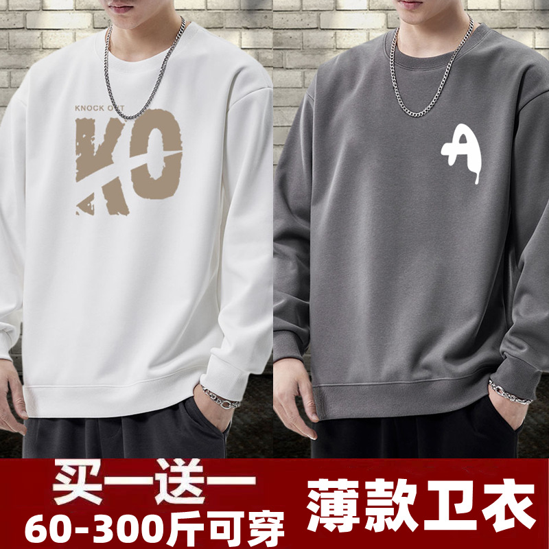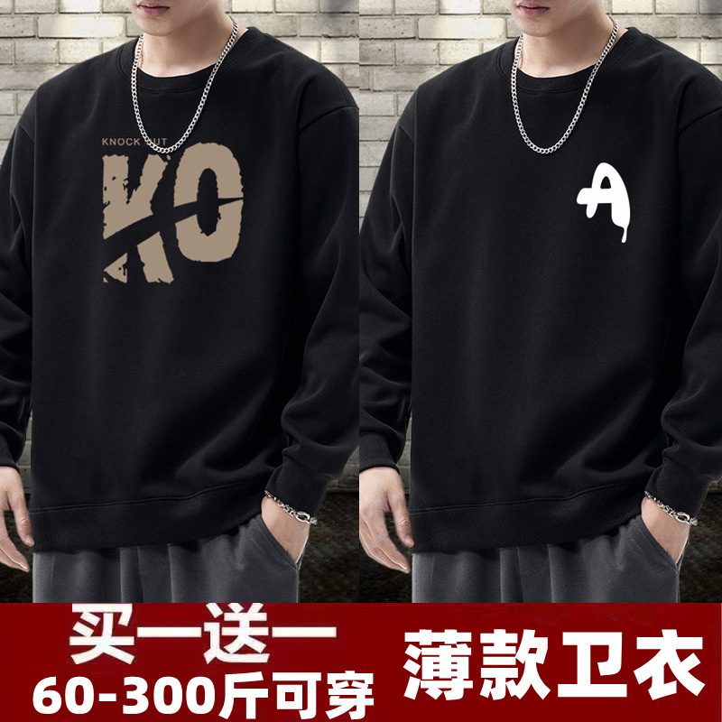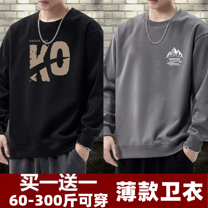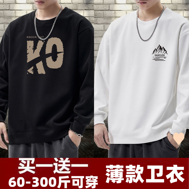 男士卫衣春秋薄款大码男装长袖圆领套头外套2024新款港风打底男装