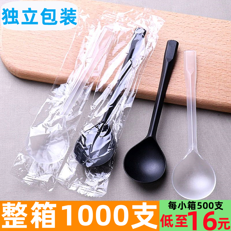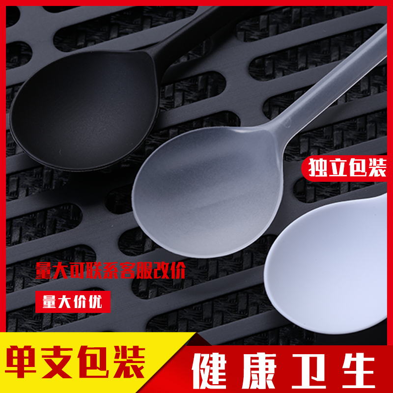 일회용 스푼 플라스틱 긴 손잡이 테이크 아웃 포장 호텔 작은 숟가락 두꺼운 상업 거북이 전체 케이스 블랙 수프 스푼스토어 가기