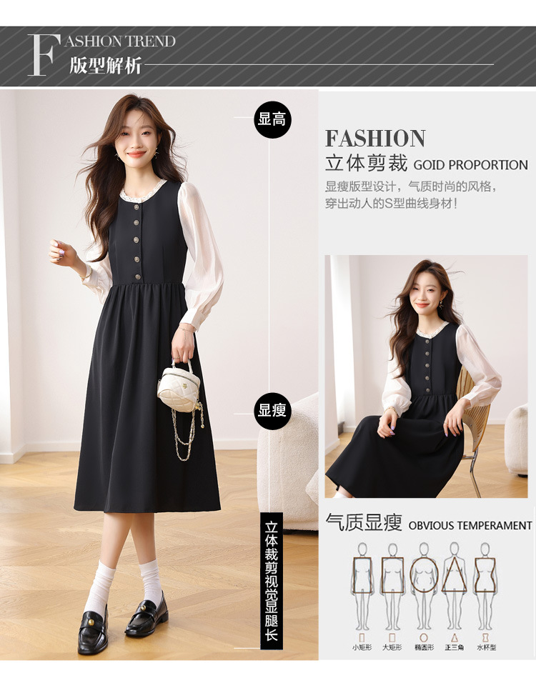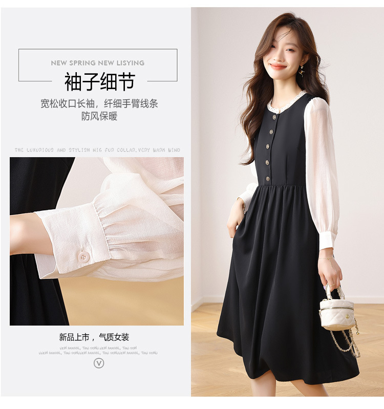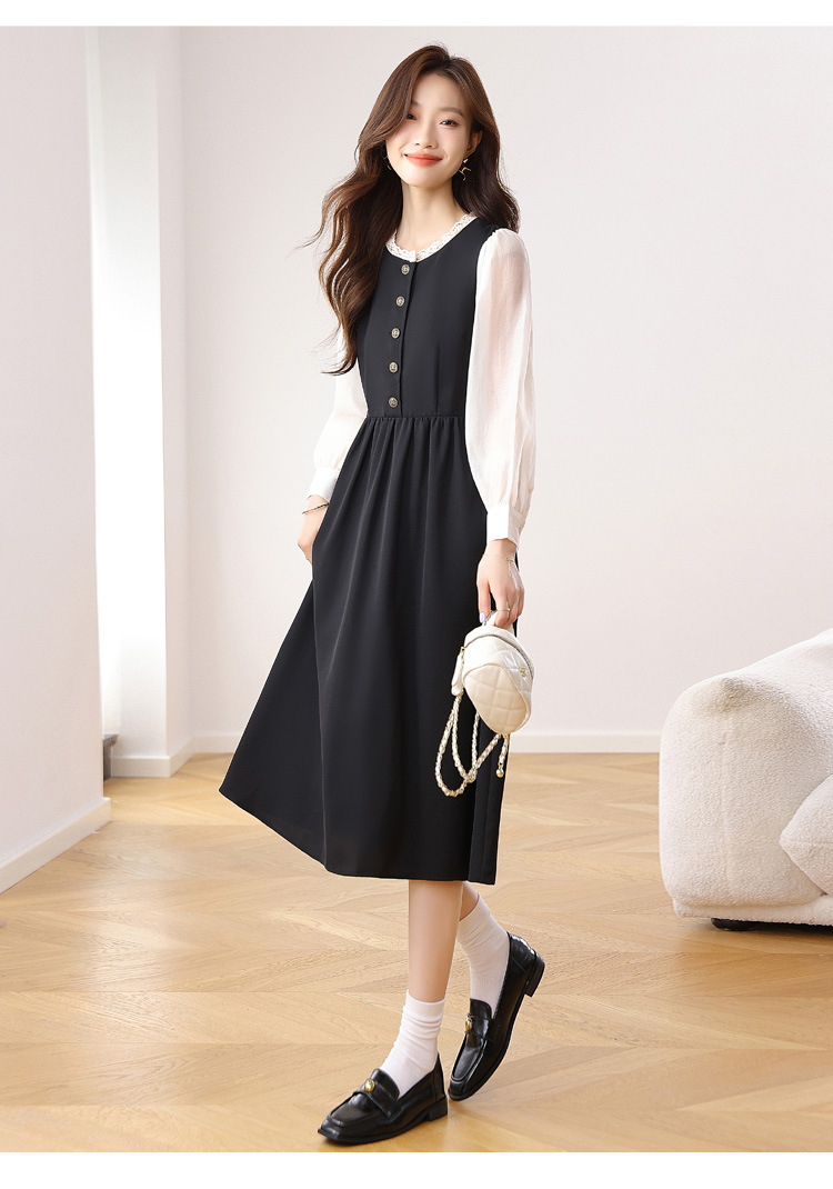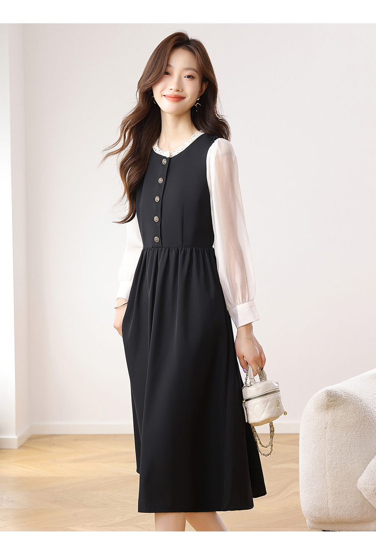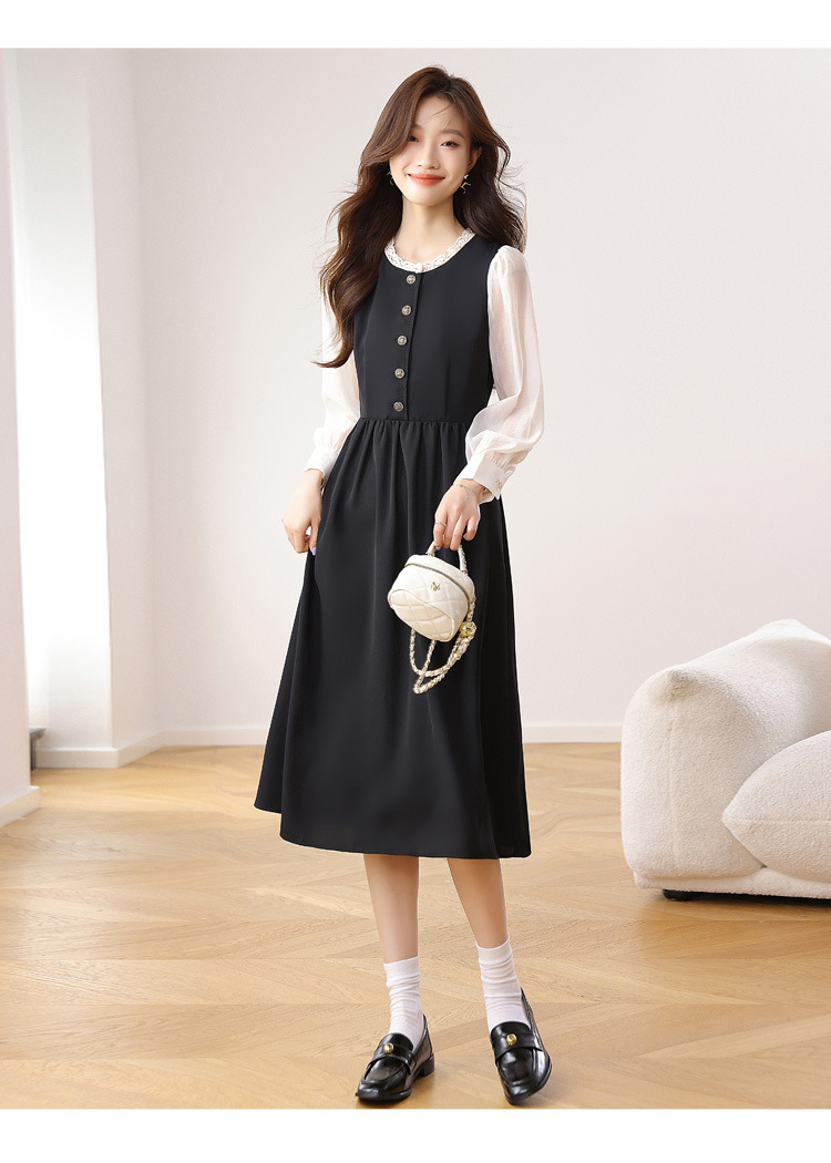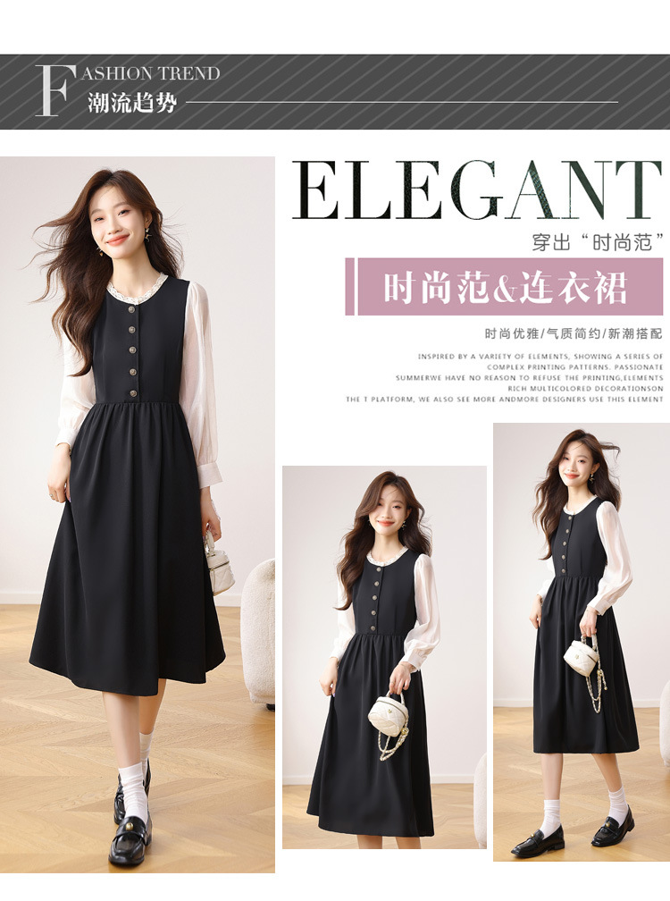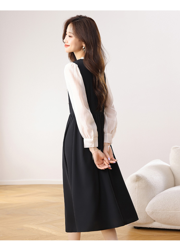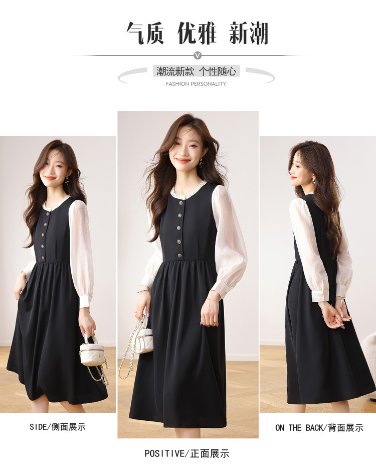 향기로운 스타일 프랑스 스타일 가짜 투피스 벨벳 원피스 가을 원피스 작은 여성을위한 새로운 스타일 아름다운 긴 원피스스토어 가기