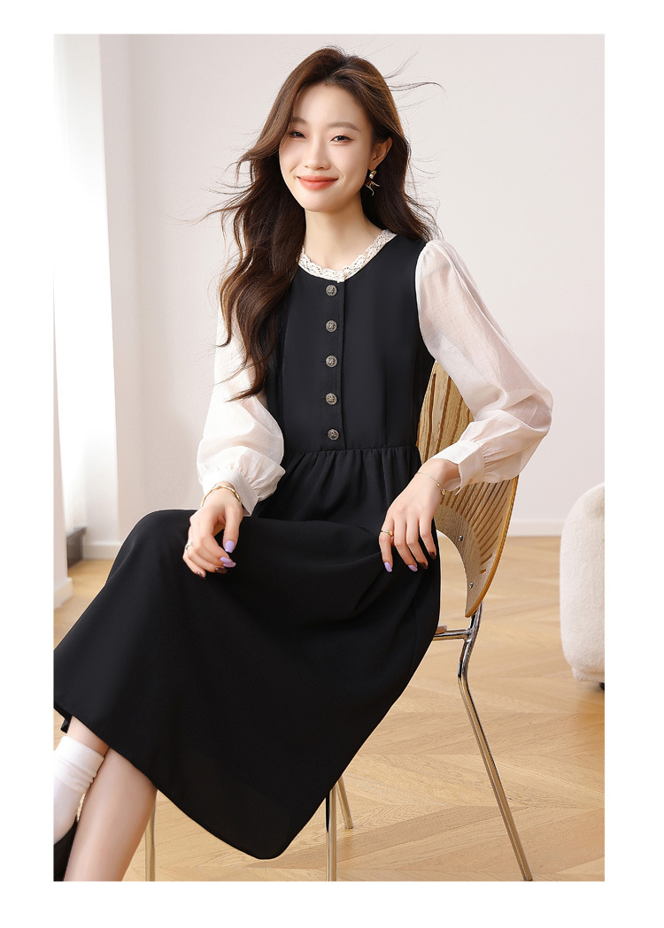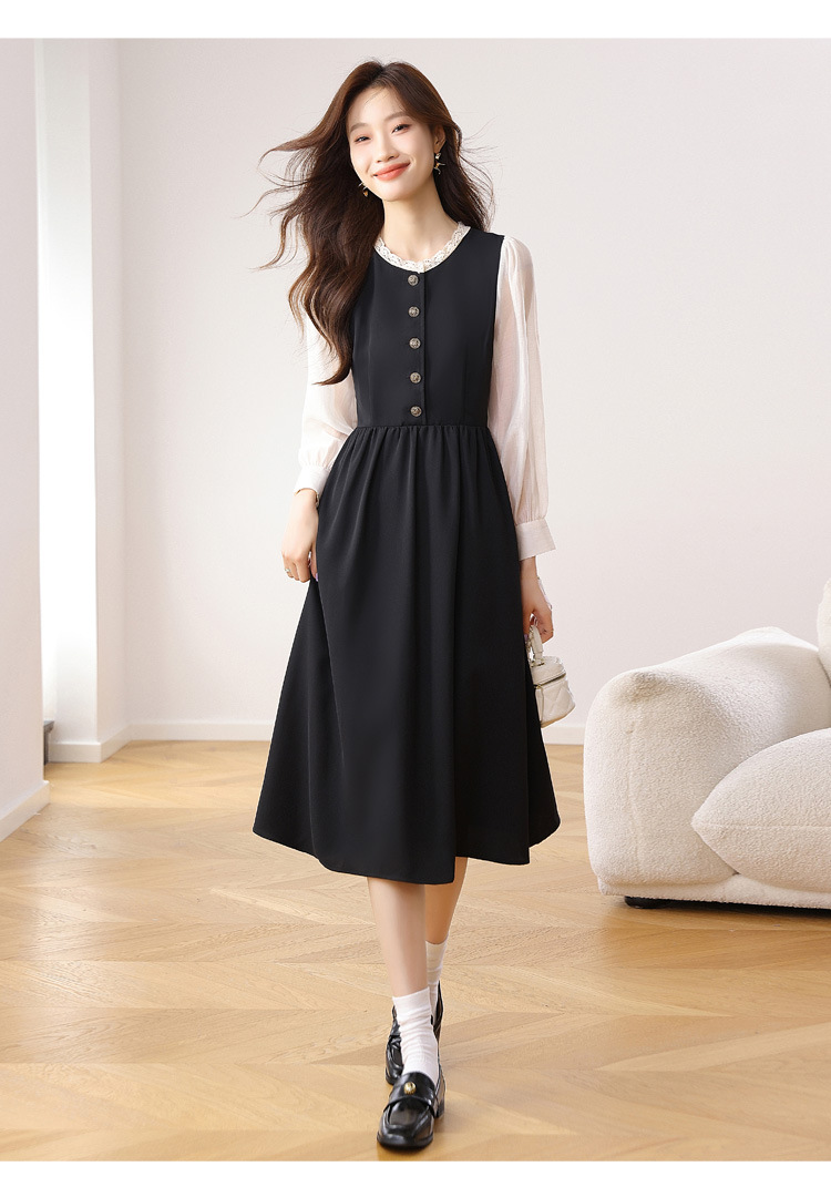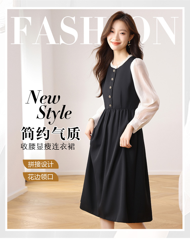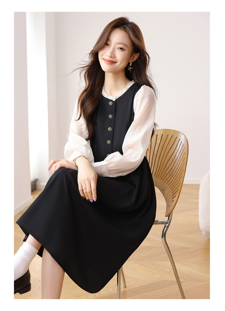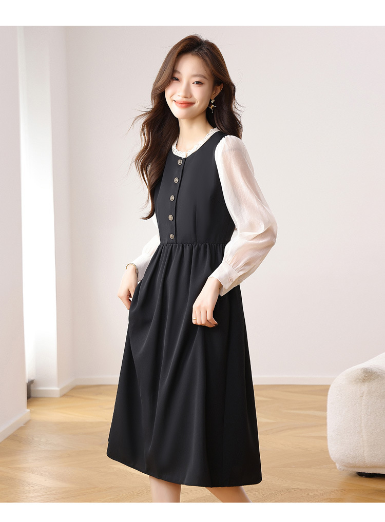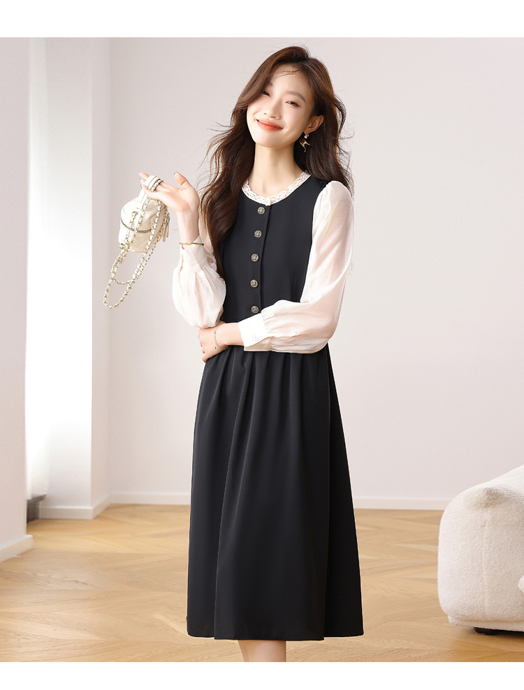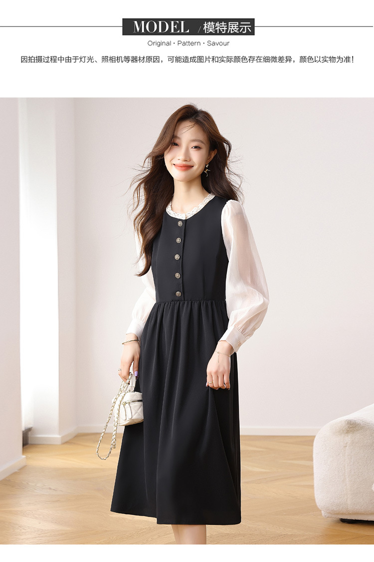 향기로운 스타일 프랑스 스타일 가짜 투피스 벨벳 원피스 가을 원피스 작은 여성을위한 새로운 스타일 아름다운 긴 원피스스토어 가기