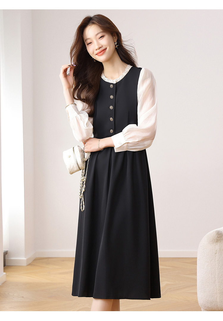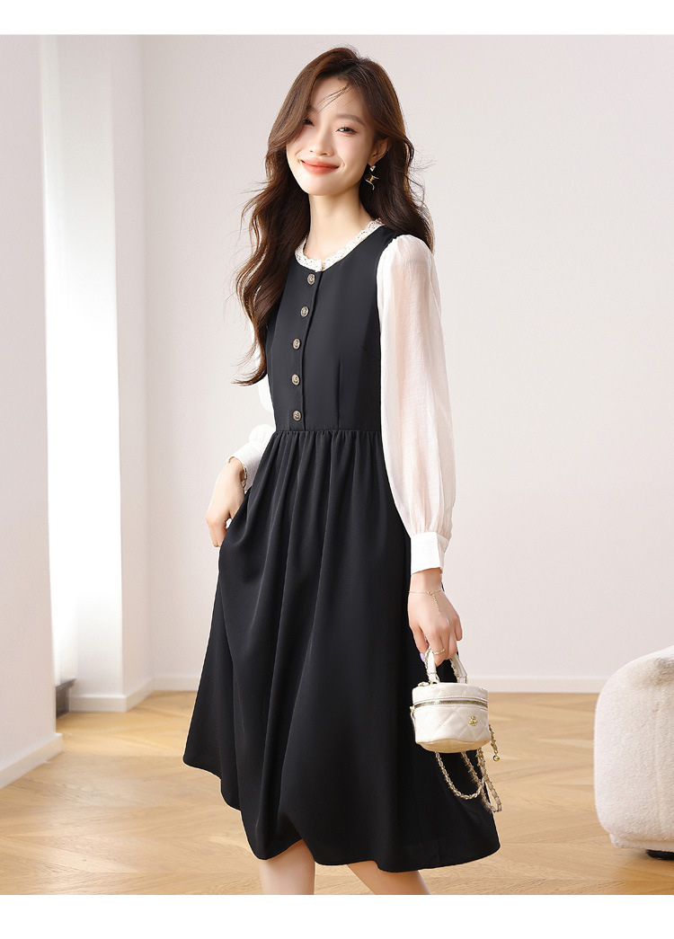 향기로운 스타일 프랑스 스타일 가짜 투피스 벨벳 원피스 가을 원피스 작은 여성을위한 새로운 스타일 아름다운 긴 원피스