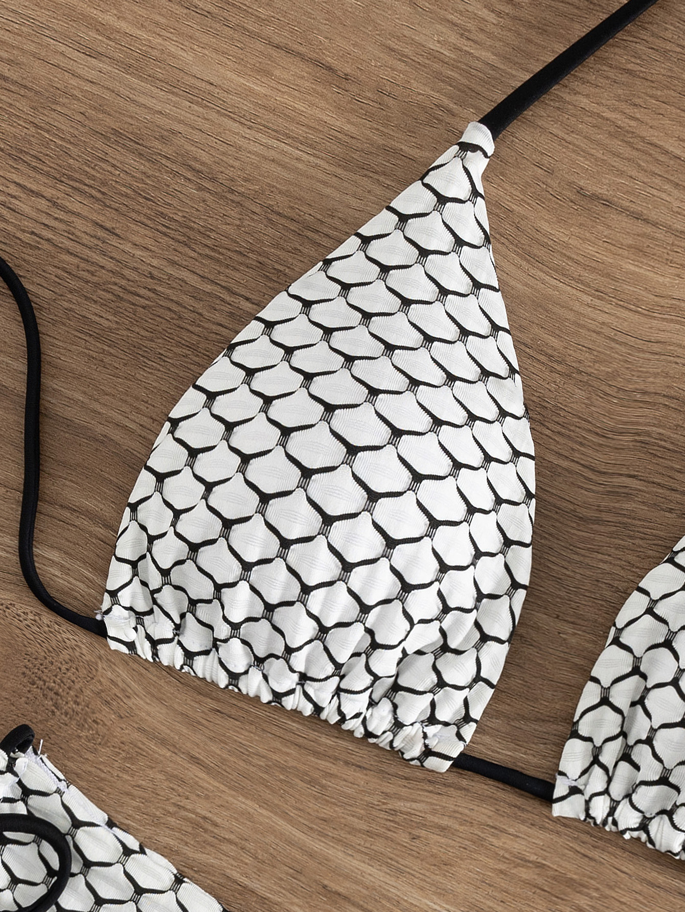 25 년 새로운 대외 무역 섹시한 비키니 2 피스 세트 골판지 패턴 중공 로프 비치 수영복 여성 도매