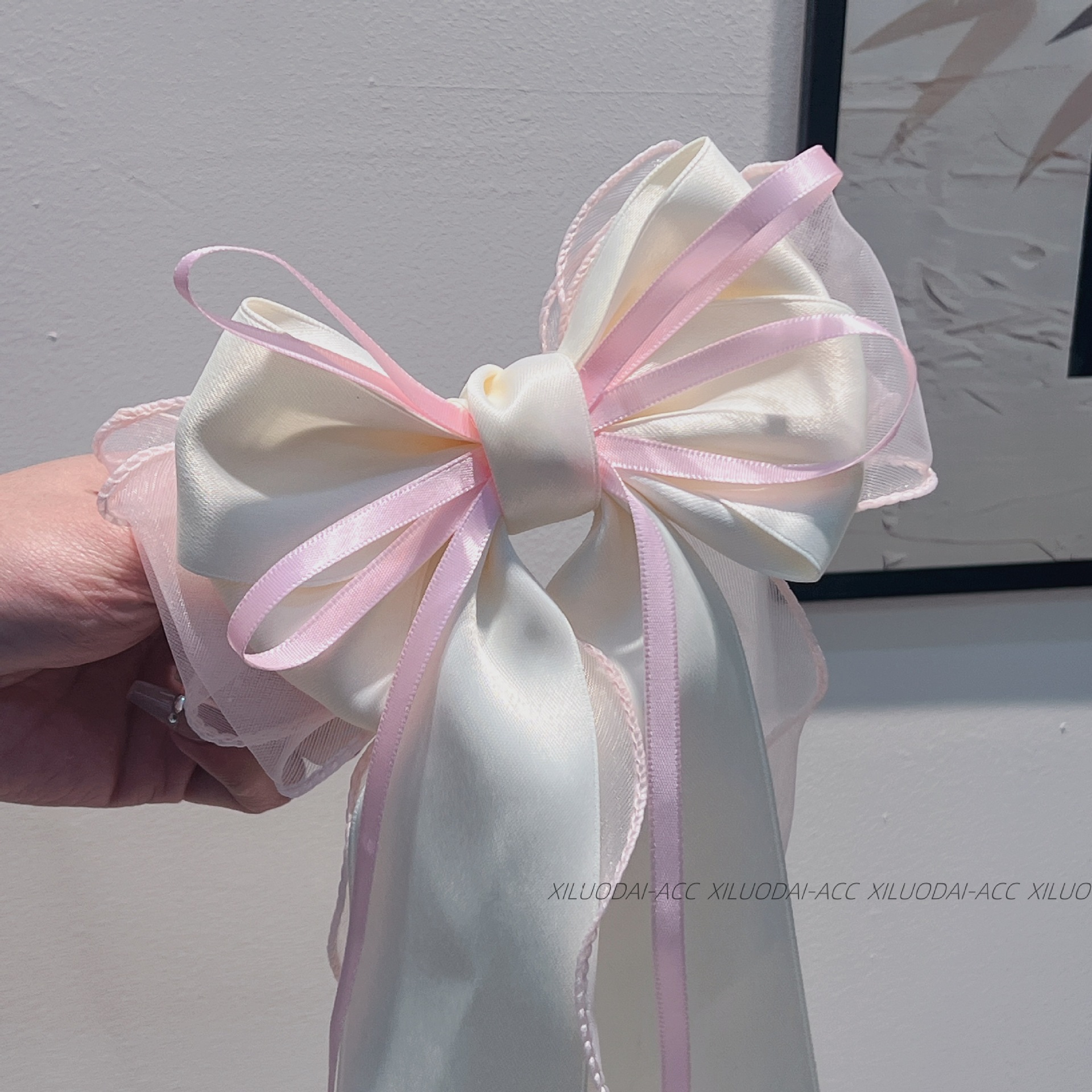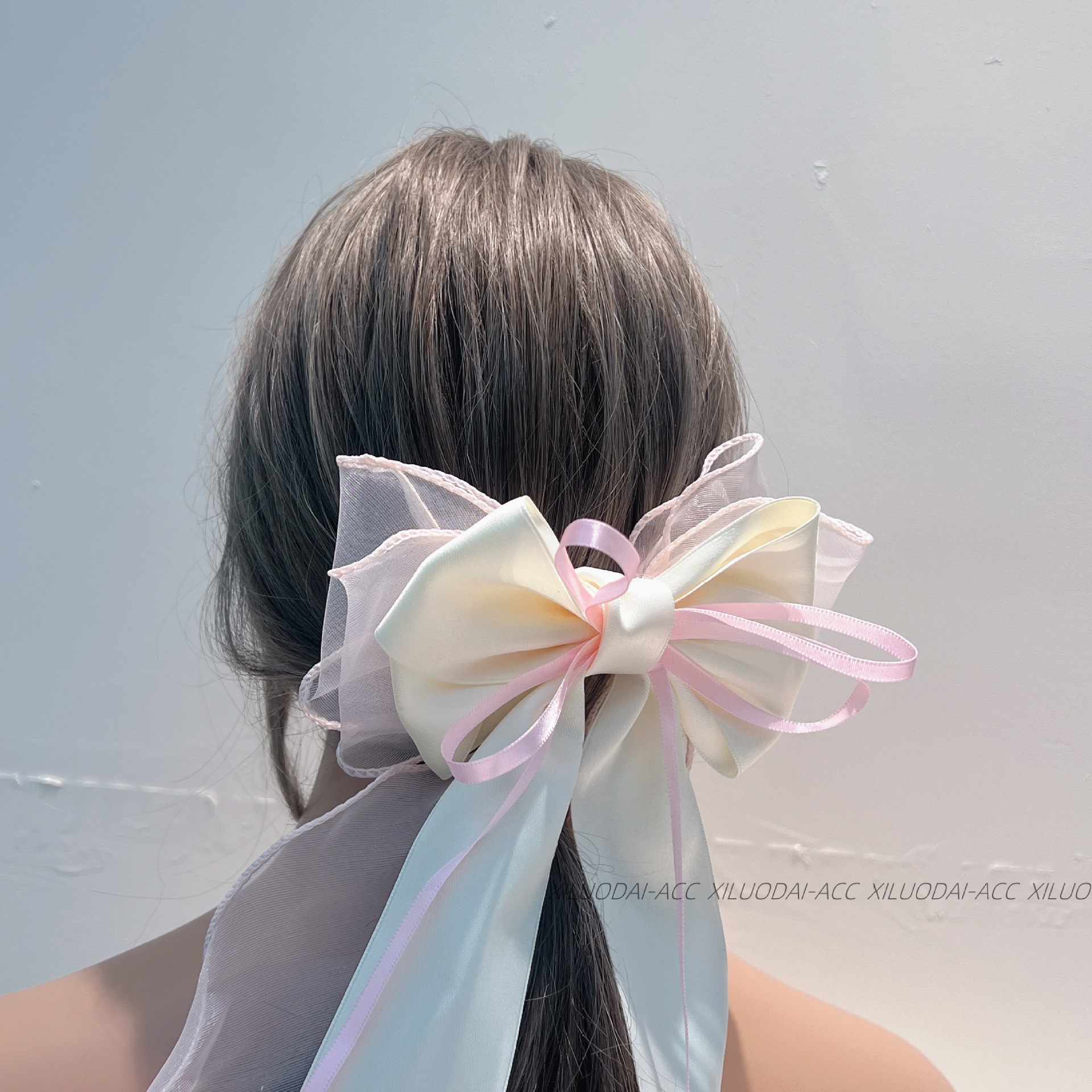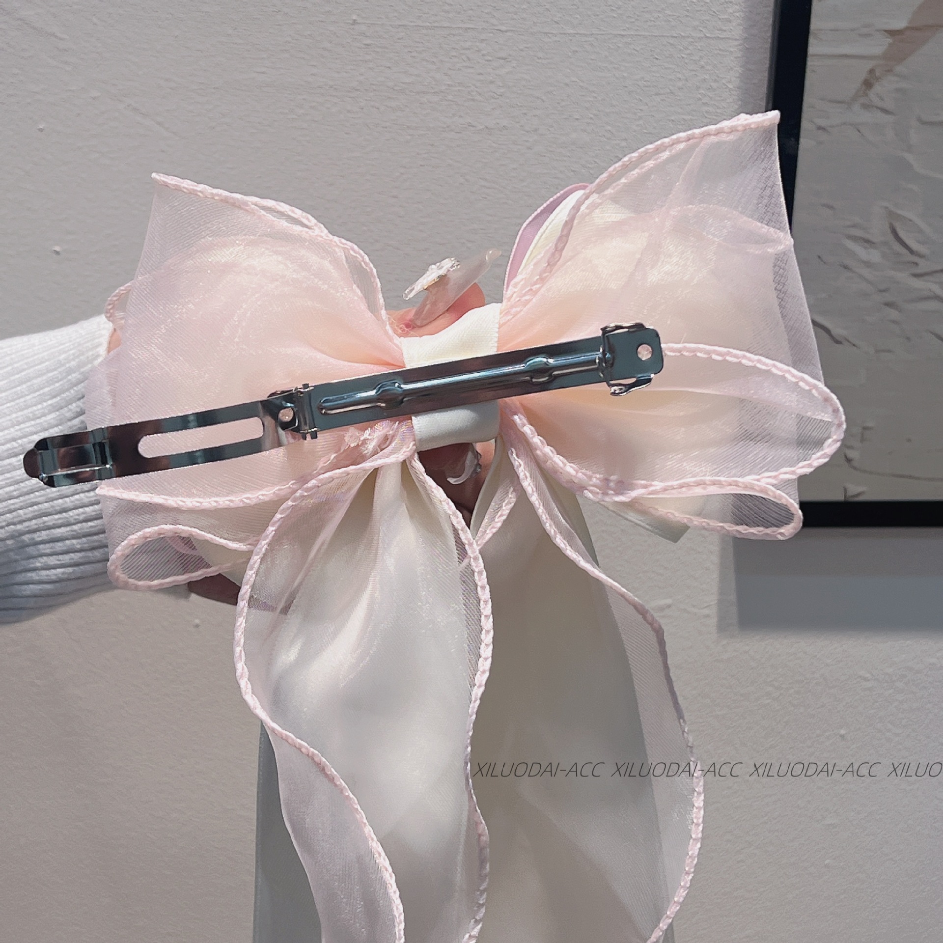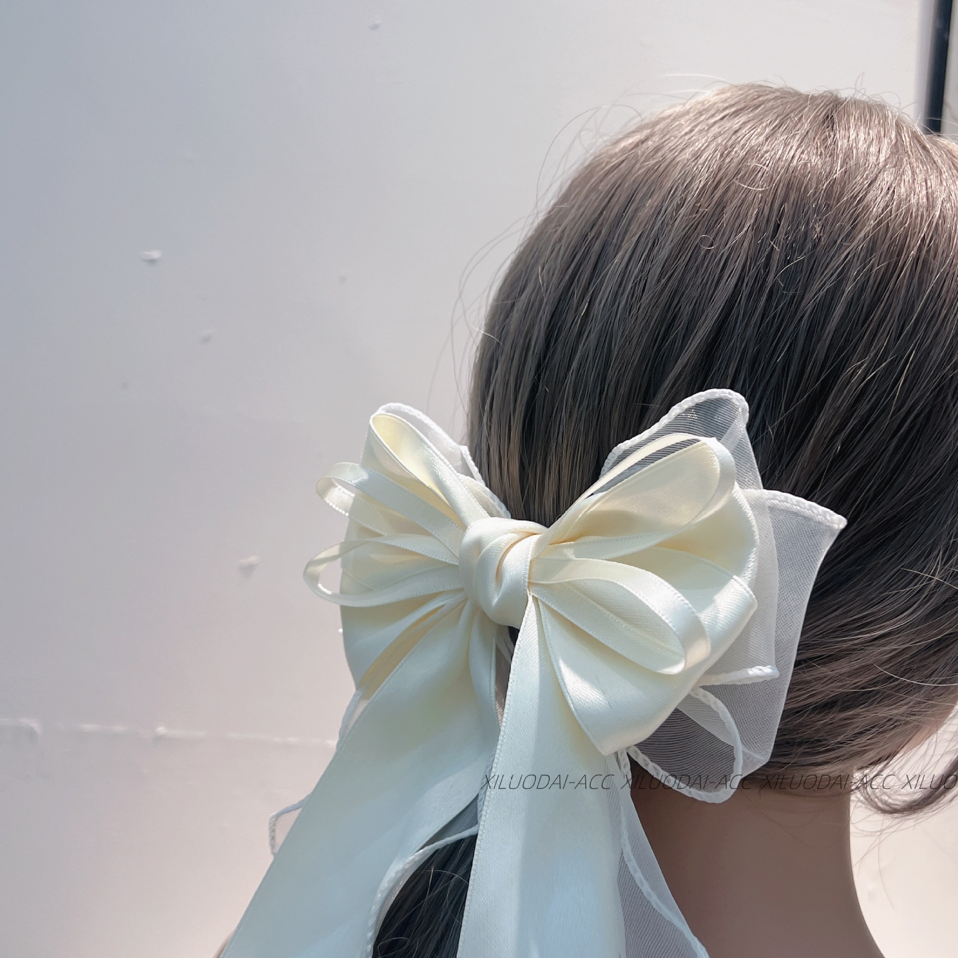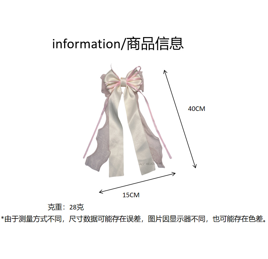 대형 재스민 화이트 메쉬 활 리본 여성용 머리 뒤 2024 새로운 봄과 여름 고급 봄 클립스토어 가기