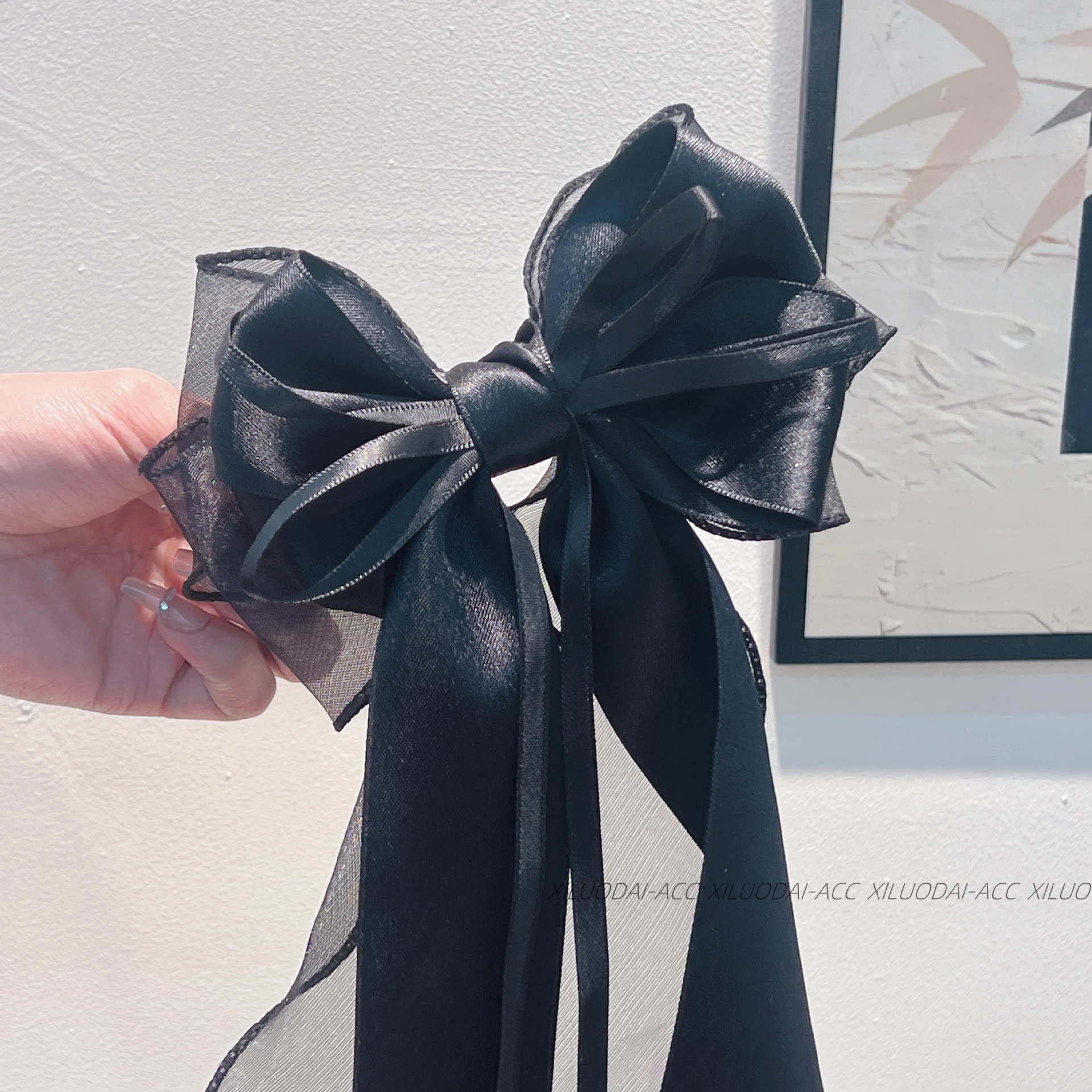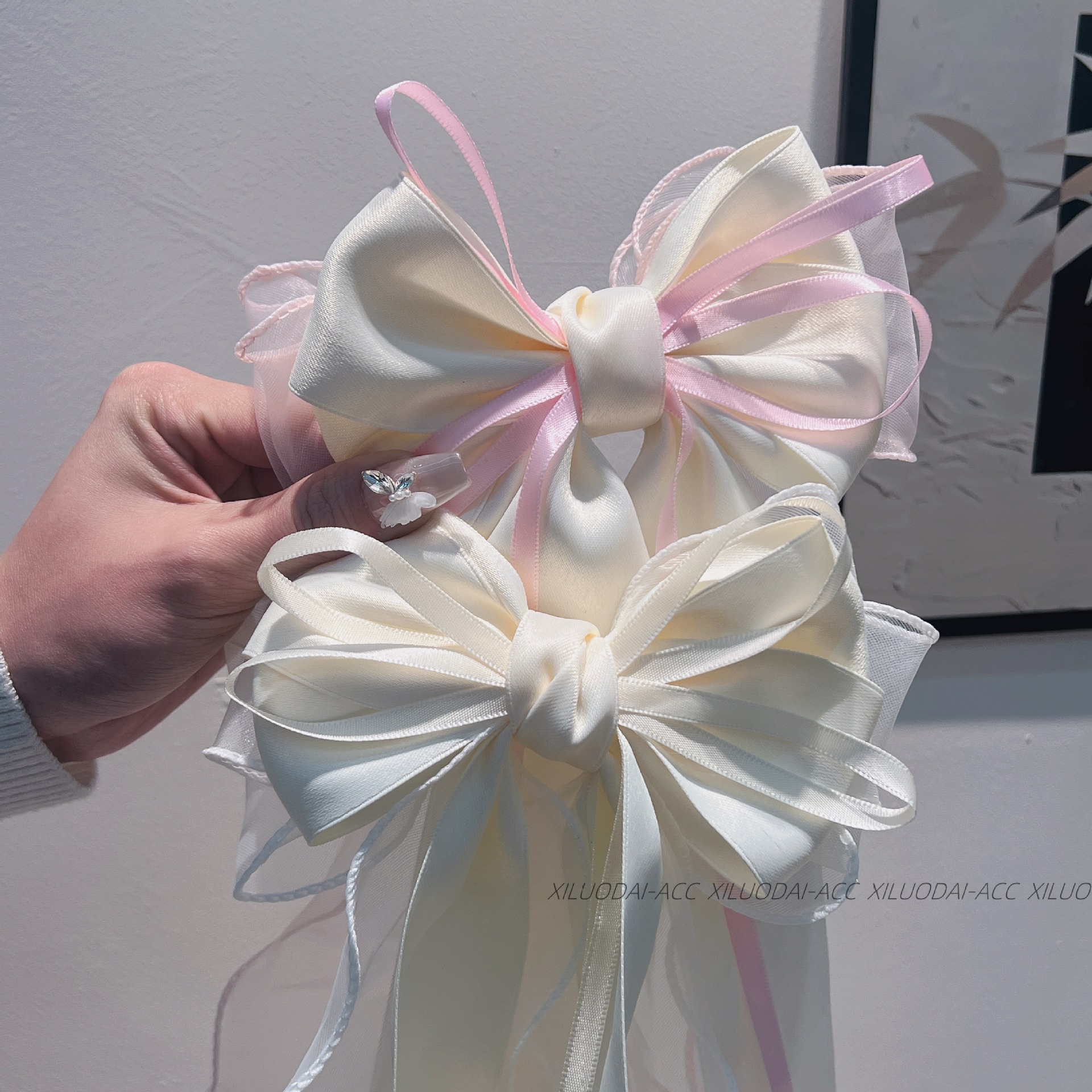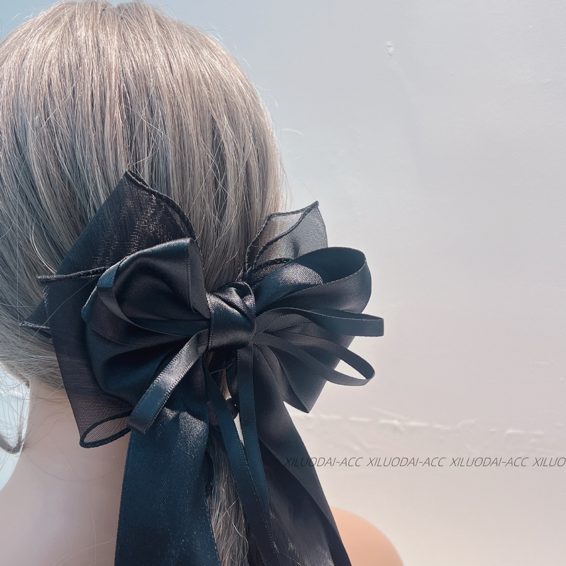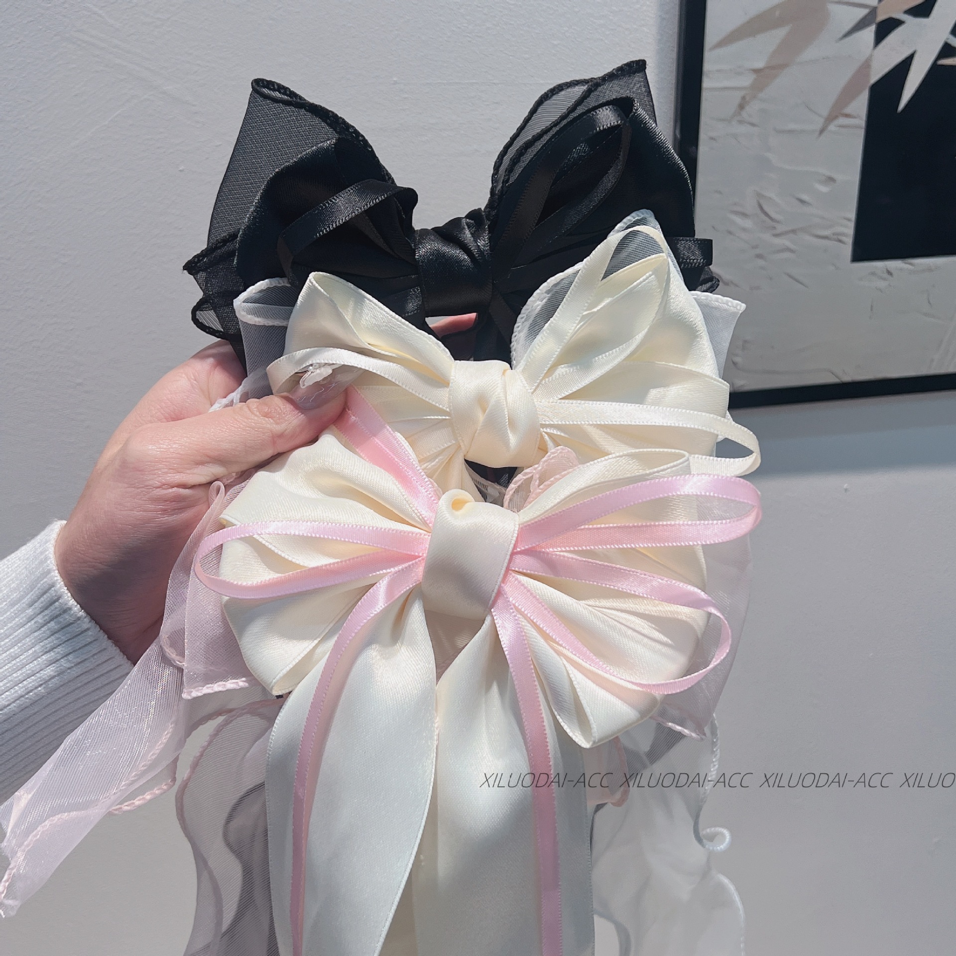대형 재스민 화이트 메쉬 활 리본 여성용 머리 뒤 2024 새로운 봄과 여름 고급 봄 클립스토어 가기