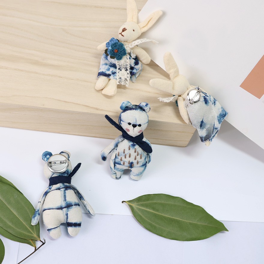 产品名称:扎染小兔子小熊公仔胸针