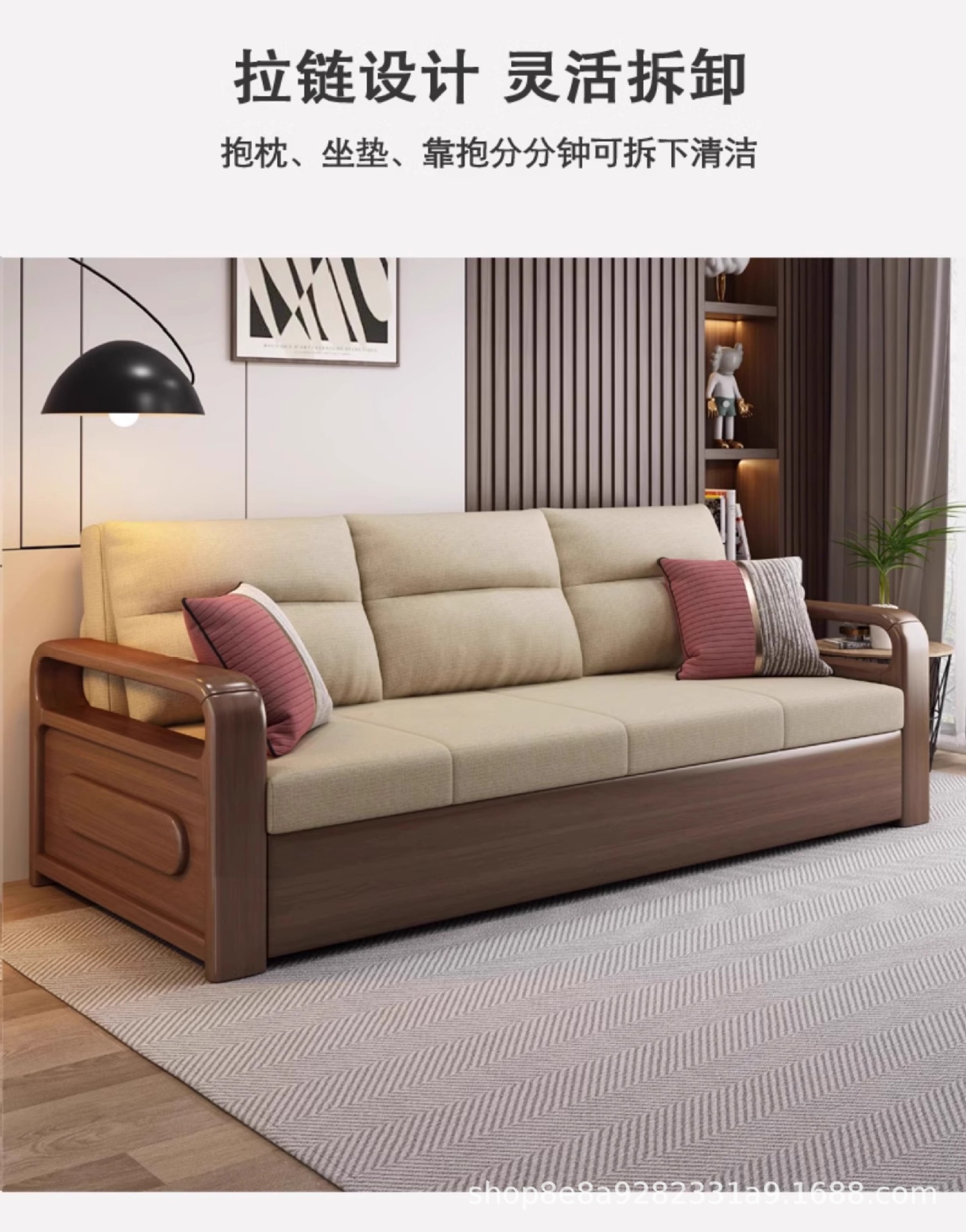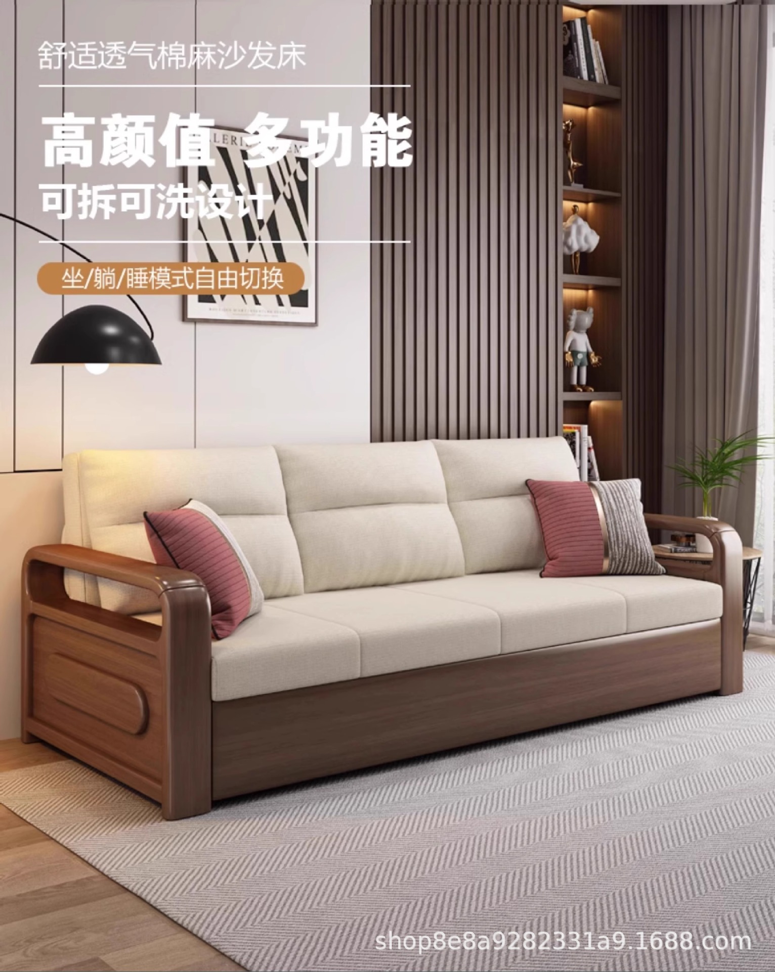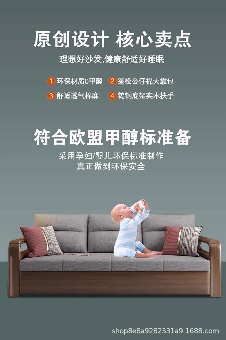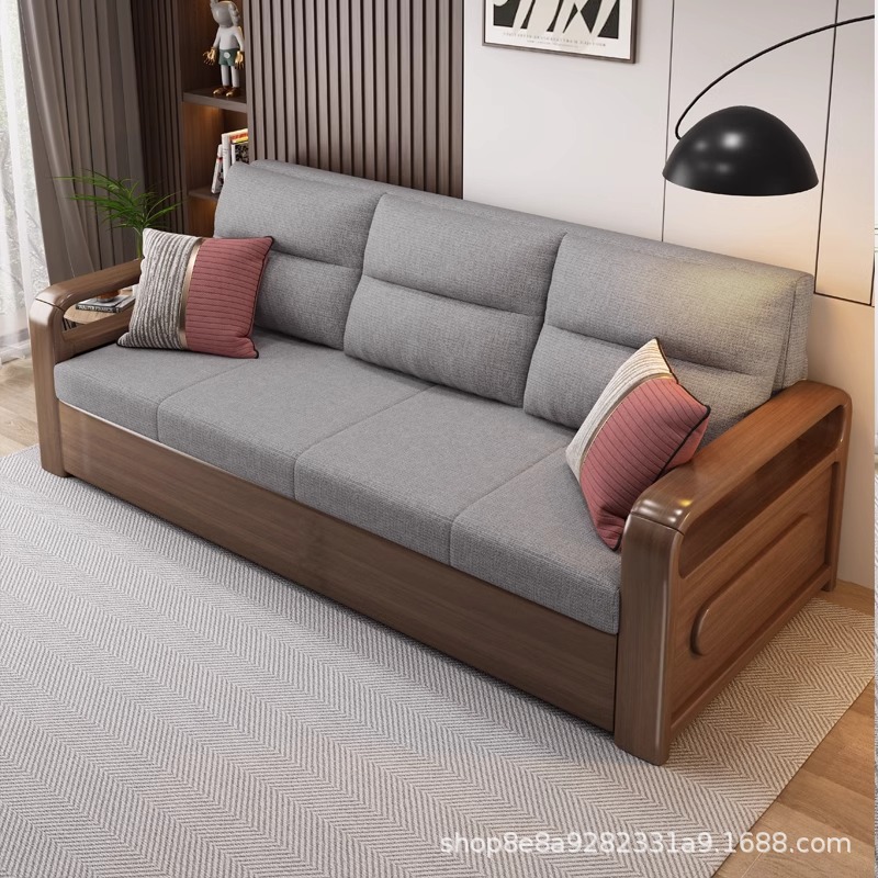 솔리드 우드 소파 침대 접이식 텔레스코픽 통합 이중 목적 소형 아파트 더블 거실 사무실 다기능 스터디 베드스토어 가기