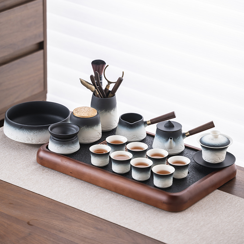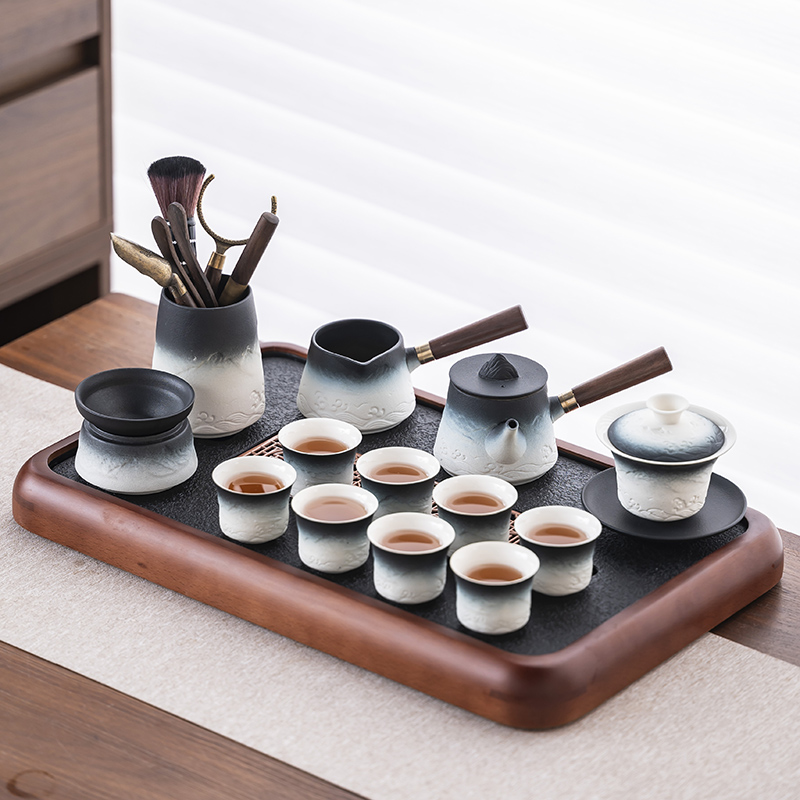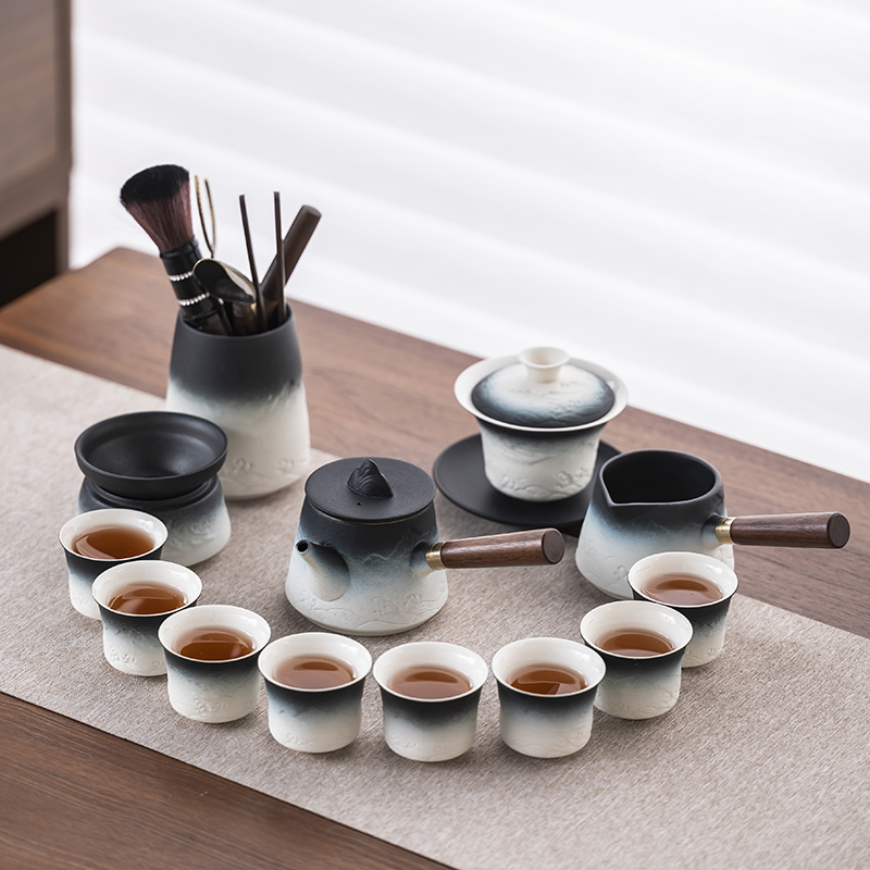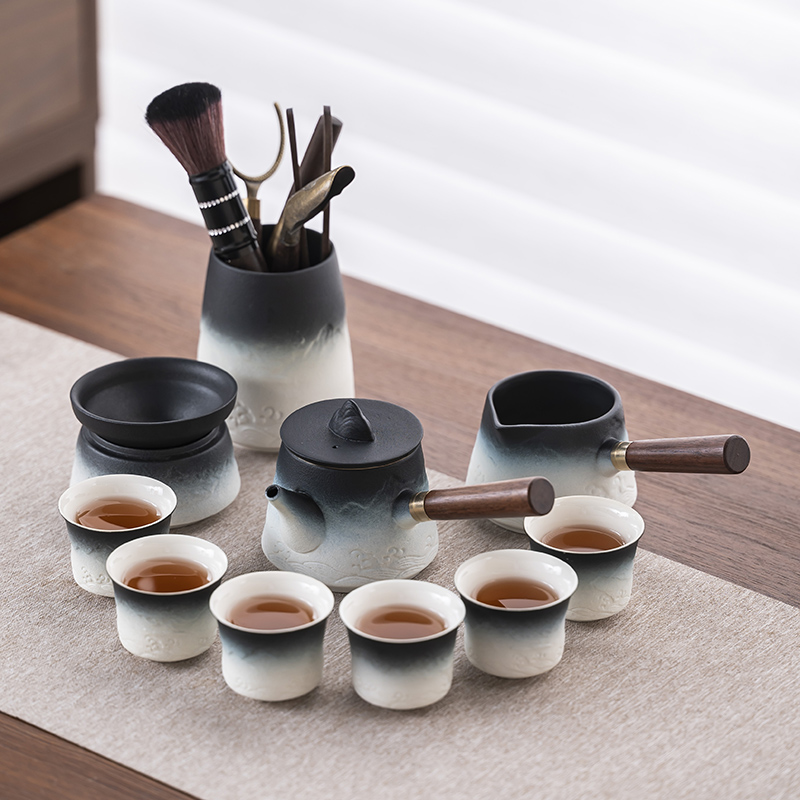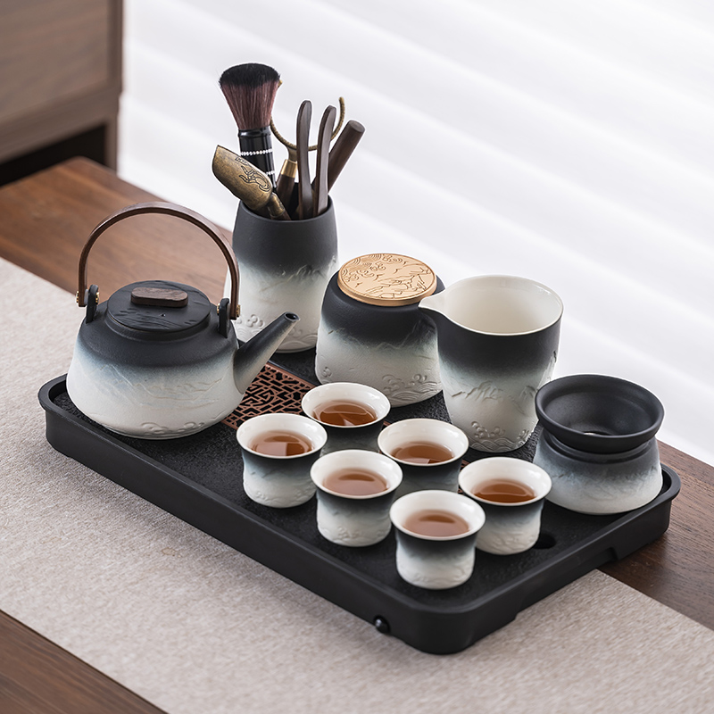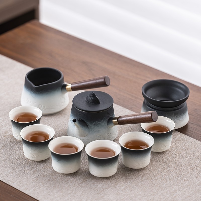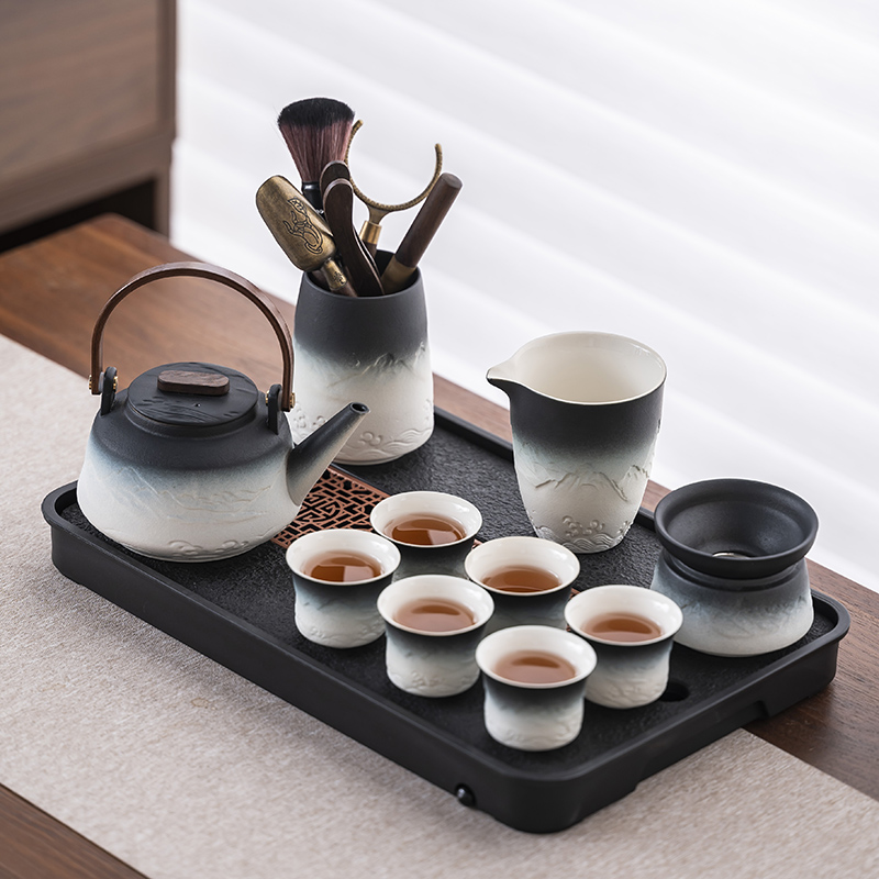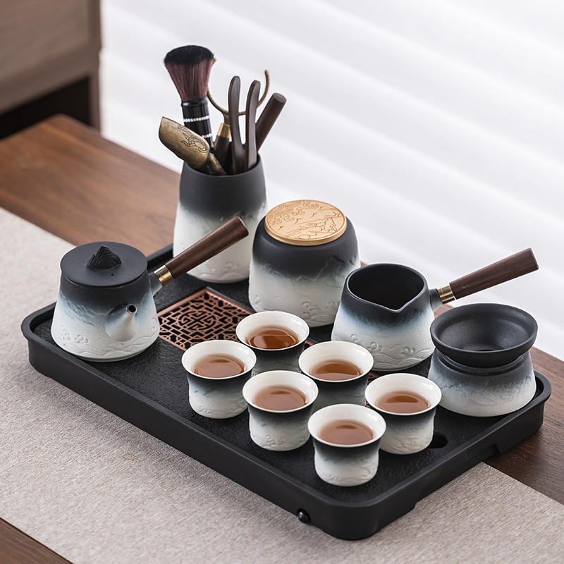 2025 새로운 쿵푸 차 세트 세트 홈 오피스 리셉션 그릇 주전자 사이드 핸들 찻잔 6 신사 티 트레이스토어 가기