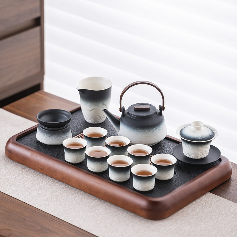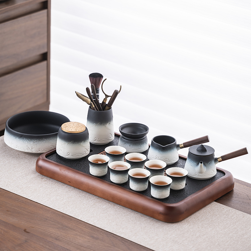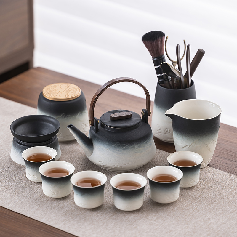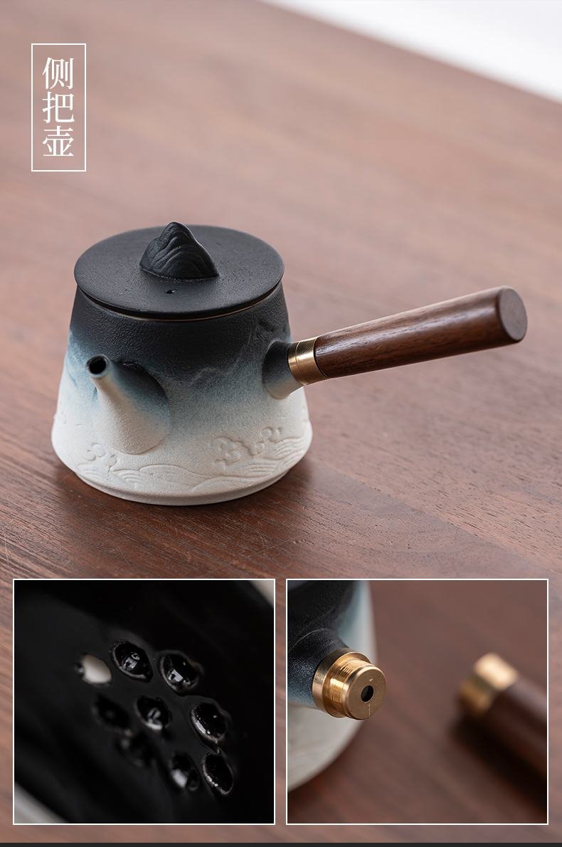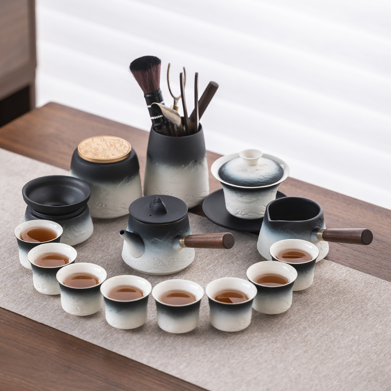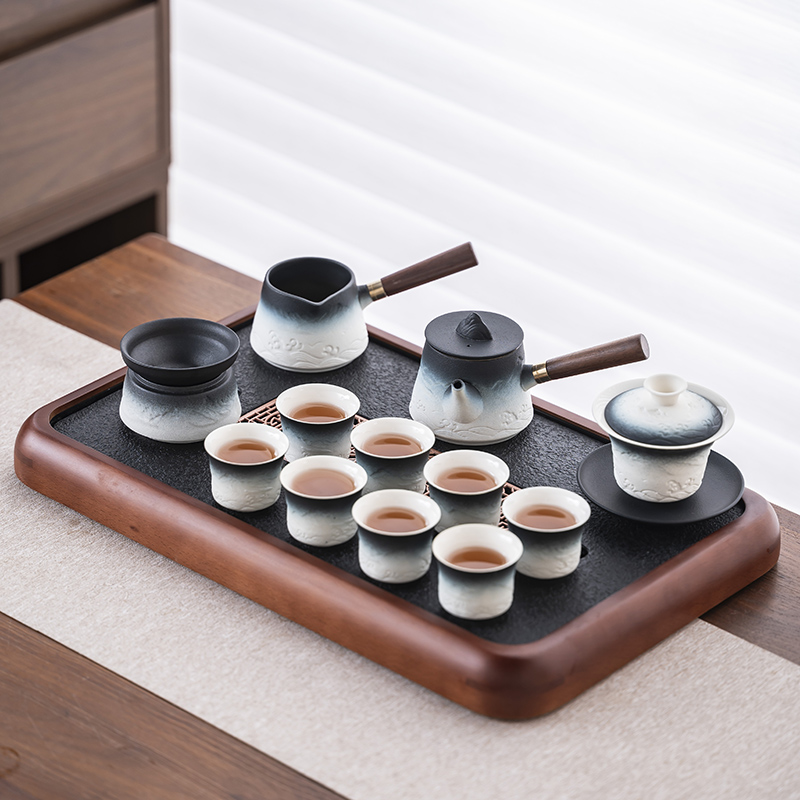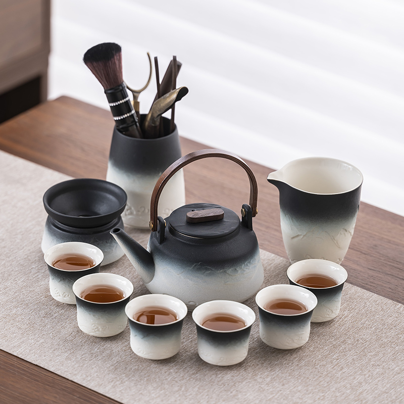 2025 새로운 쿵푸 차 세트 세트 홈 오피스 리셉션 그릇 주전자 사이드 핸들 찻잔 6 신사 티 트레이스토어 가기