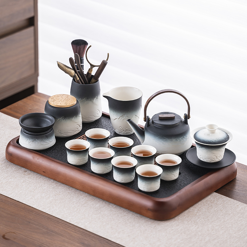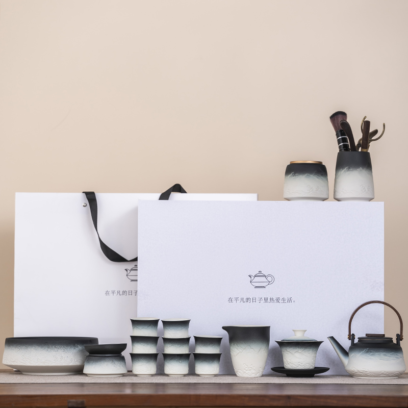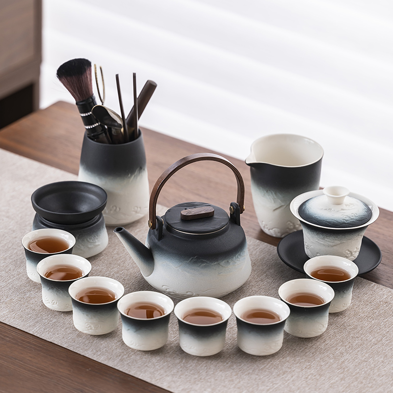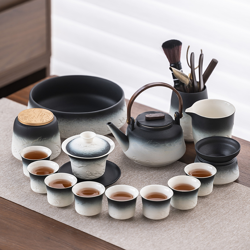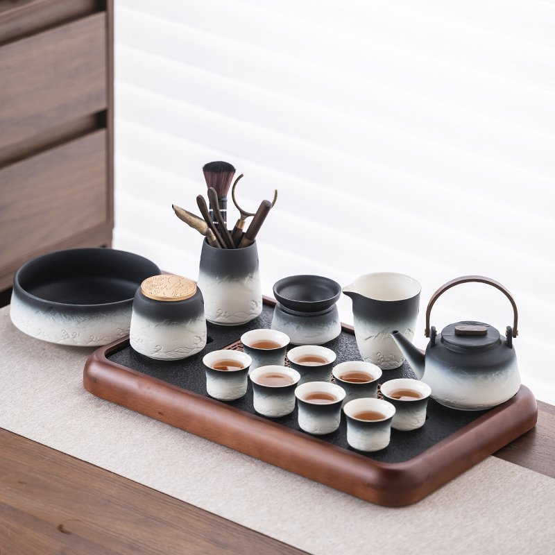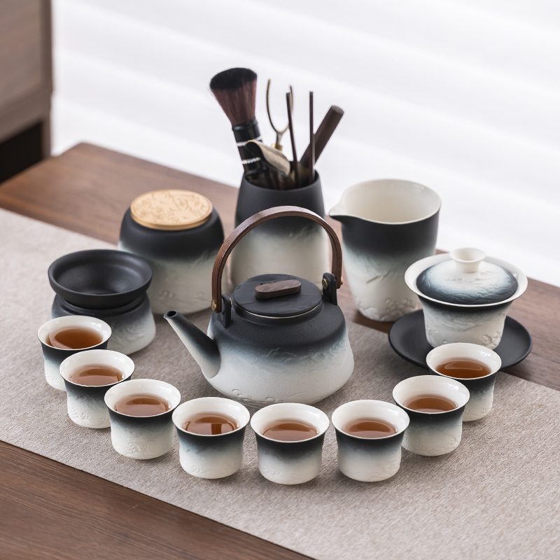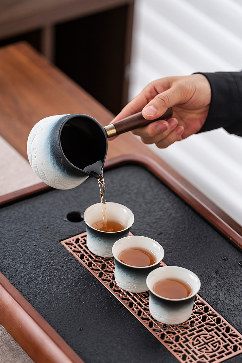 2025 새로운 쿵푸 차 세트 세트 홈 오피스 리셉션 그릇 주전자 사이드 핸들 찻잔 6 신사 티 트레이스토어 가기