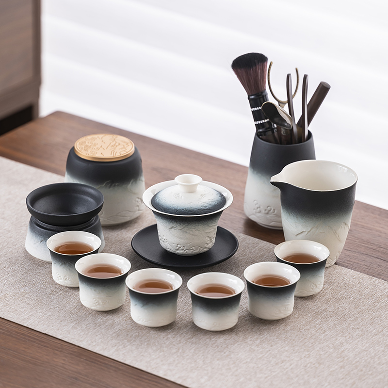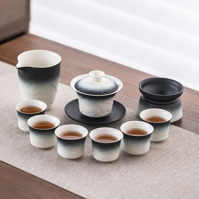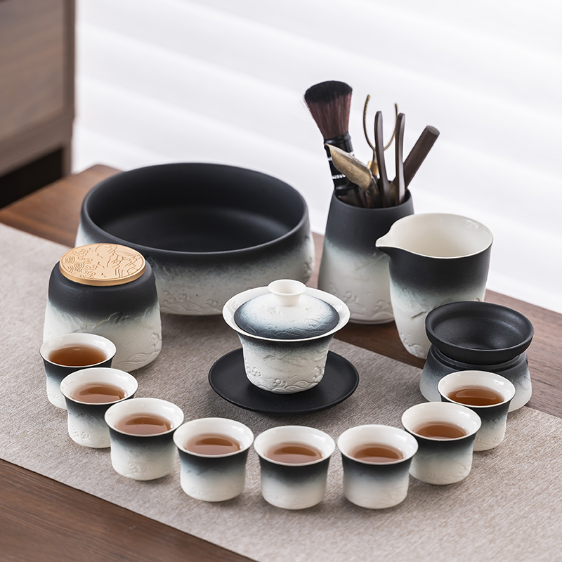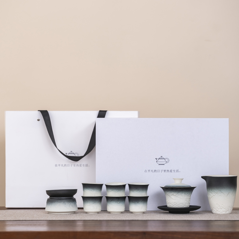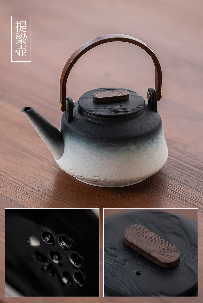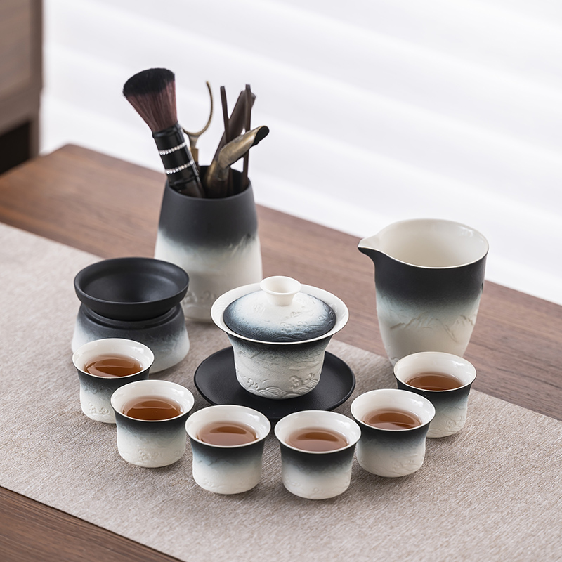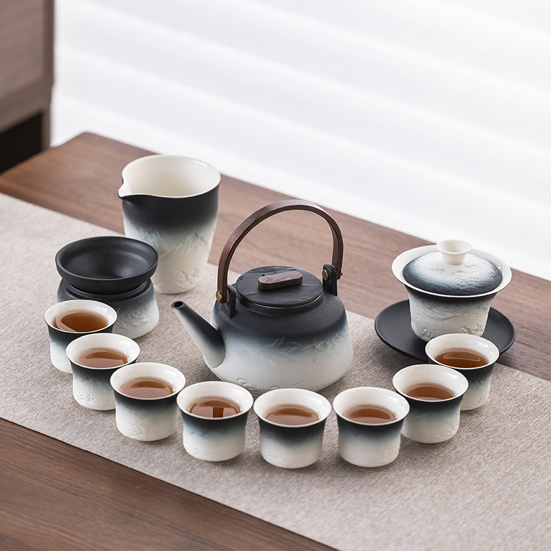 2025 새로운 쿵푸 차 세트 세트 홈 오피스 리셉션 그릇 주전자 사이드 핸들 찻잔 6 신사 티 트레이스토어 가기