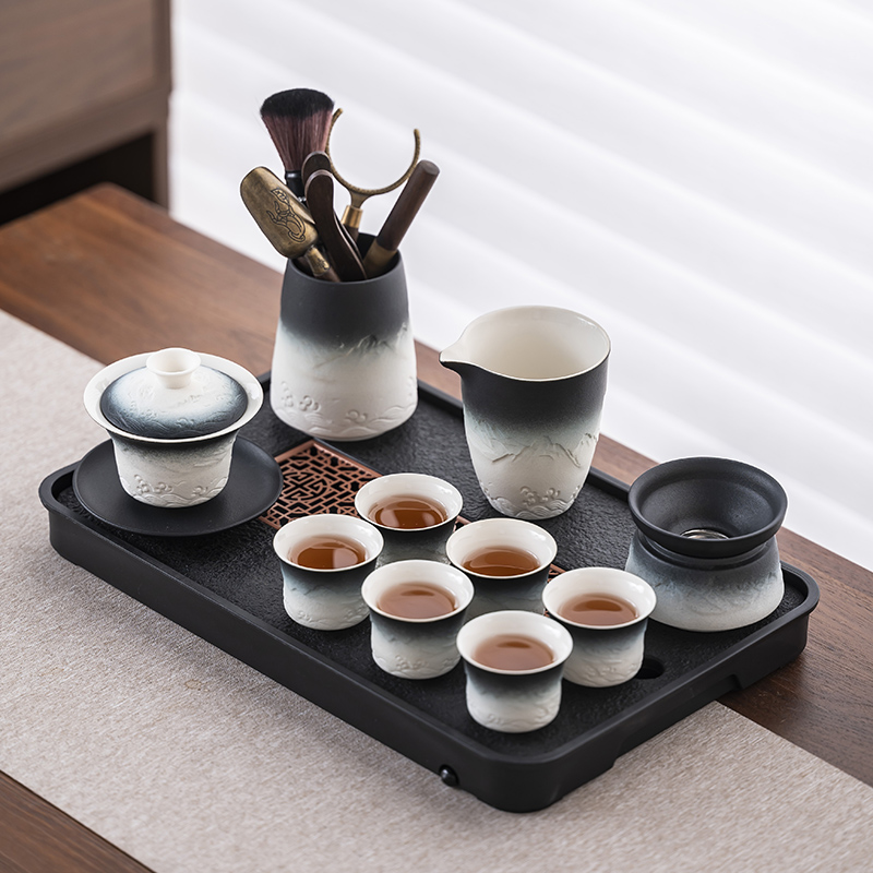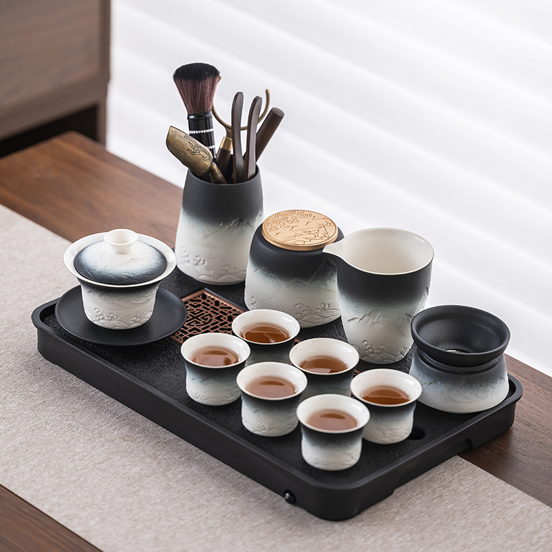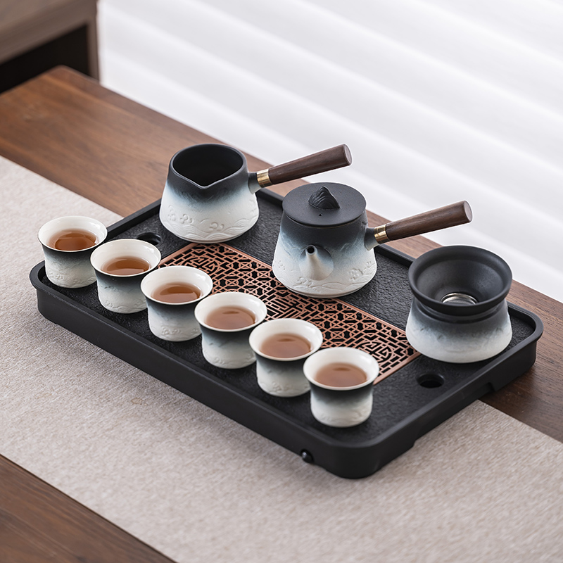 2025 새로운 쿵푸 차 세트 세트 홈 오피스 리셉션 그릇 주전자 사이드 핸들 찻잔 6 신사 티 트레이