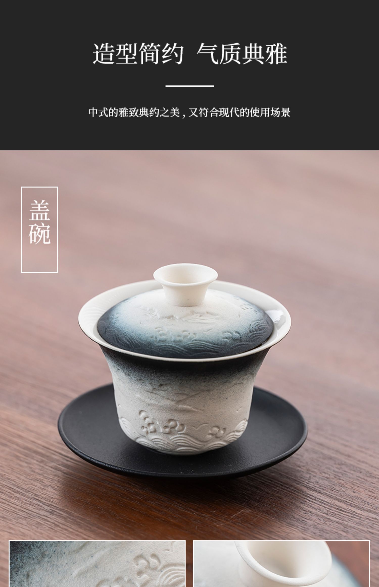 • 산하이 [덮은 그릇 + 손잡이] 8컵 조합 세트 + 나무 차 트레이 46개 / 간이 포장