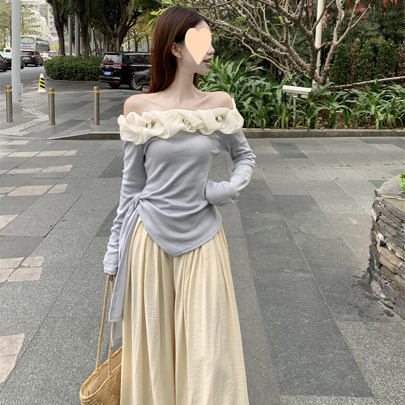 순수한 욕망 스타일 한 셔츠 탑 와이드 다리 캐주얼 바지 여성용 2025 년 이른 봄 새로운 2 피스 세트스토어 가기