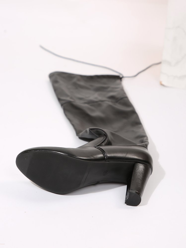 국경 2025 새로운 유럽 및 미국 플러스 사이즈, 여성 탄성 부츠 하이 힐 사이드 지퍼 오버 더 무릎 부츠 섹시한 쇼 부츠