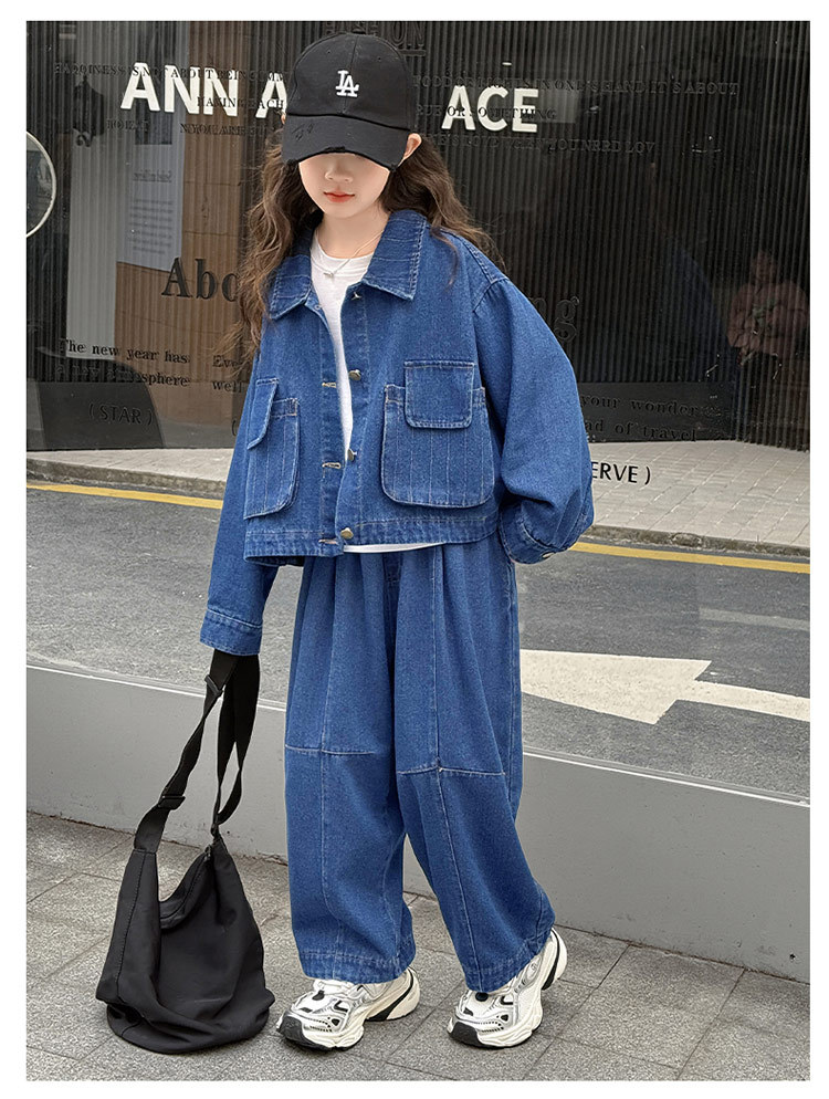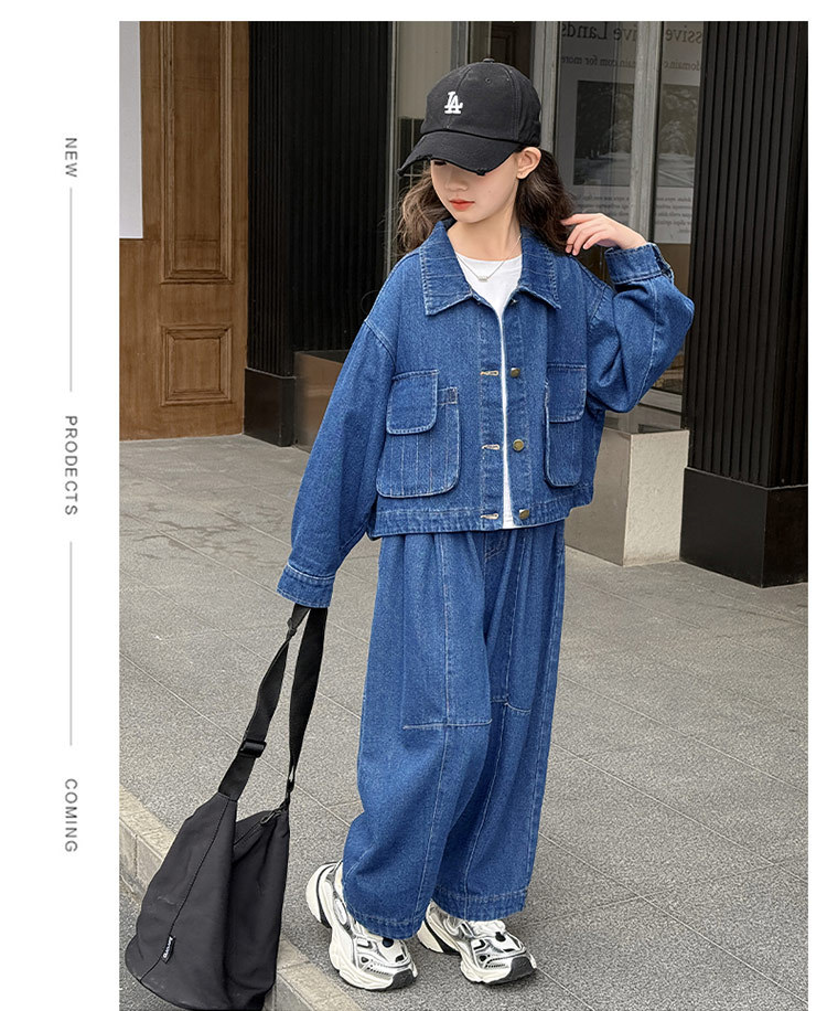 소녀 데님 세트 2025 봄과 가을 새로운 어린이 패션 국경 간 작업복 재킷 청바지 투피스 세트스토어 가기