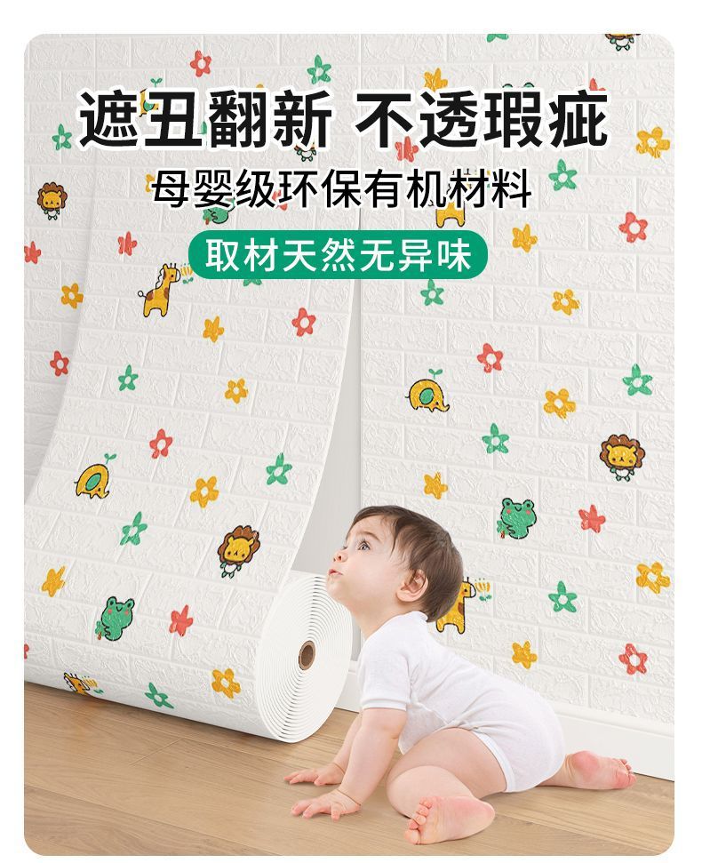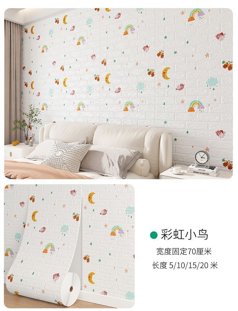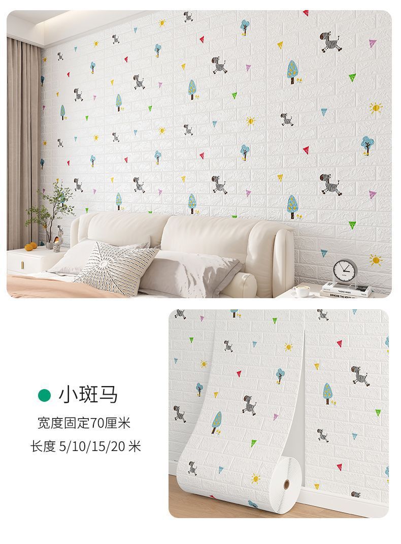 만화 벽지 자기 접착 3D 벽 스티커 거품 타일 어린이 방 벽지 방수 습기 방지 침실 홈 벽 스티커스토어 가기