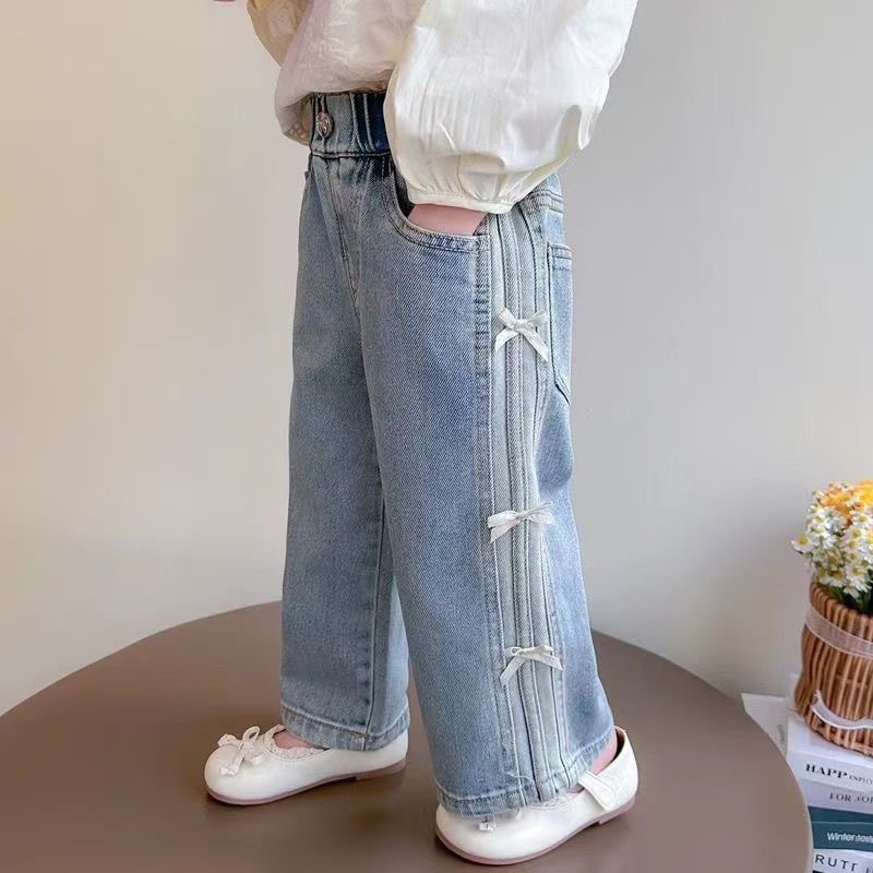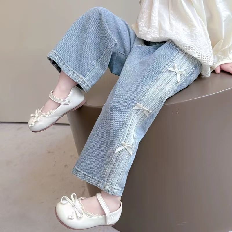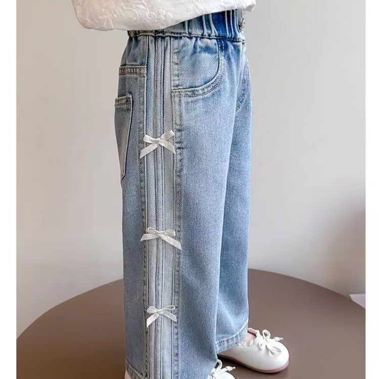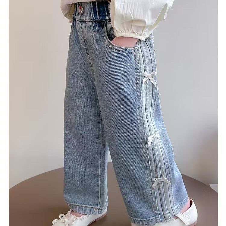 소녀의 봄 새로운 청바지 아기 소녀 2025 서양식 넓은 다리 바지 활 캐주얼 스트레이트 청바지 유행