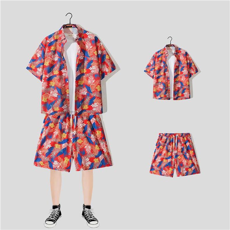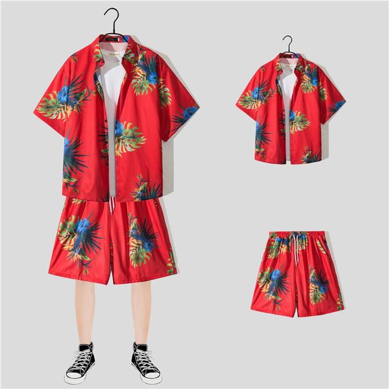꽃 셔츠 반바지 인기있는 하라주쿠 일본식 하와이 캐주얼 세트 게으른 여름 유행 소녀와 소년 해변