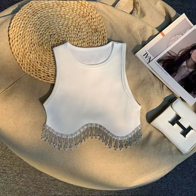25 여름 새 소녀 Sequins 공연 의류 Tassel Vest Sling 여성용 달콤하고 뜨거운 댄스 노출 쇼트 탑 트렌디스토어 가기