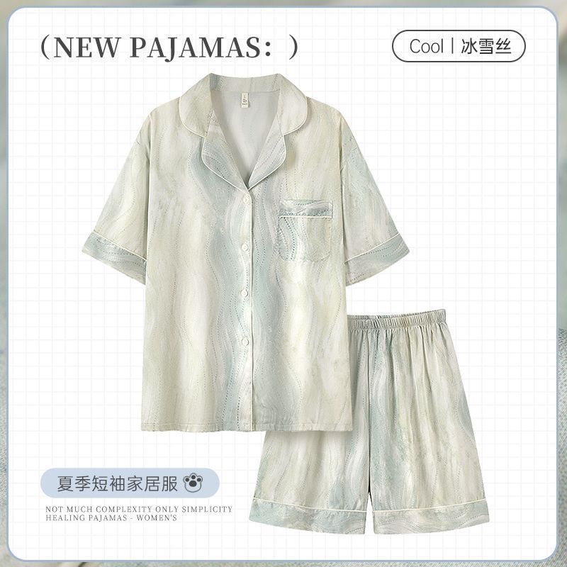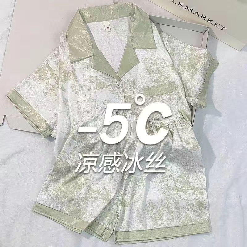 • 위자드그린 [쇼트스타일 아이스실크 투피스세트] 반팔반바지