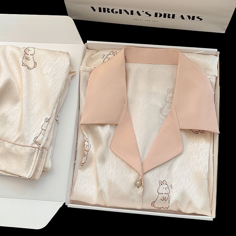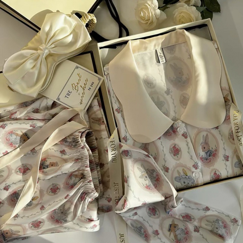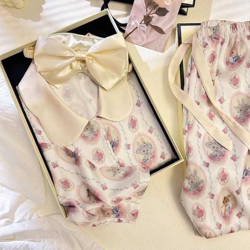• 귀여운 토끼 [롱 아이스 실크 투피스 세트] 긴팔 바지