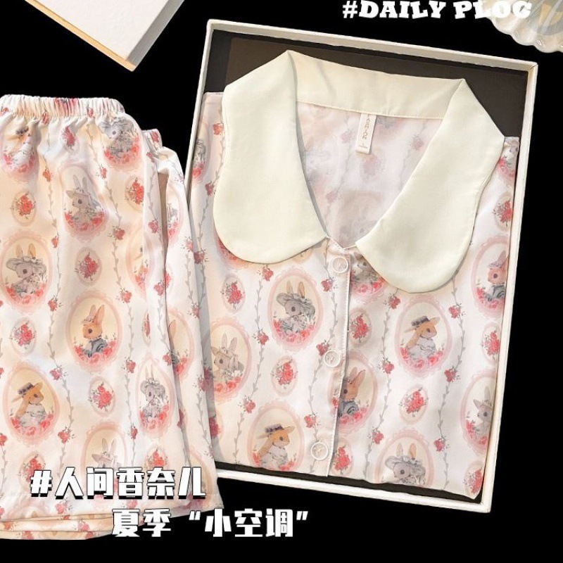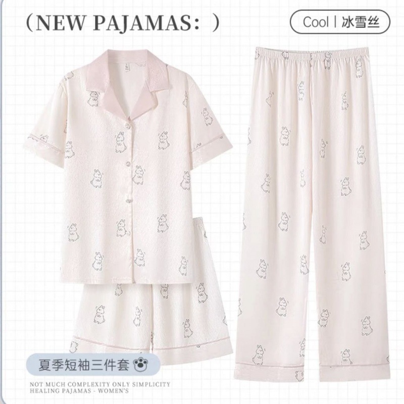 • 귀여운 토끼 [고급 아이스 실크 3종 세트] 반팔 반바지와 바지