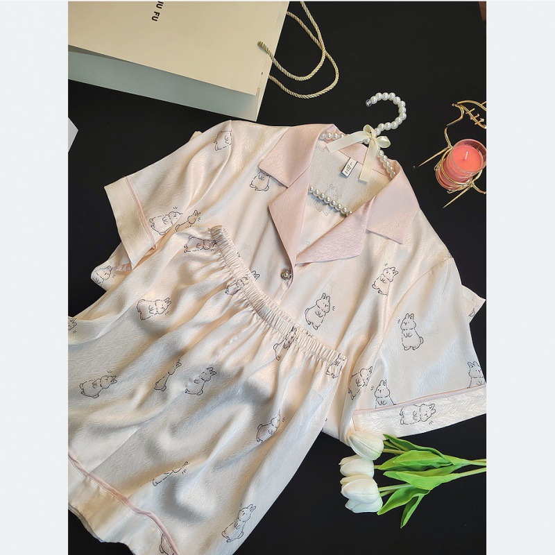 • 귀여운 토끼 [쇼트 아이스 실크 투피스 세트] 반팔 반바지