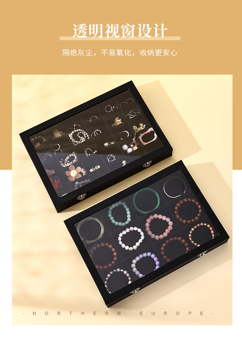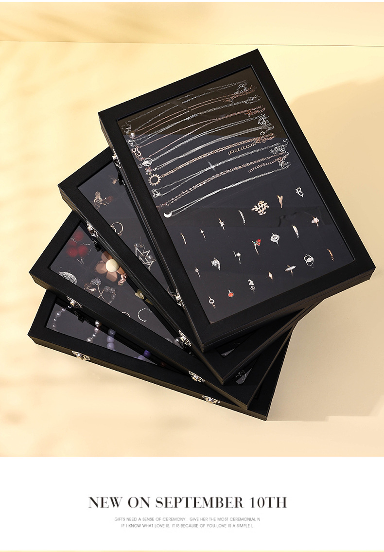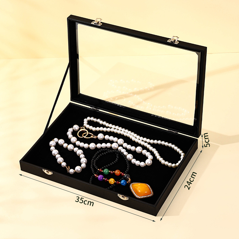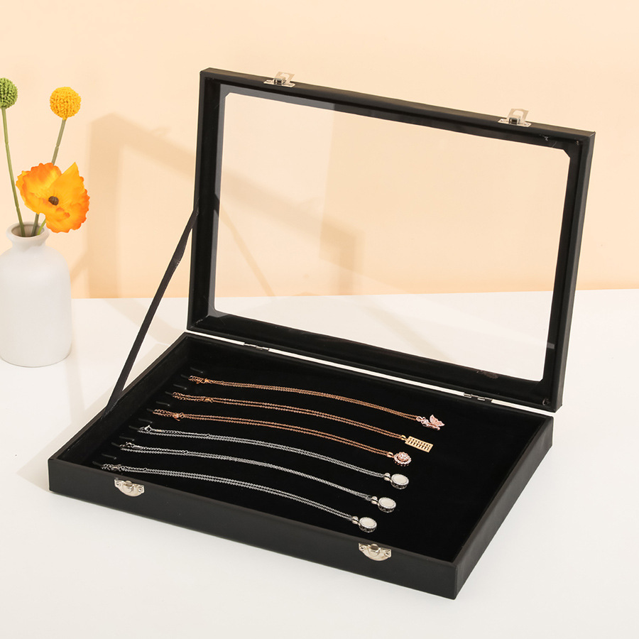 수출 블랙 가죽 보석 상자 뚜껑 팔찌 팔찌 보석 보관 상자 목걸이 링 귀걸이 디스플레이 상자