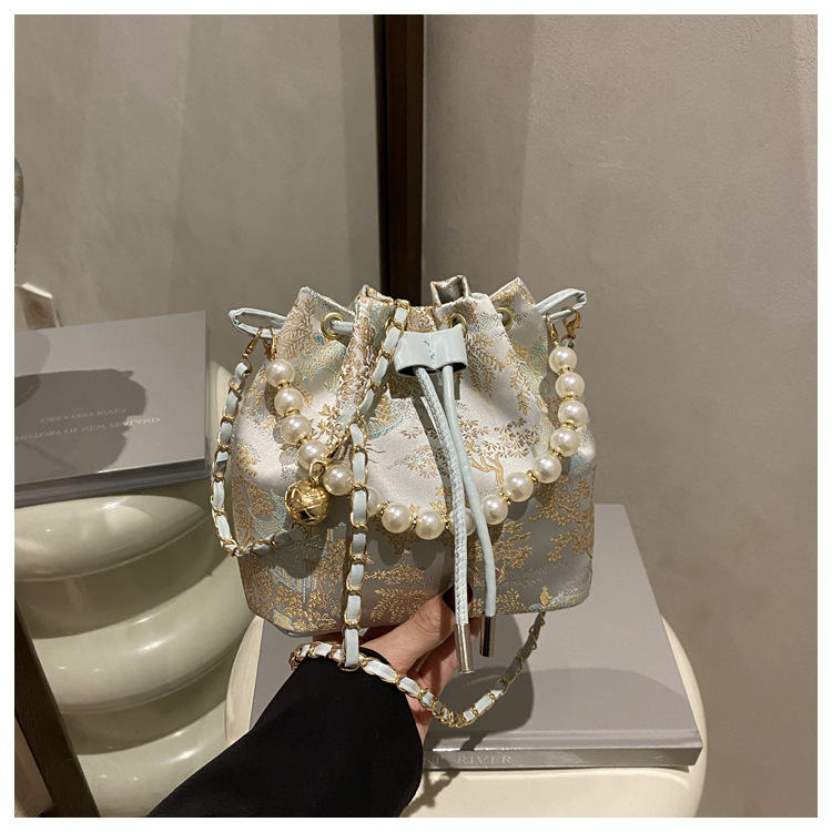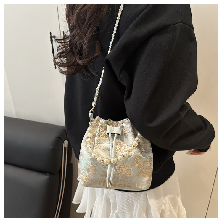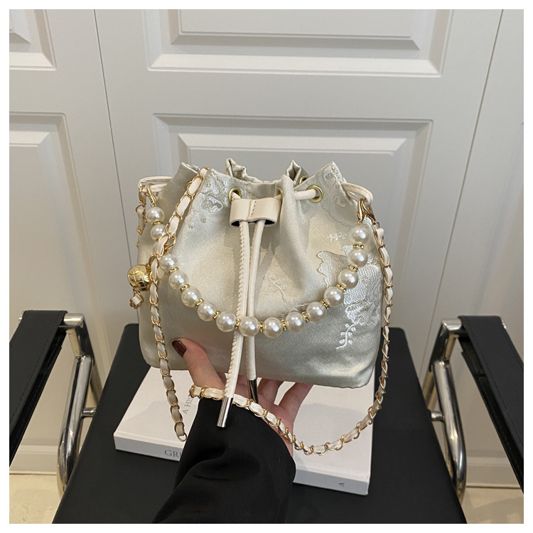 핸드 헬드 펄 버킷 백 여성 2025 년 여름 새로운 중국 자수 어깨 가방 틈새 간단한 하이 엔드 메신저 백