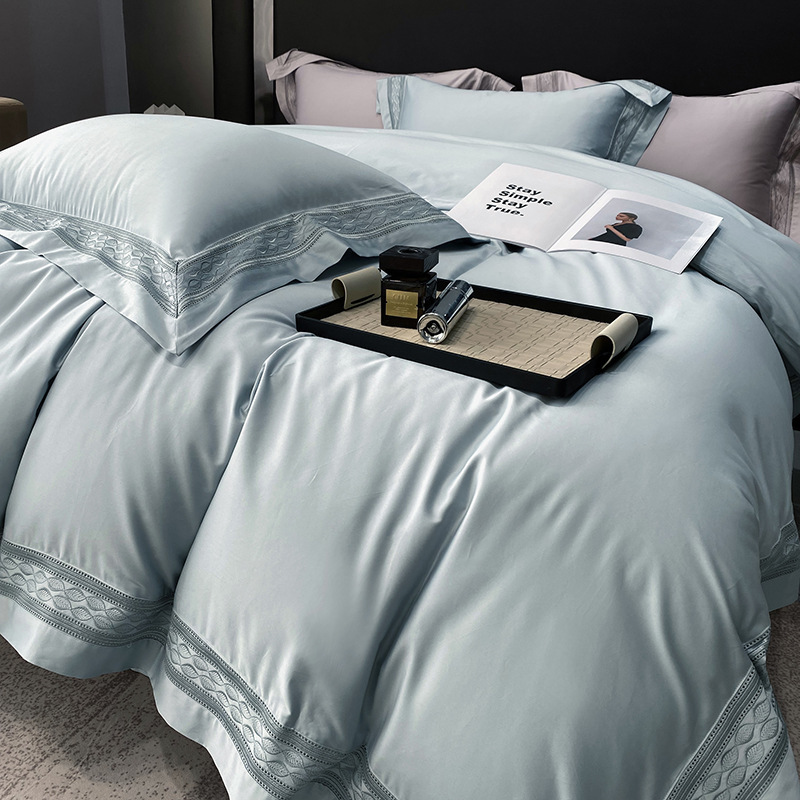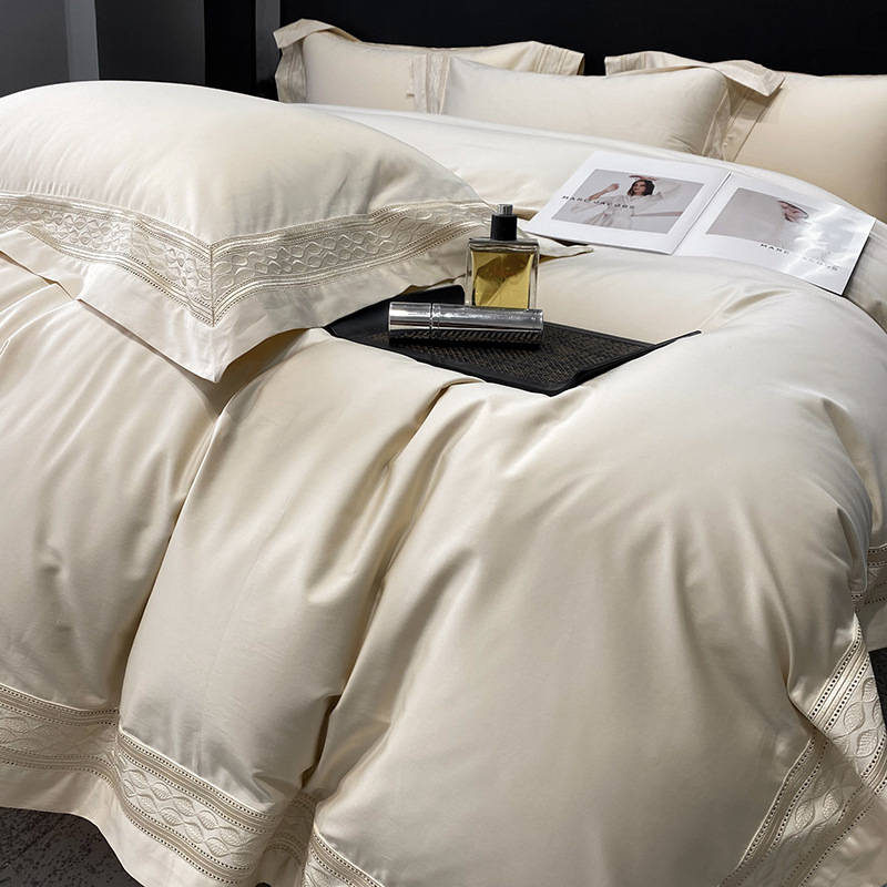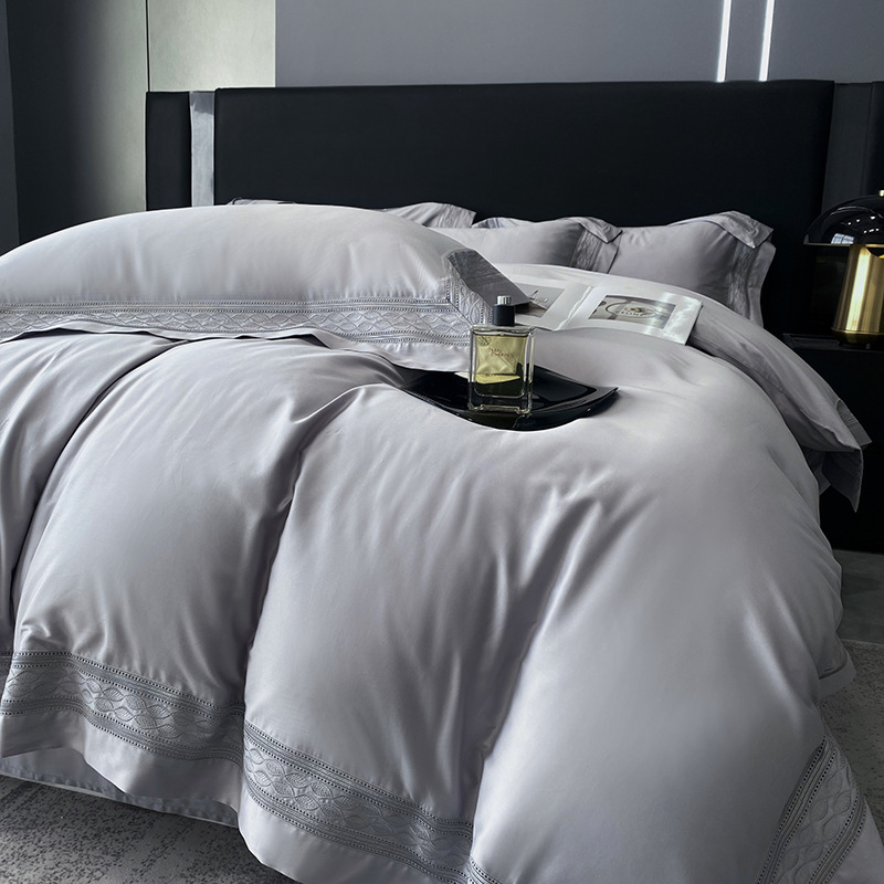 하이 엔드 라이트 럭셔리 스타일 120 롱 스테이플 코튼 4 피스 세트 코튼 퓨어 코튼 간단한 솔리드 컬러 침대 시트 퀼트 커버 뉴 하우스스토어 가기