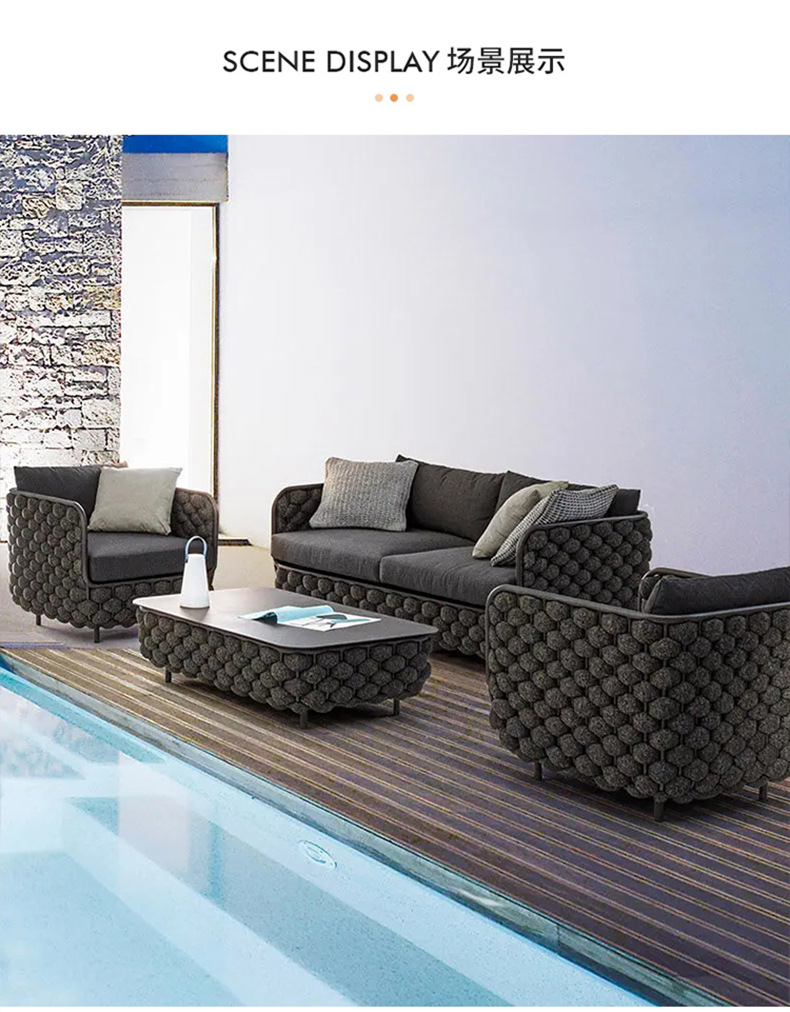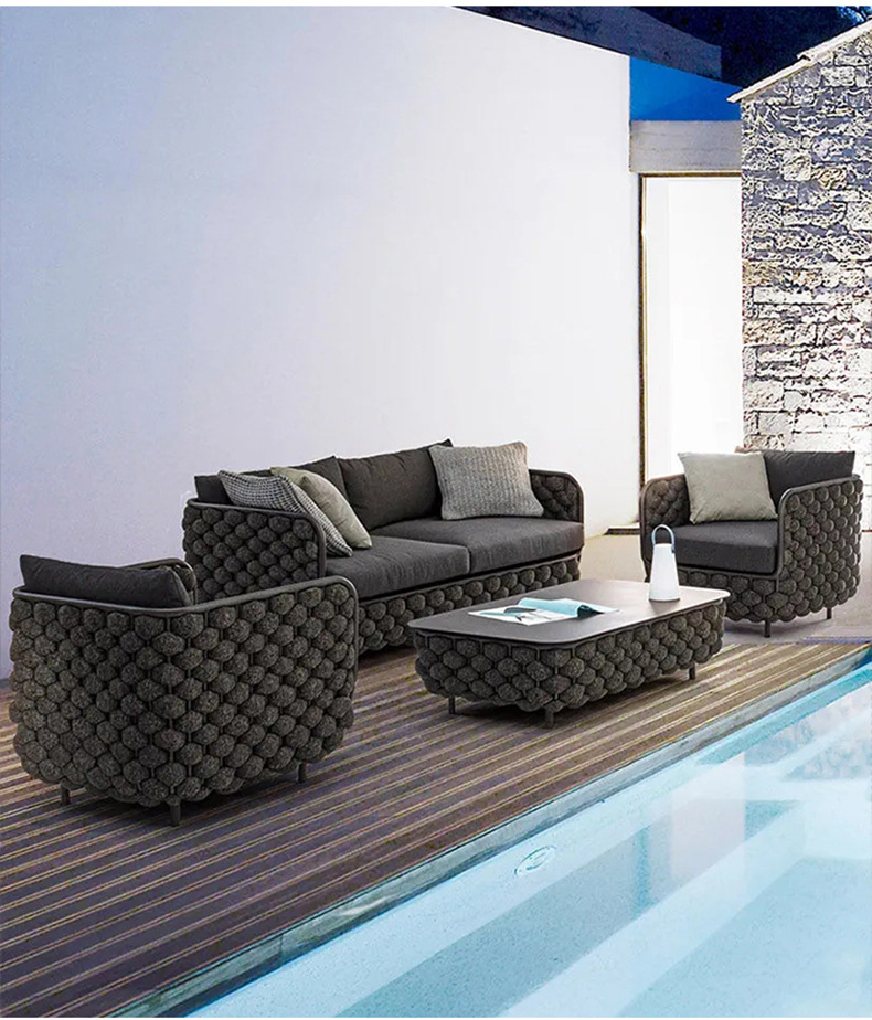 등나무 야외 소파 테라스 방수 안뜰 모델 룸 실내 및 실외 등나무 의자 가구 3 피스 커피 테이블 조합