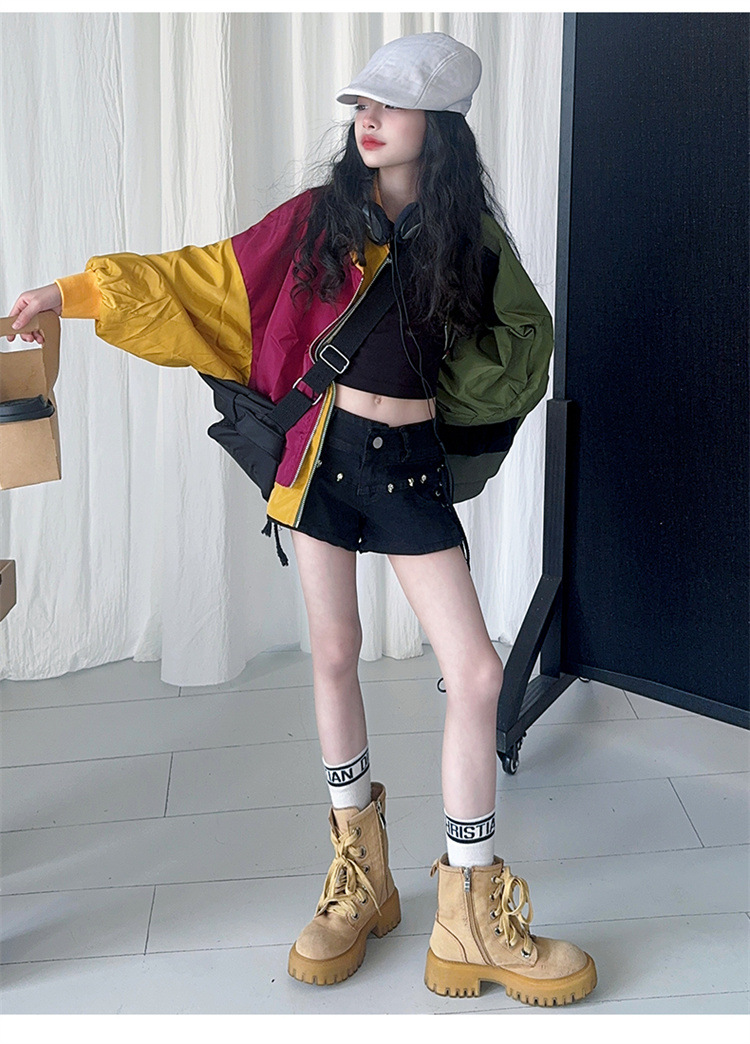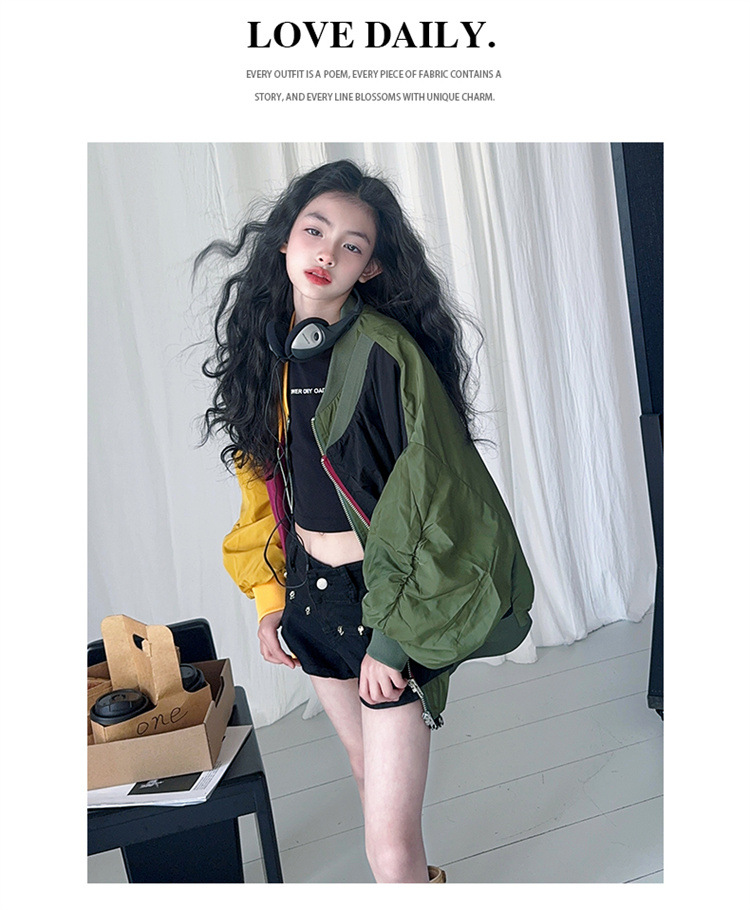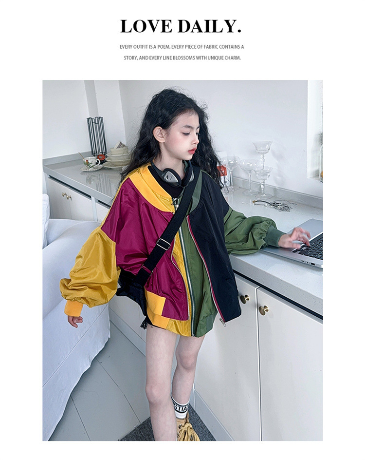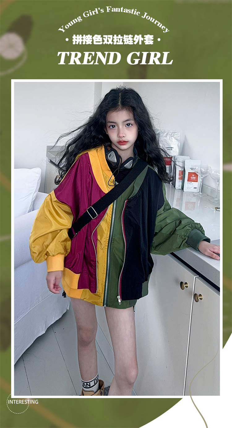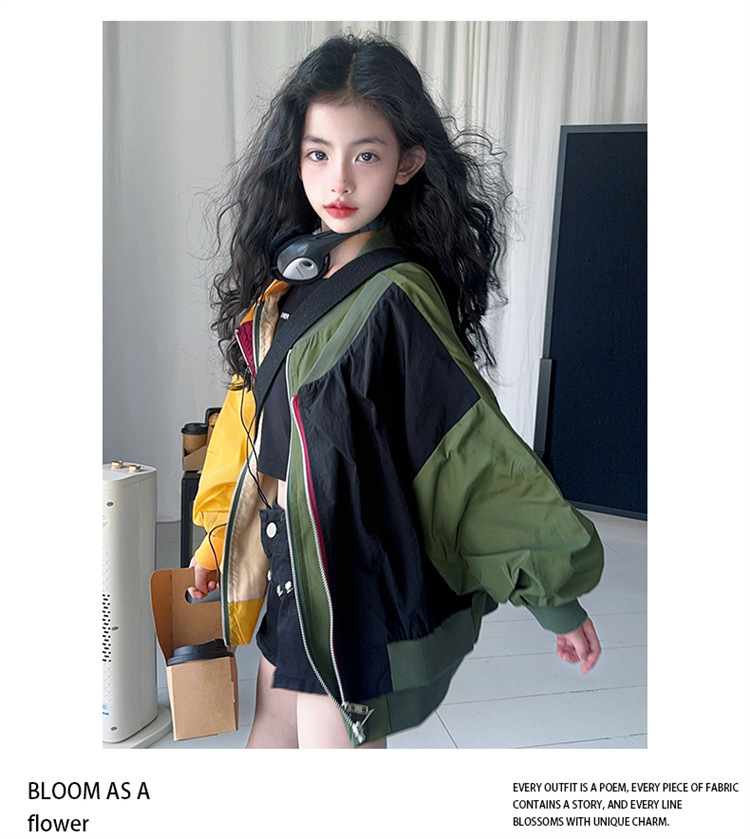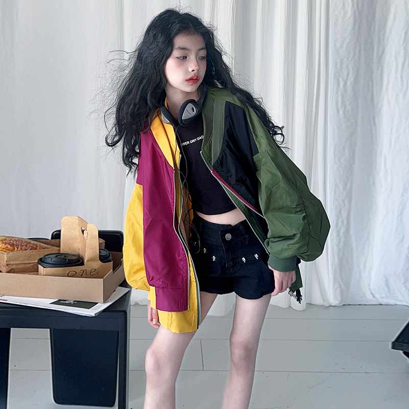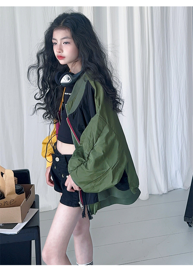 소녀 2025 봄과 가을 새로운 한국 스타일 대비 아동복 야구 세트 재킷 느슨한 탑 재킷