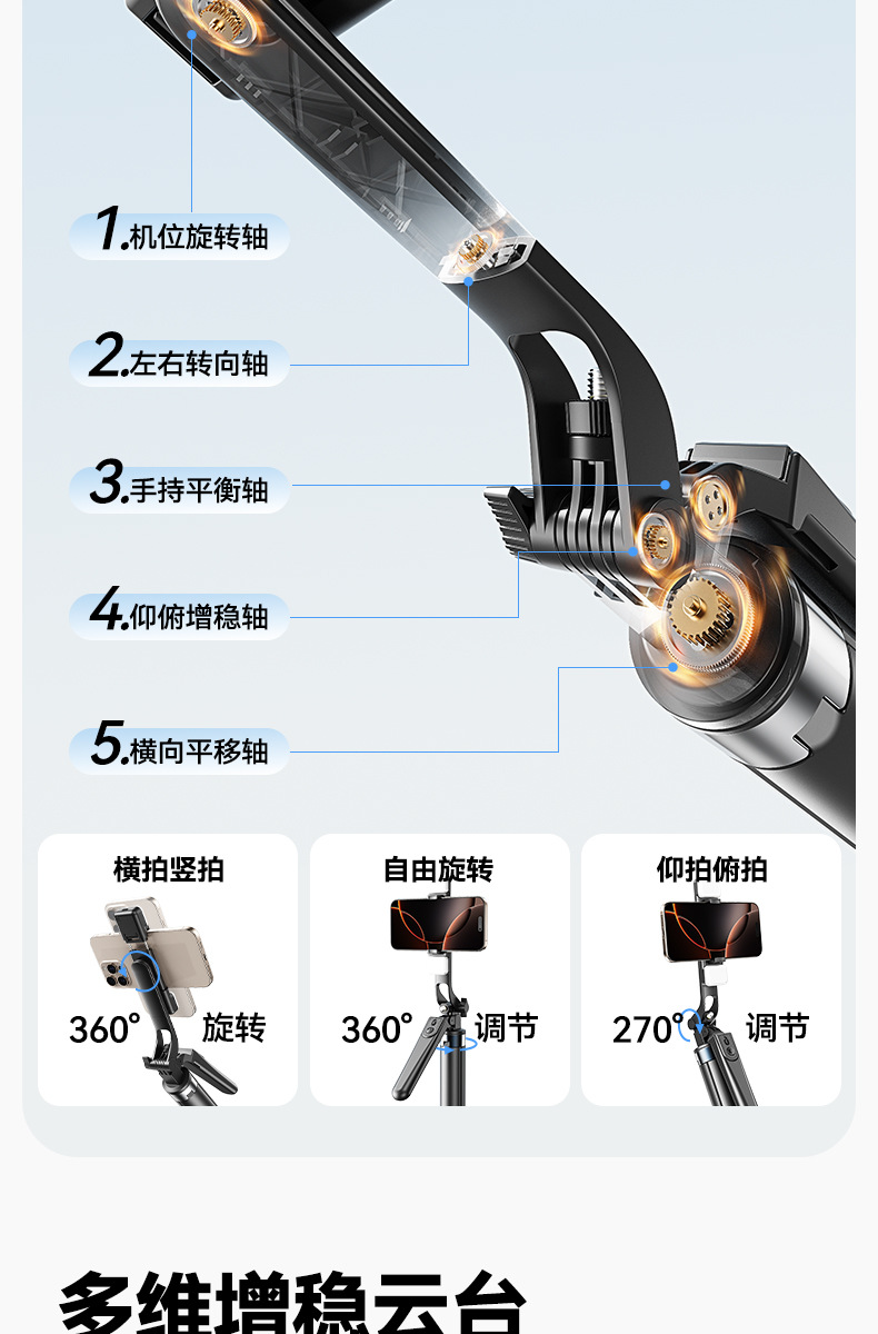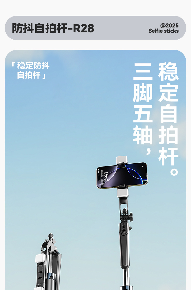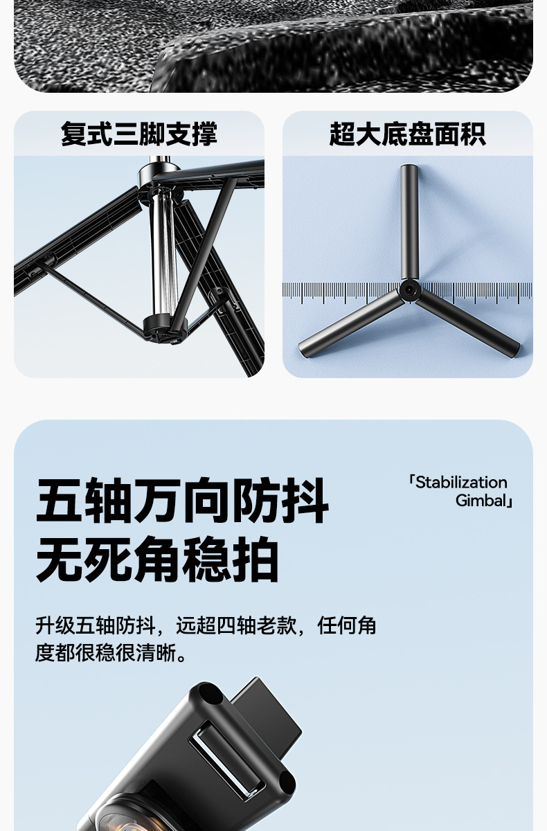 2025 폭발 새로운 5 축 범용 안티 쉐이크 스테인레스 스틸 셀카 스틱 휴대용
