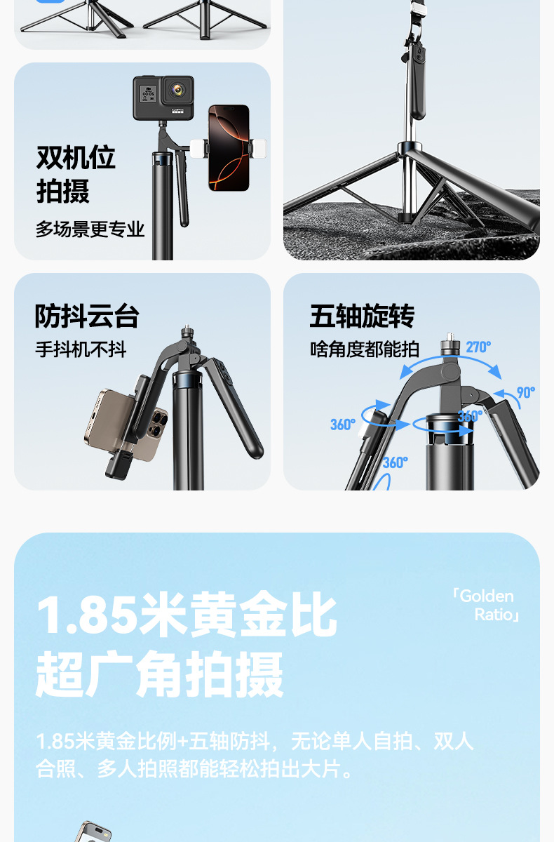 2025 폭발 새로운 5 축 범용 안티 쉐이크 스테인레스 스틸 셀카 스틱 휴대용스토어 가기
