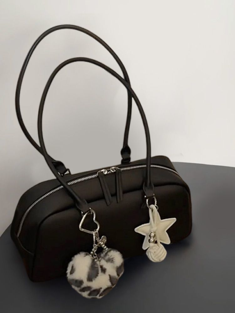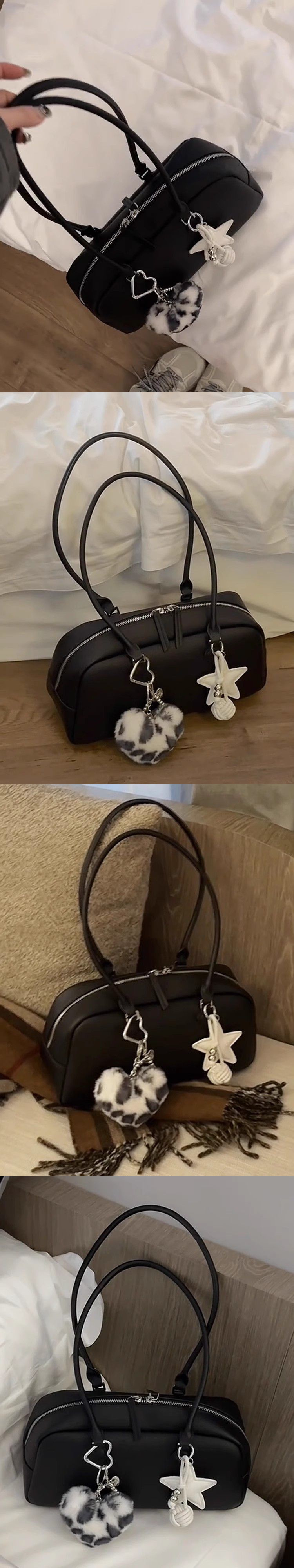 검은 우아한 겨드랑이 가방 여성 2025 년 새 보스턴 가방 대용량 통근 어깨 토트 백스토어 가기