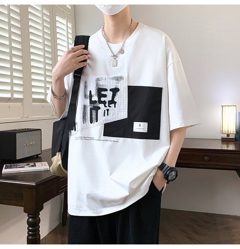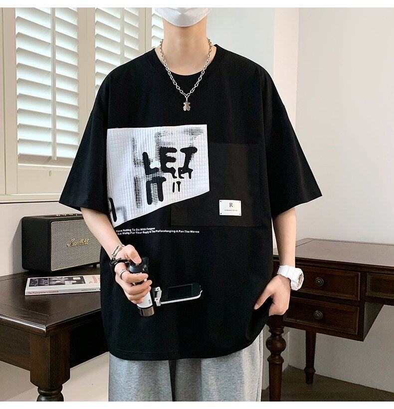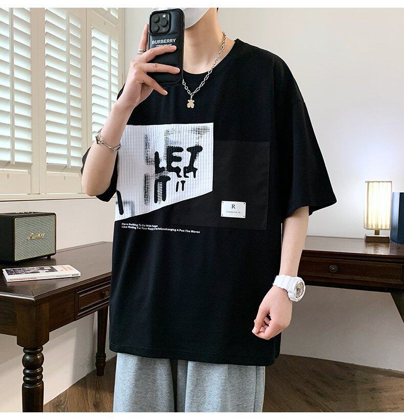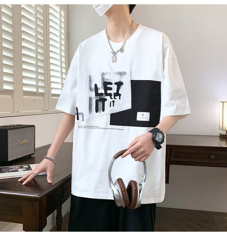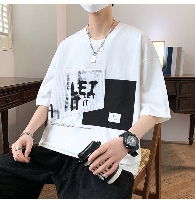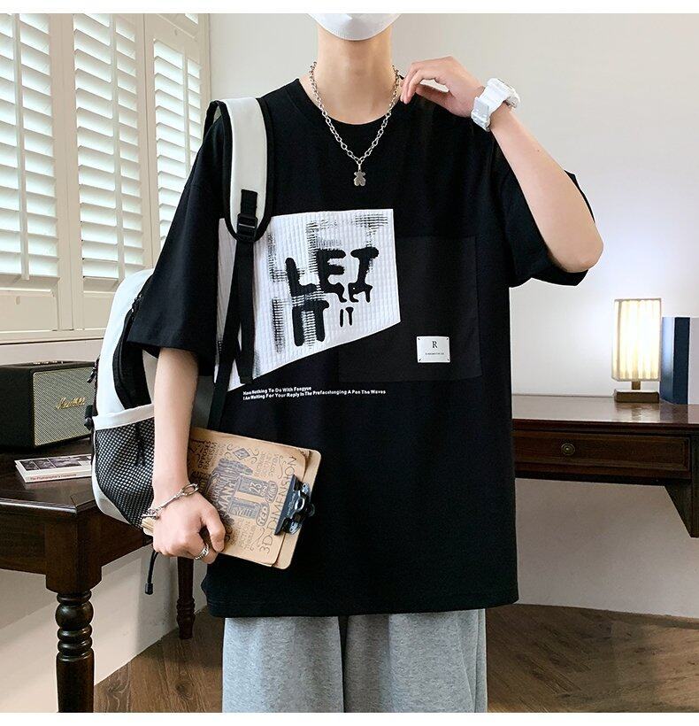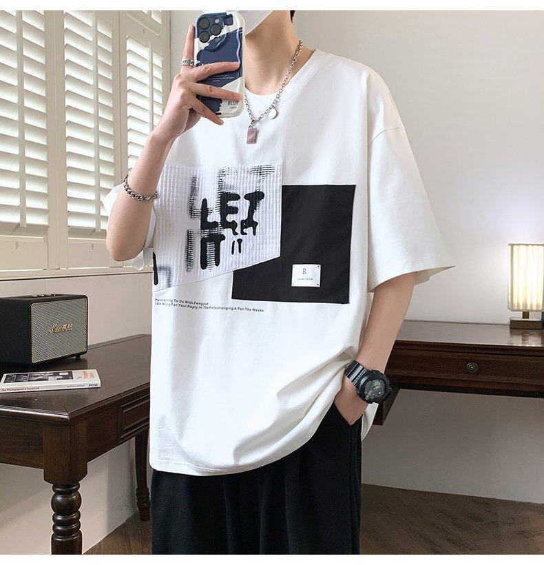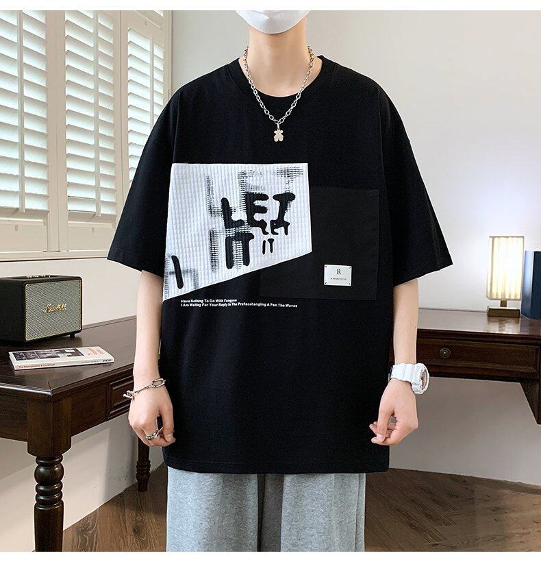 국경 간 무역 세대 AliExpress 인기 남성 의류 [신규] 여름 캐주얼 패션 티셔츠 남성용 반팔 바닥 셔츠스토어 가기
