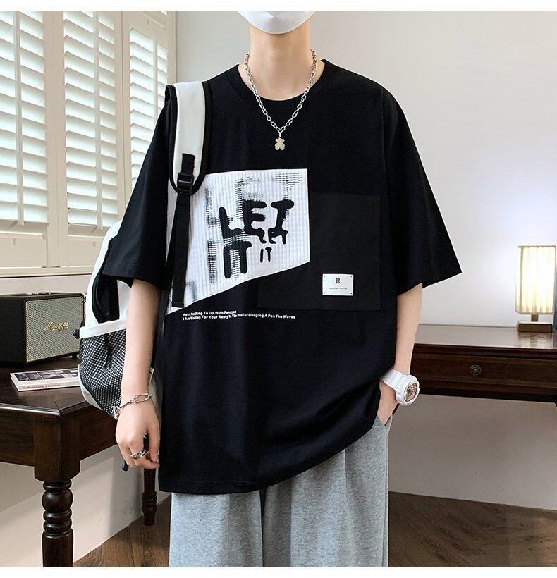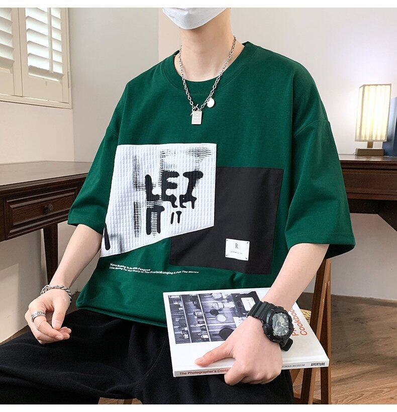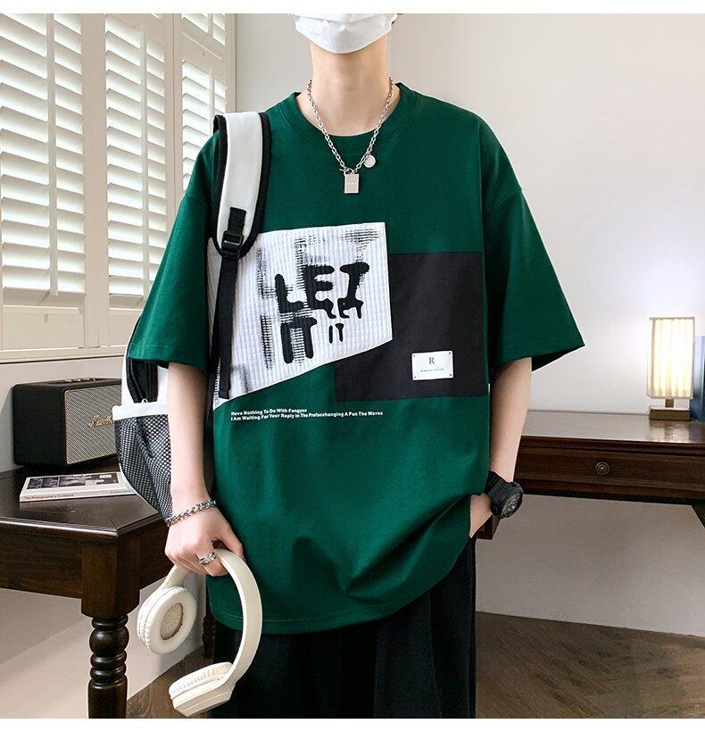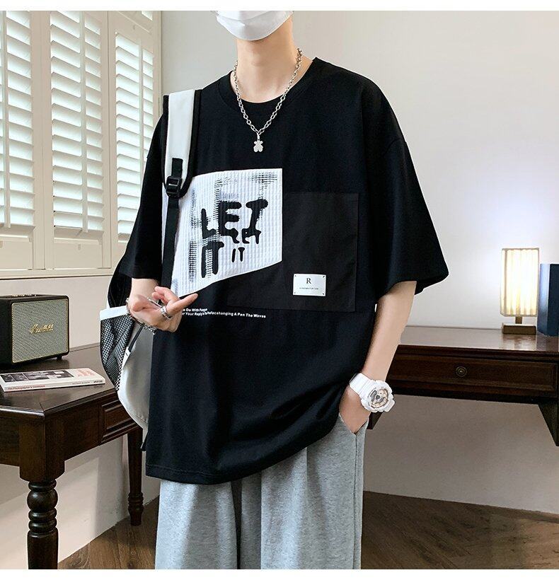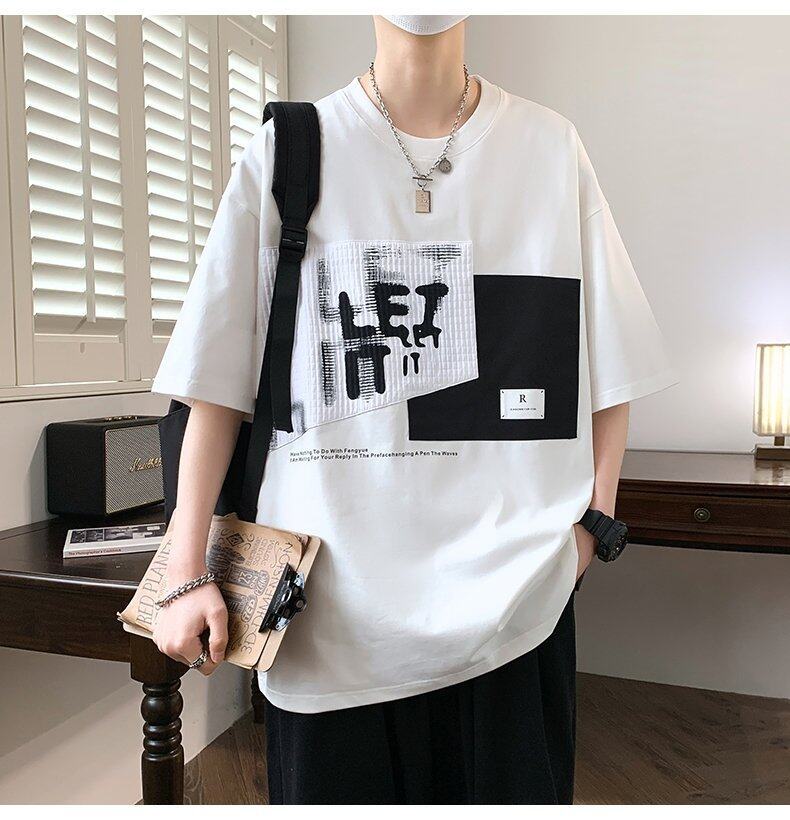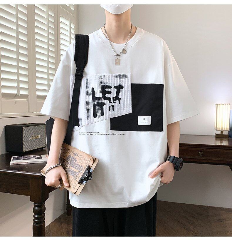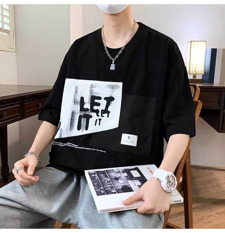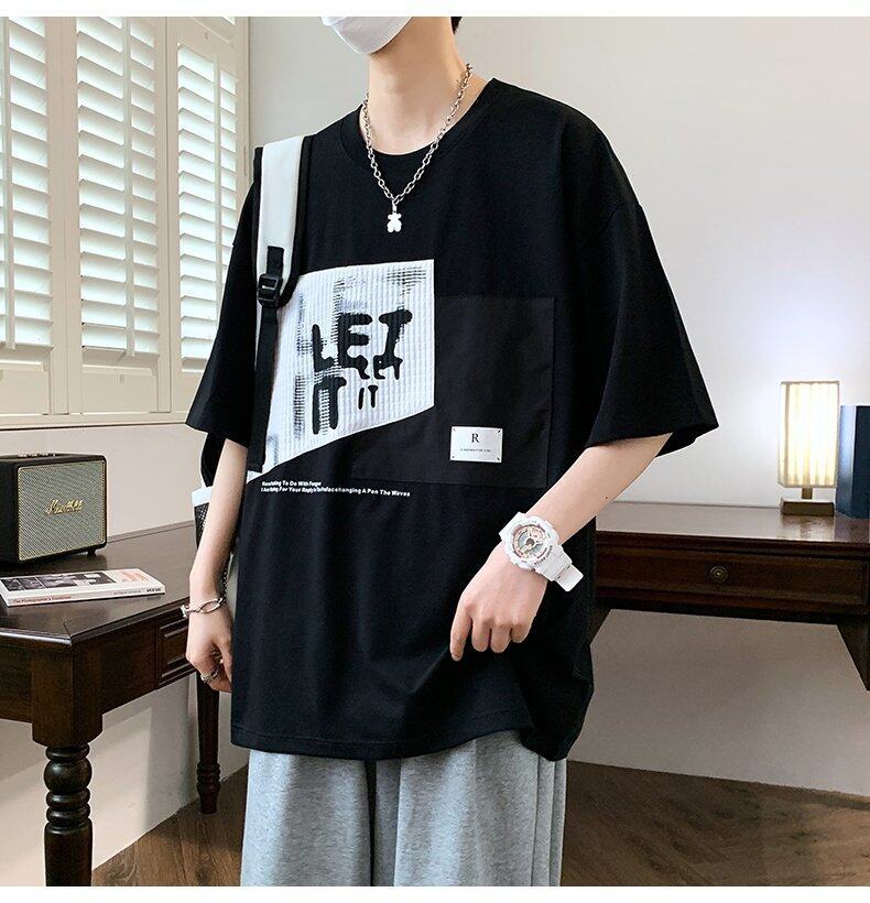 국경 간 무역 세대 AliExpress 인기 남성 의류 [신규] 여름 캐주얼 패션 티셔츠 남성용 반팔 바닥 셔츠스토어 가기