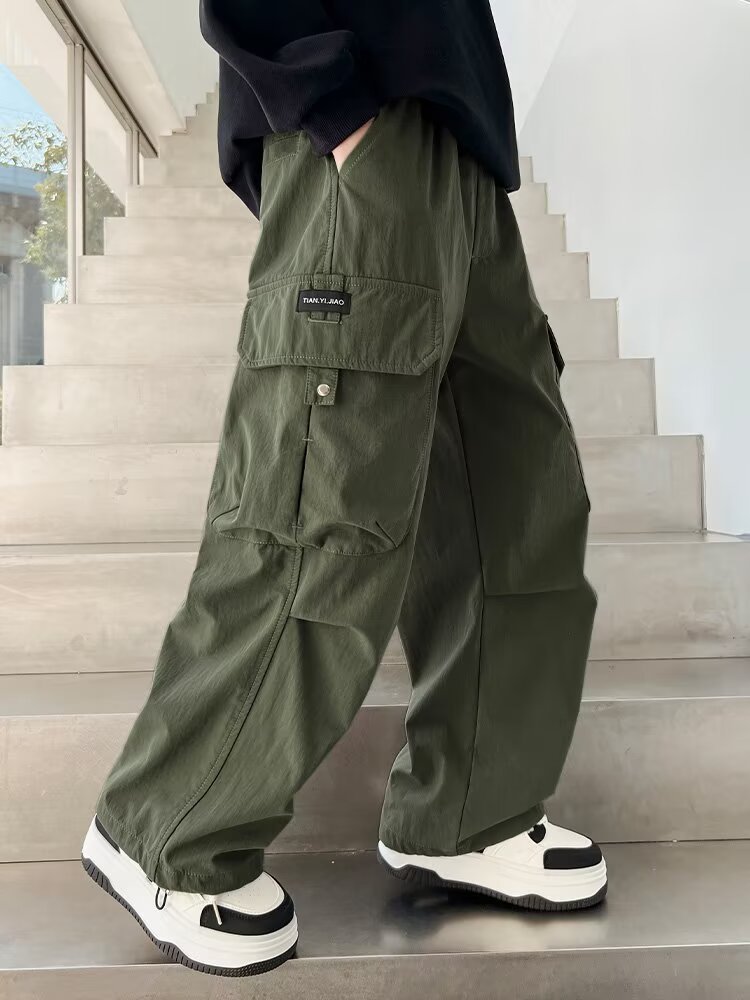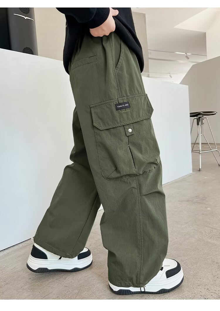 소년 작업복 봄과 가을 새로운 스포츠 바지 큰 소년 느슨한 유피 잘 생긴 서양 스타일 넓은 다리 캐주얼 바지 바지스토어 가기