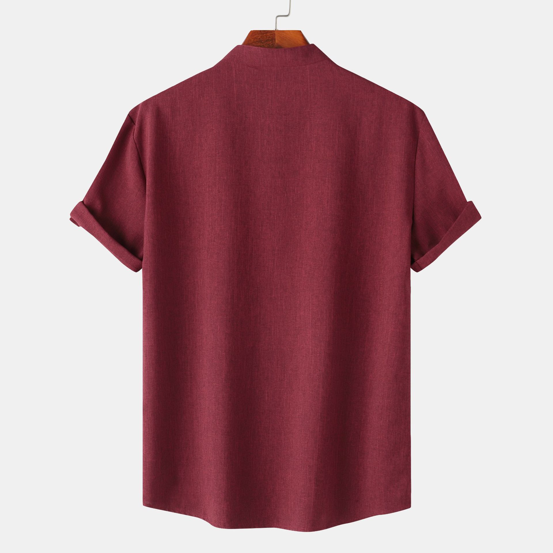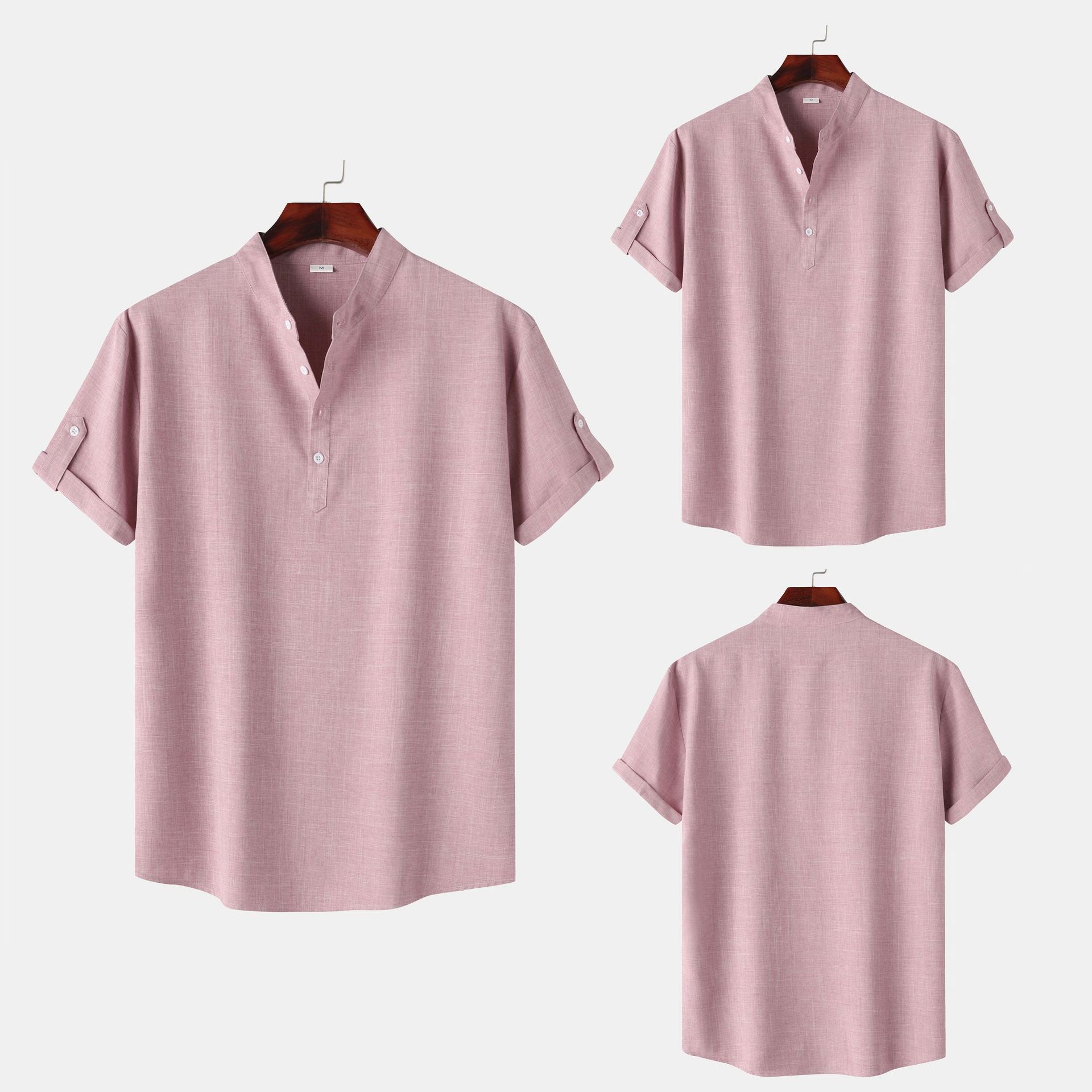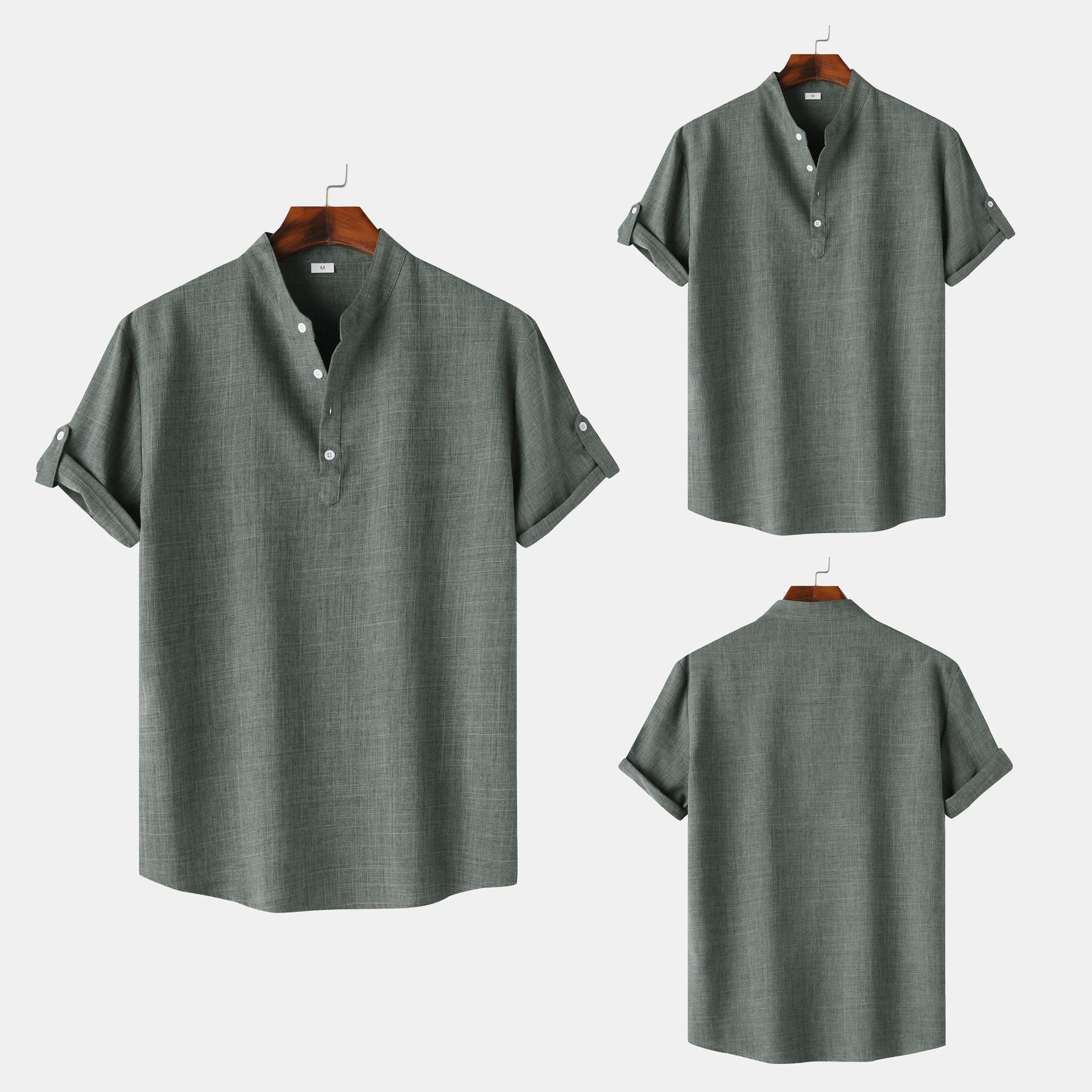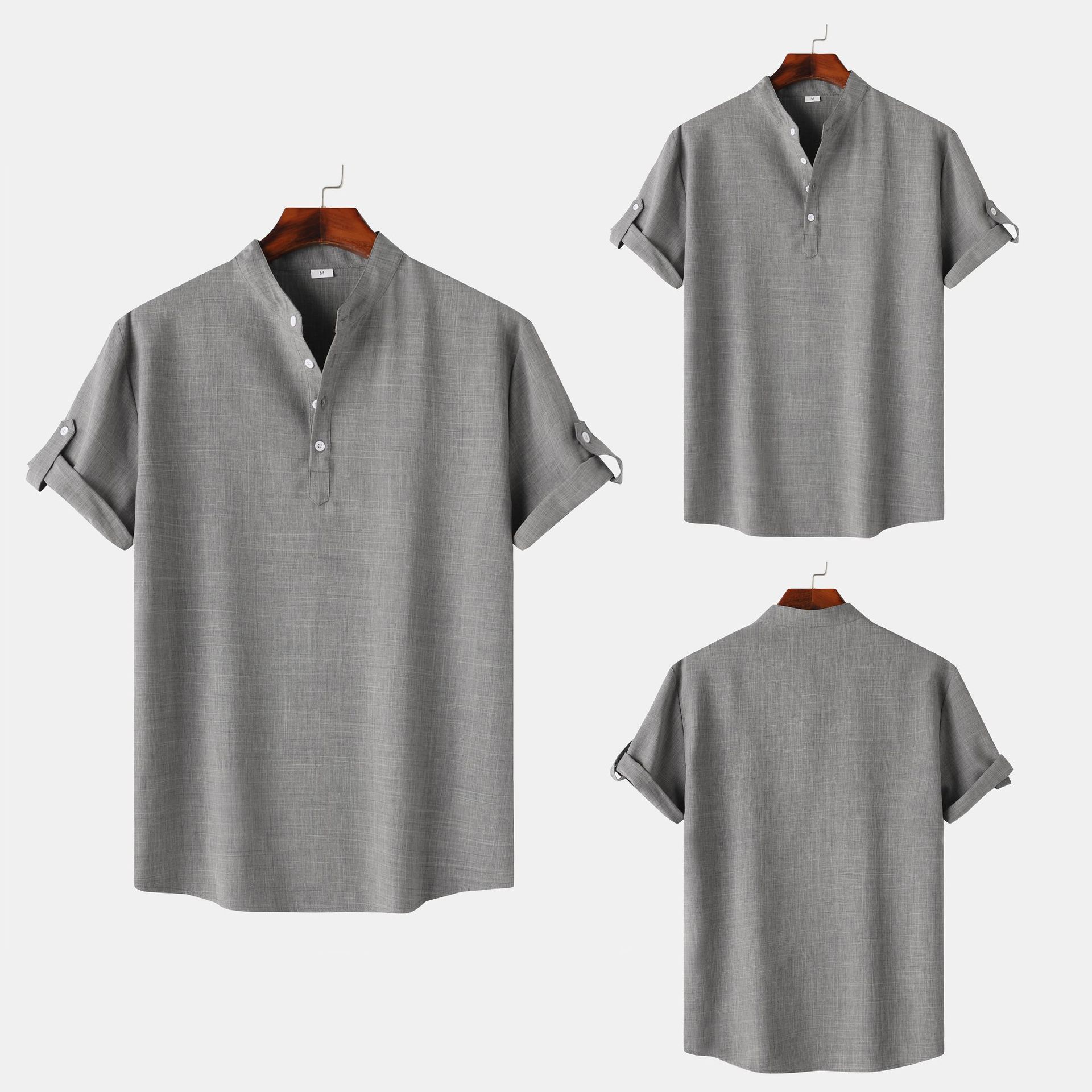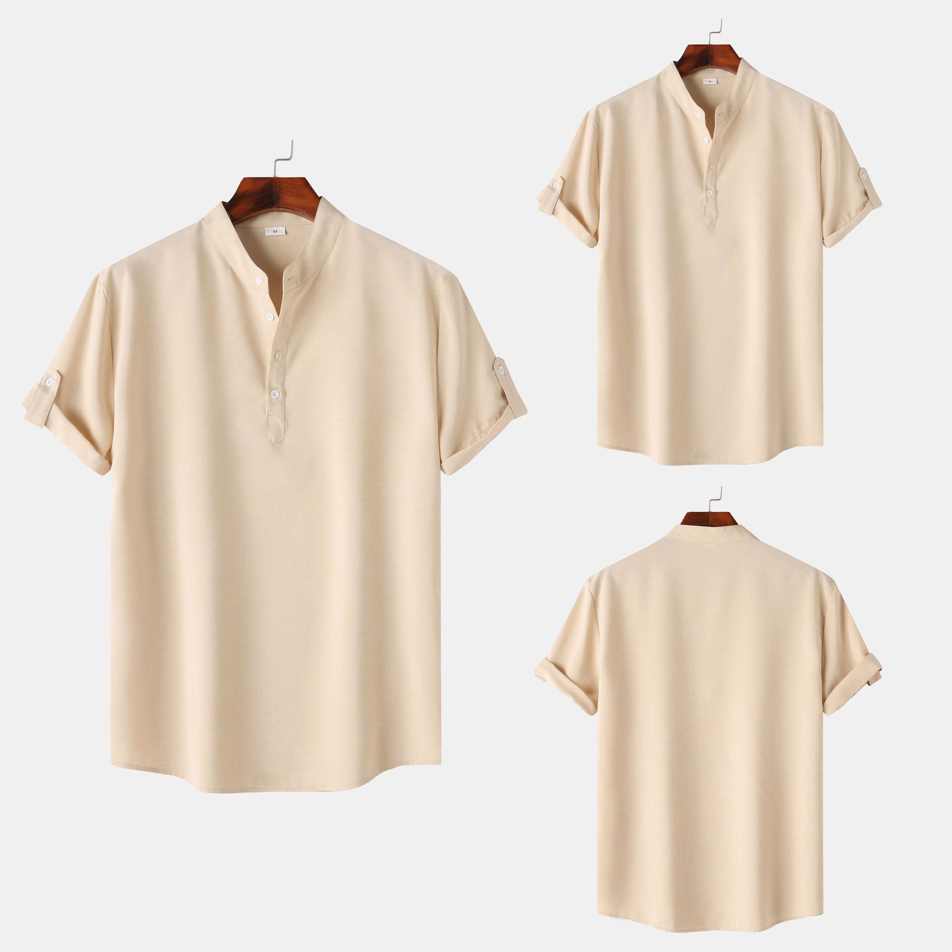 유럽과 미국 2025 아마존 봄과 가을 새로운 남자 단색 오픈 칼라 짧은 소매 유행 올 매치 셔츠