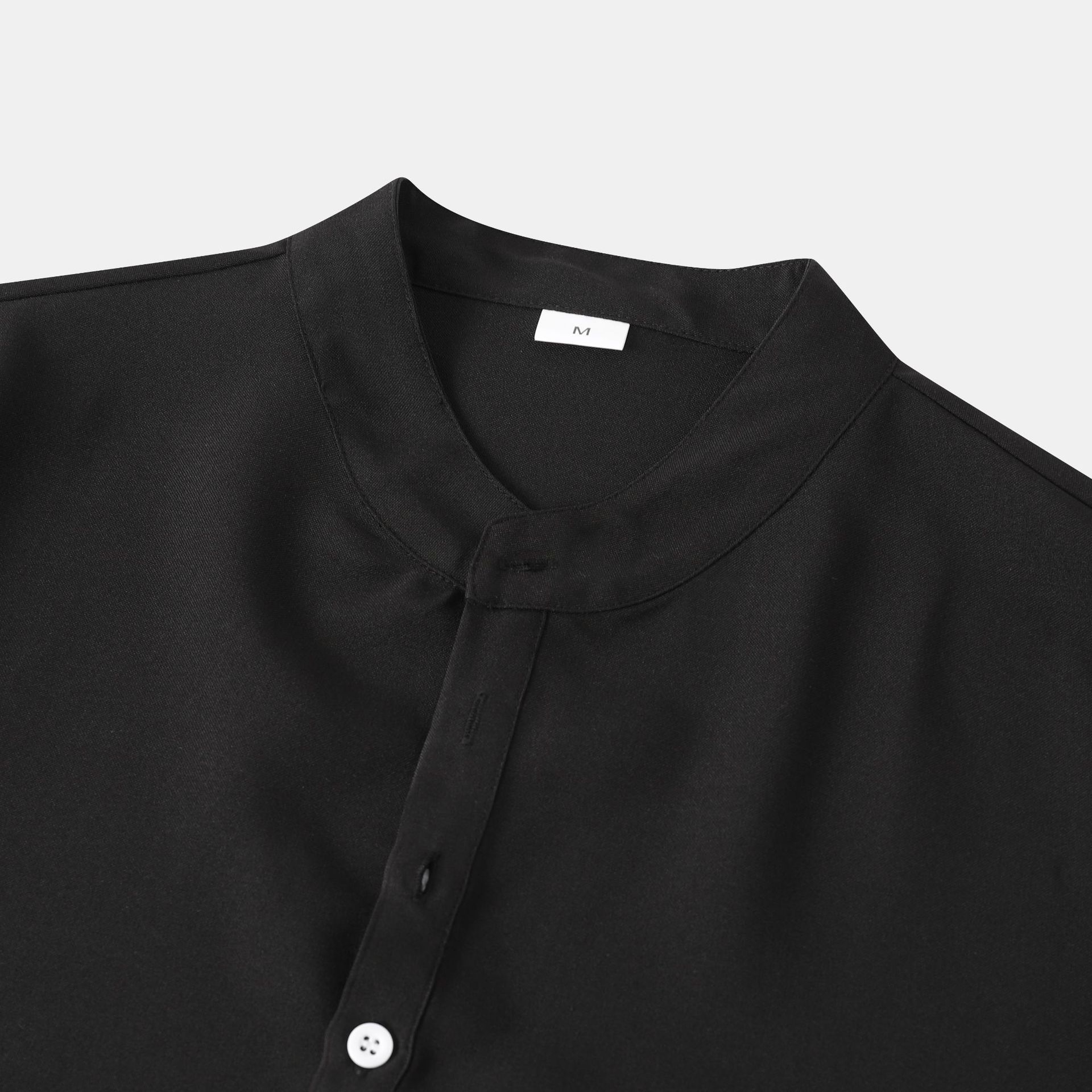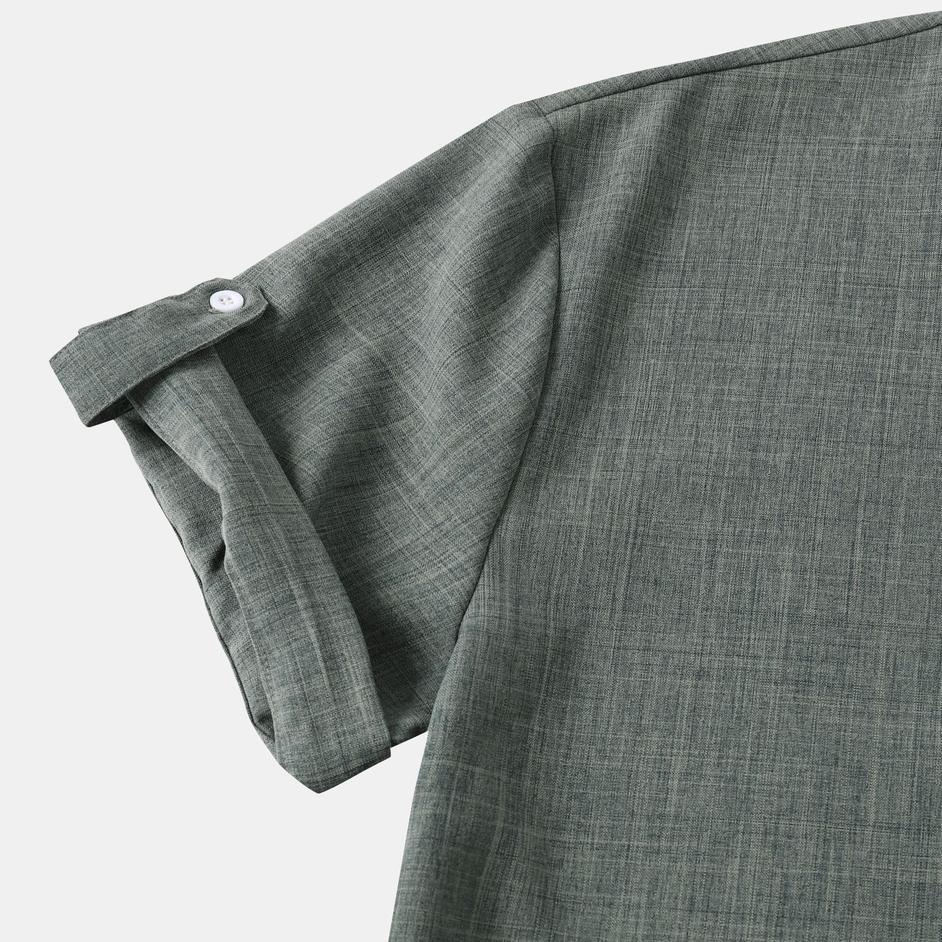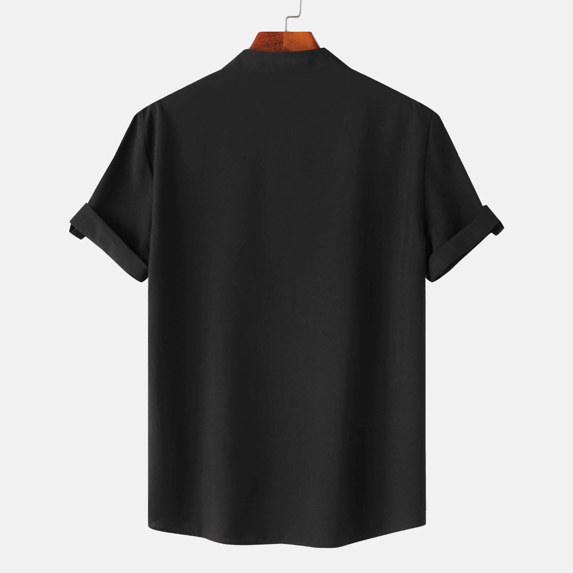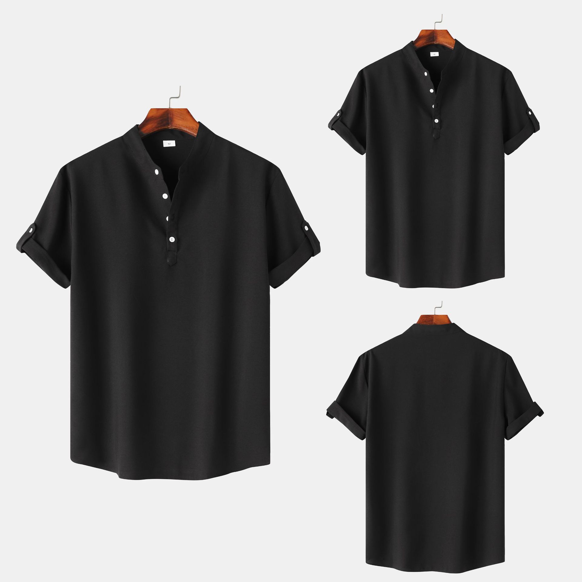 유럽과 미국 2025 아마존 봄과 가을 새로운 남자 단색 오픈 칼라 짧은 소매 유행 올 매치 셔츠