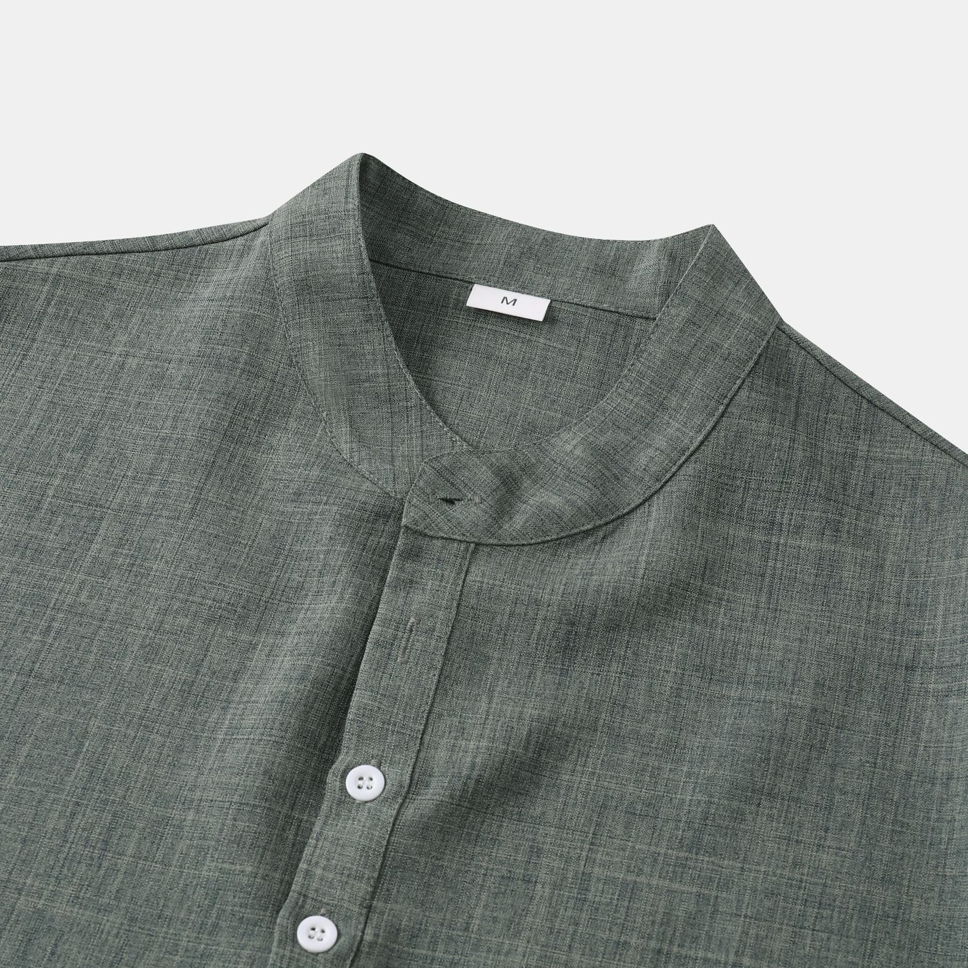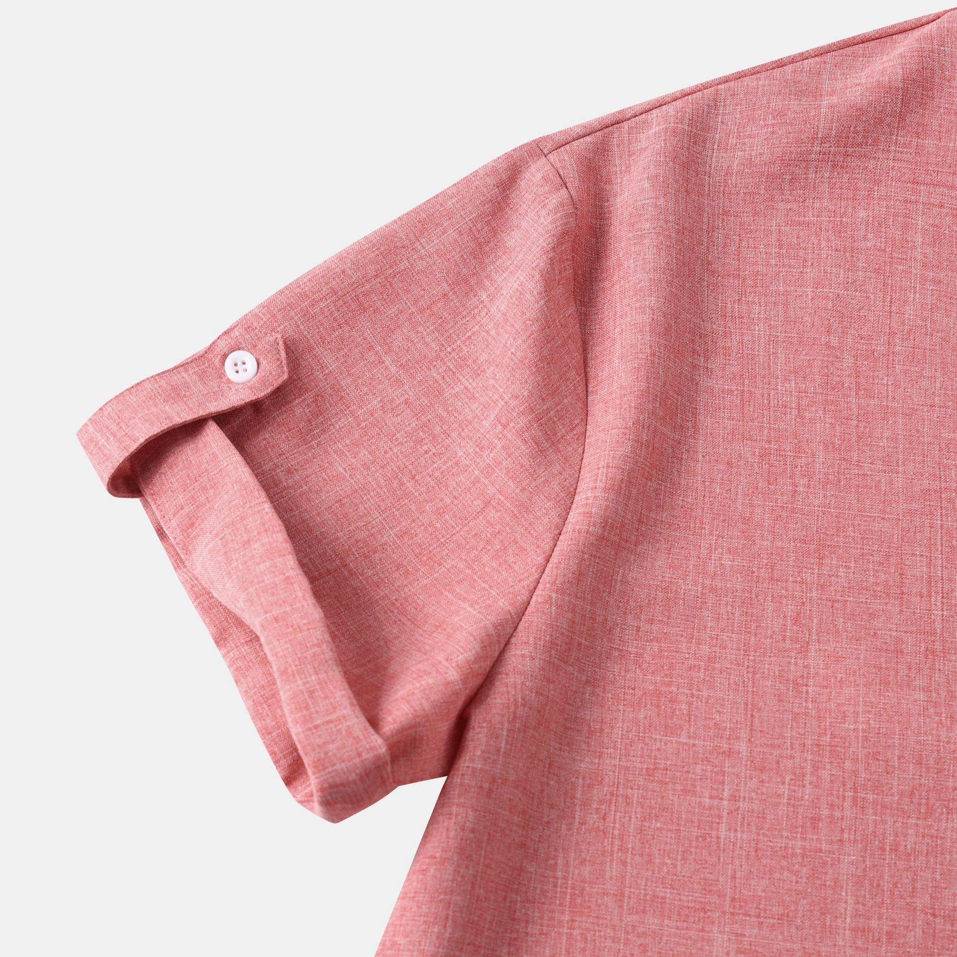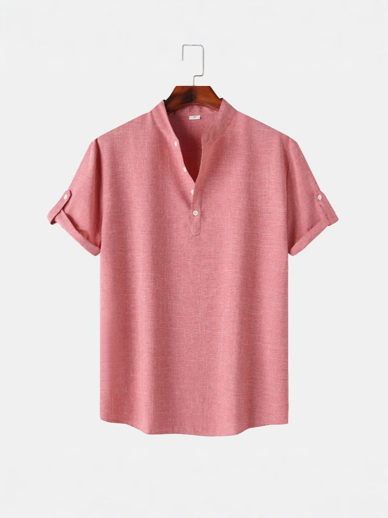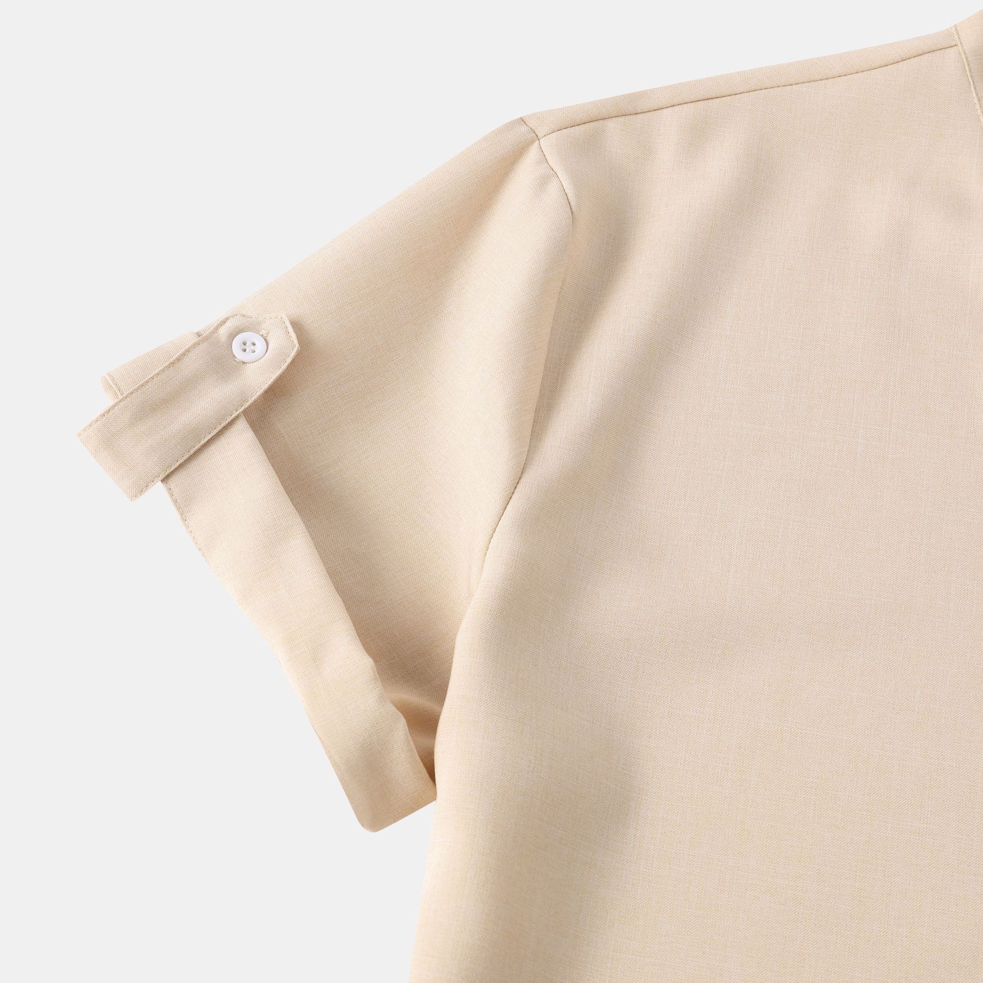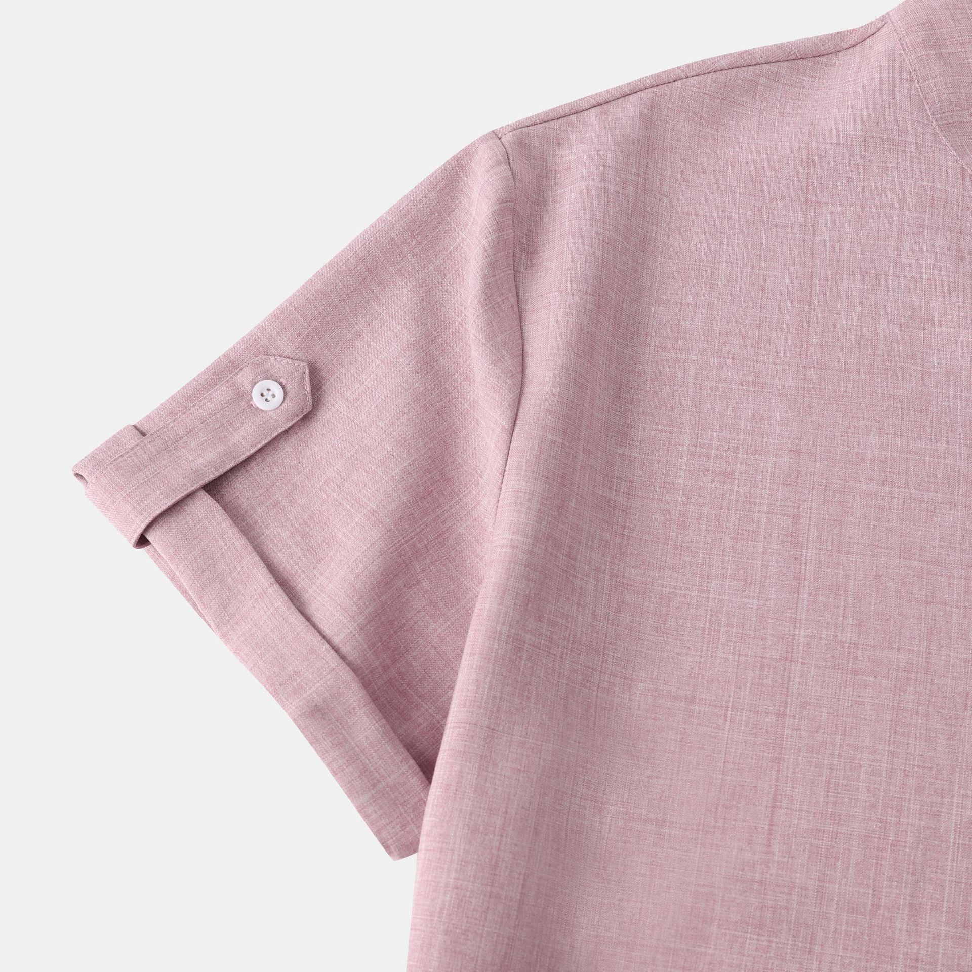 유럽과 미국 2025 아마존 봄과 가을 새로운 남자 단색 오픈 칼라 짧은 소매 유행 올 매치 셔츠