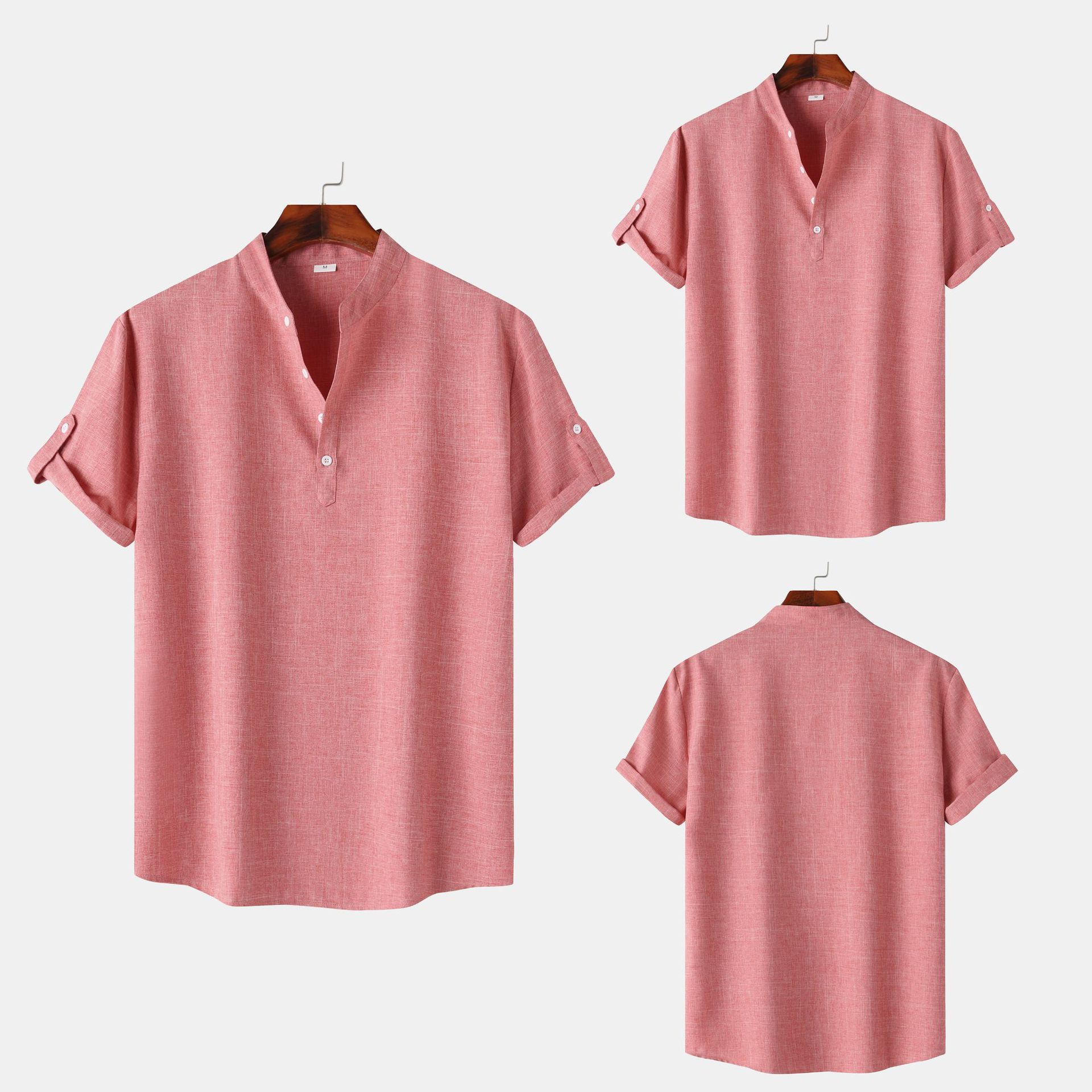 유럽과 미국 2025 아마존 봄과 가을 새로운 남자 단색 오픈 칼라 짧은 소매 유행 올 매치 셔츠스토어 가기
