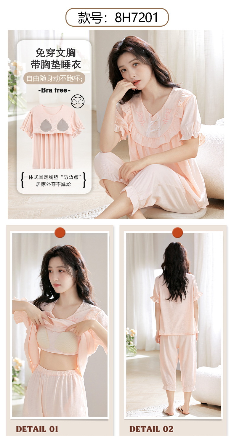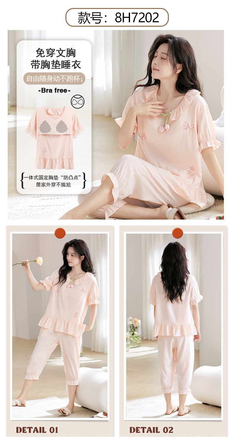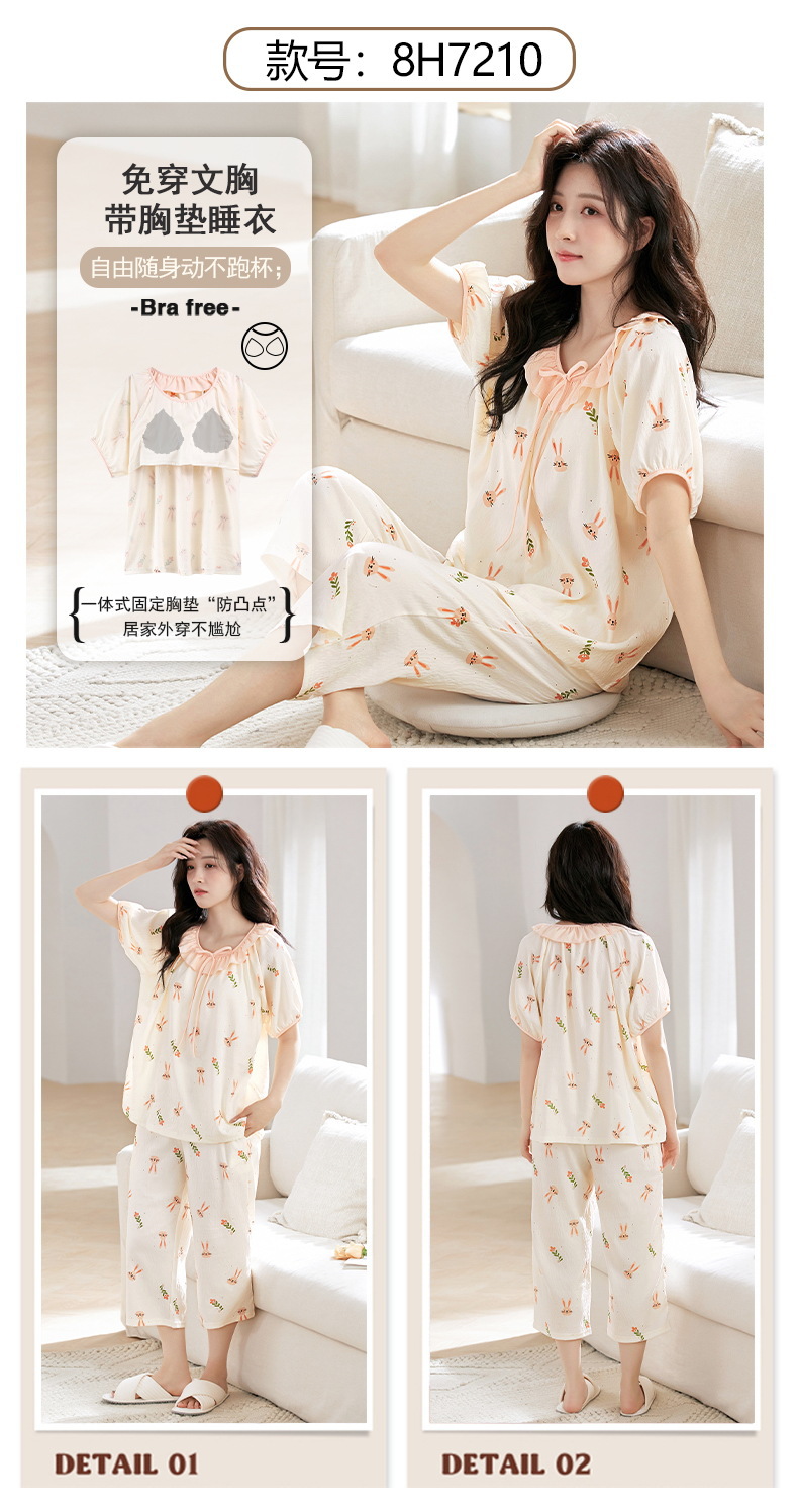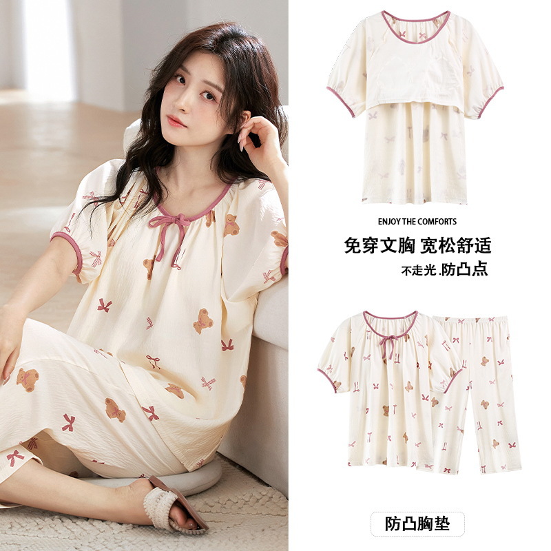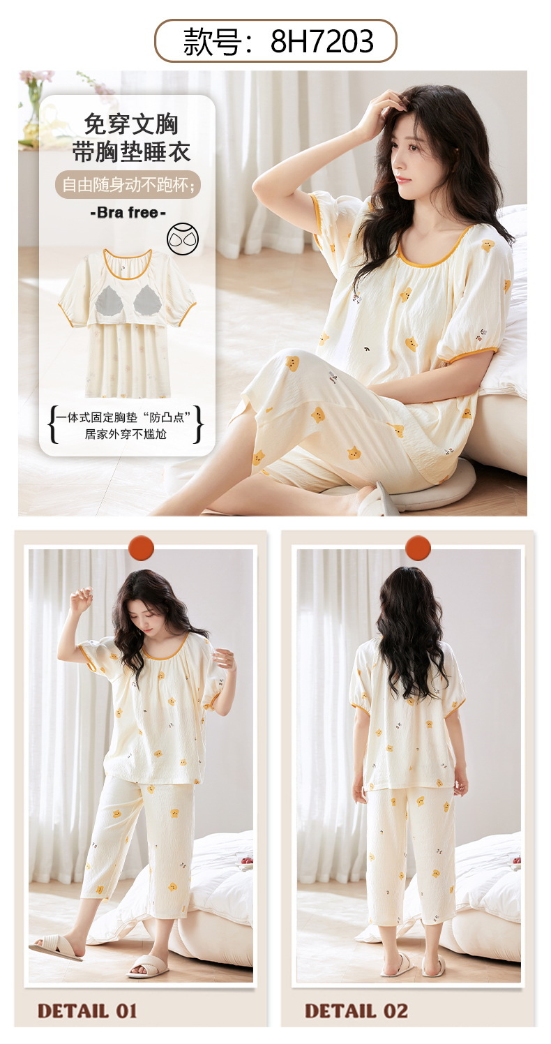 클라우드 코튼 반팔 자른 바지 파자마 여성 여름 달콤한 공주 스타일 가슴 패드 홈 옷 여성 캐주얼 잠옷스토어 가기