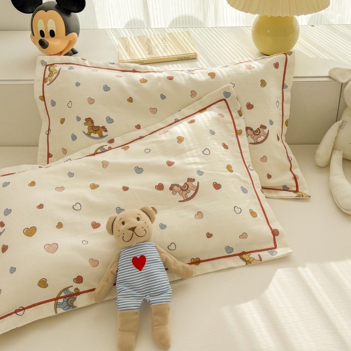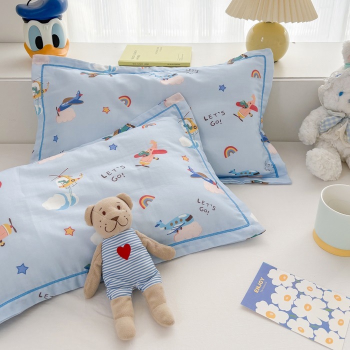 2025 새로운 면 클래스 A 세척 더블 레이어 원사 만화 어린이 베개 봉투 베개 단일 베개 케이스