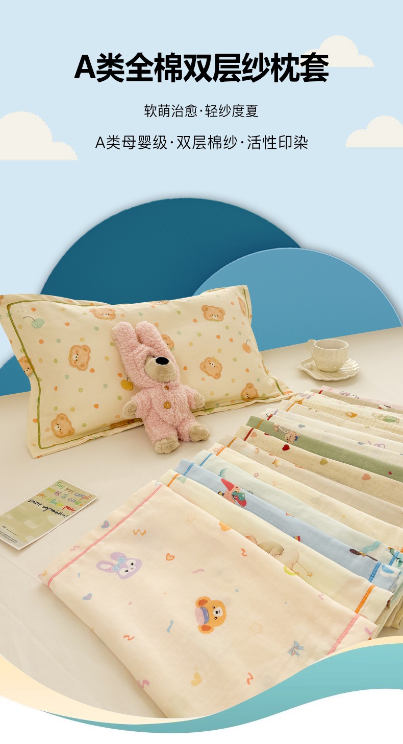 2025 새로운 면 클래스 A 세척 더블 레이어 원사 만화 어린이 베개 봉투 베개 단일 베개 케이스스토어 가기