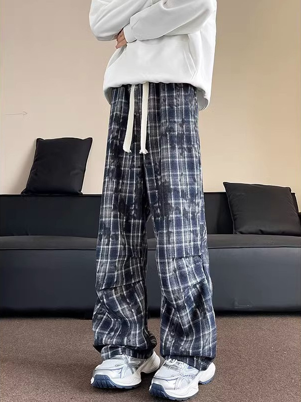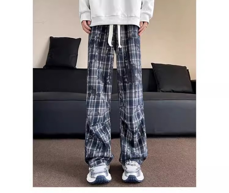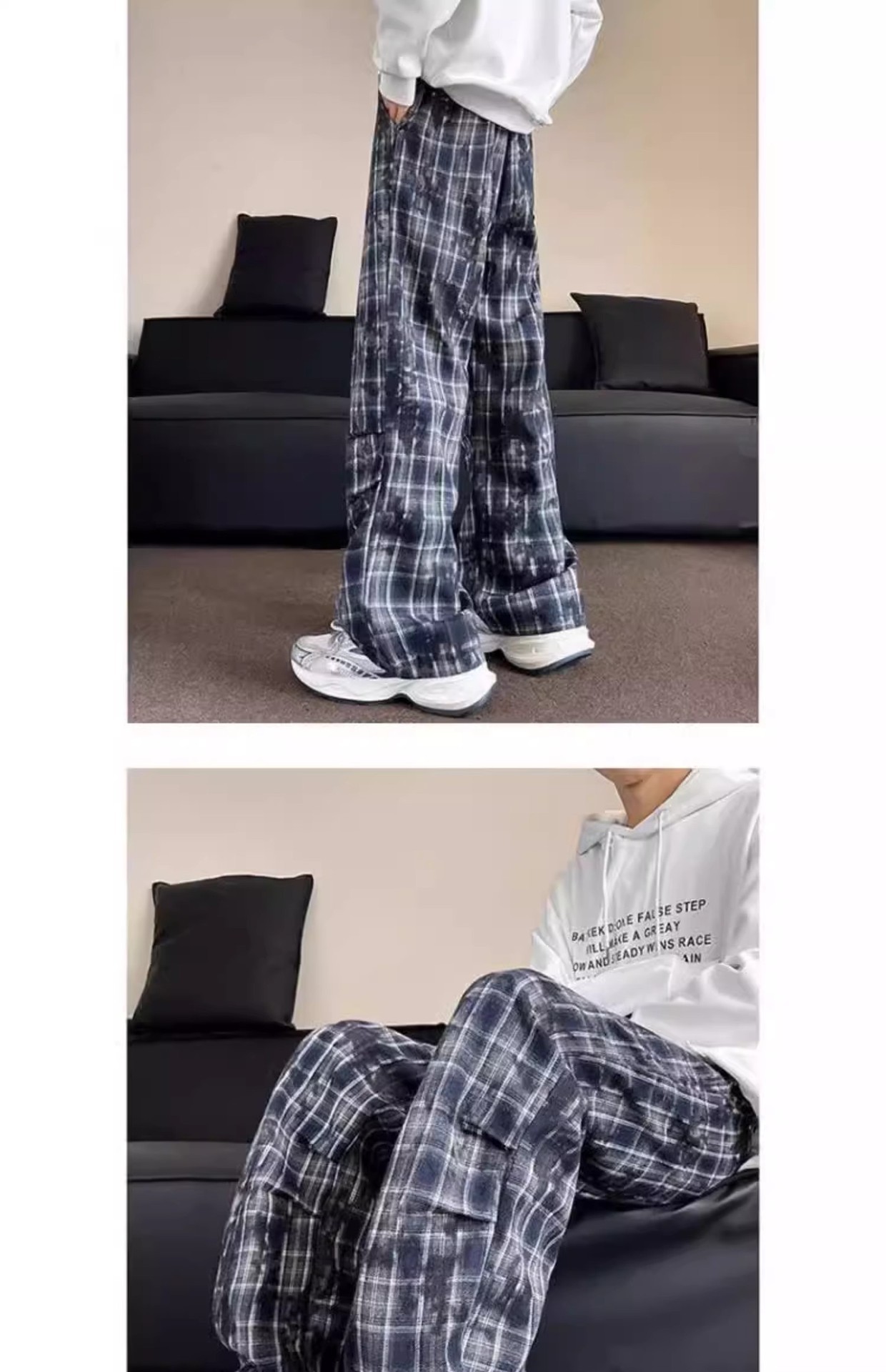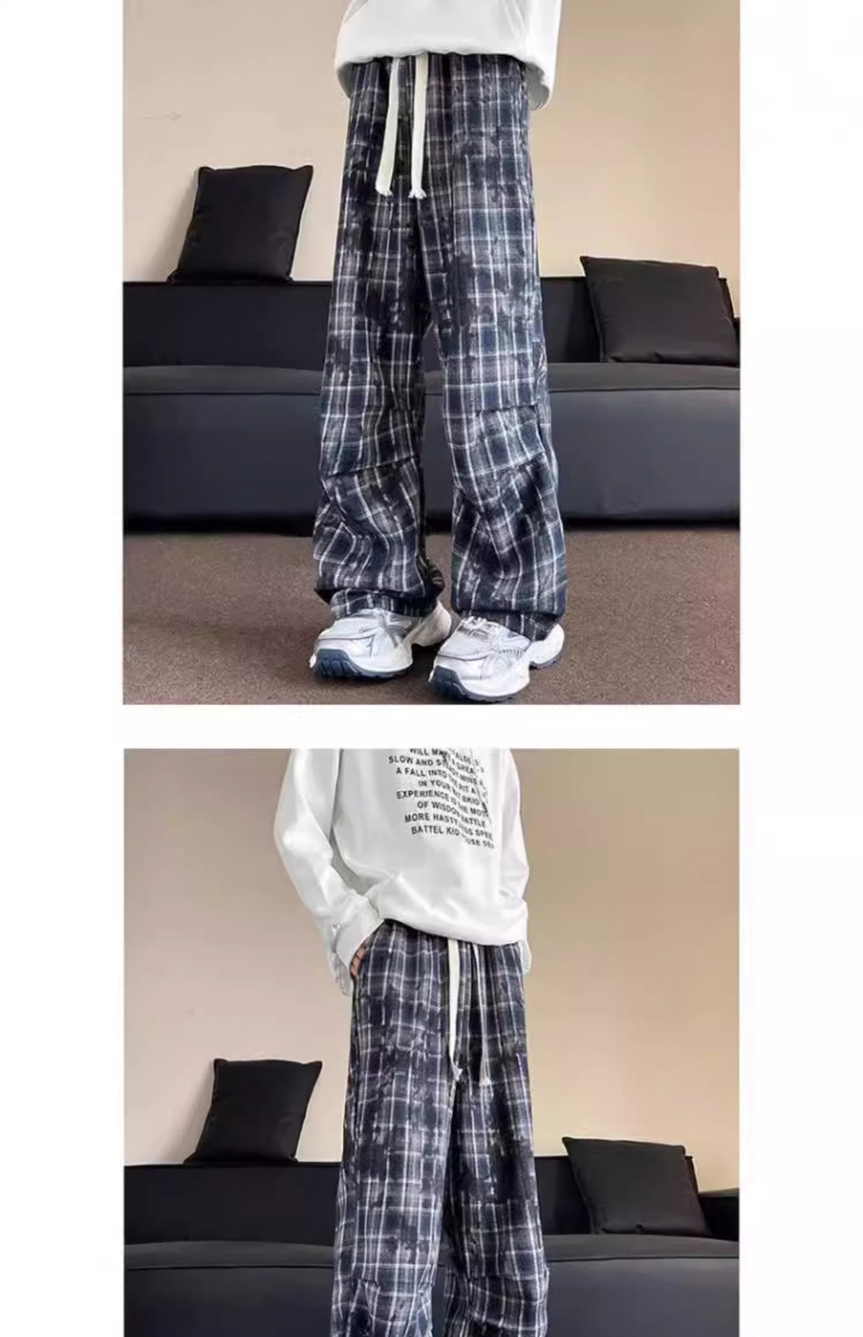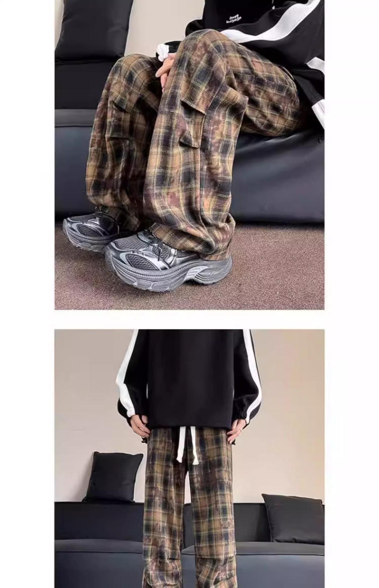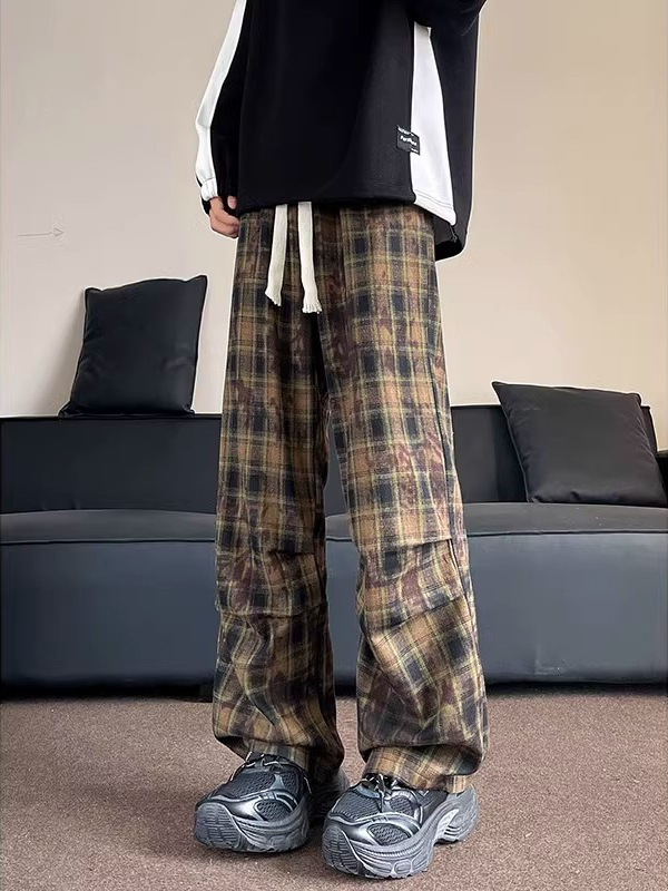 미국 스타일 복고풍 격자 무늬 캐주얼 바지 오버 사이즈 데프 스트레이트 바지 남성 가을 패션 브랜드 느슨한 넓은 다리 바지스토어 가기