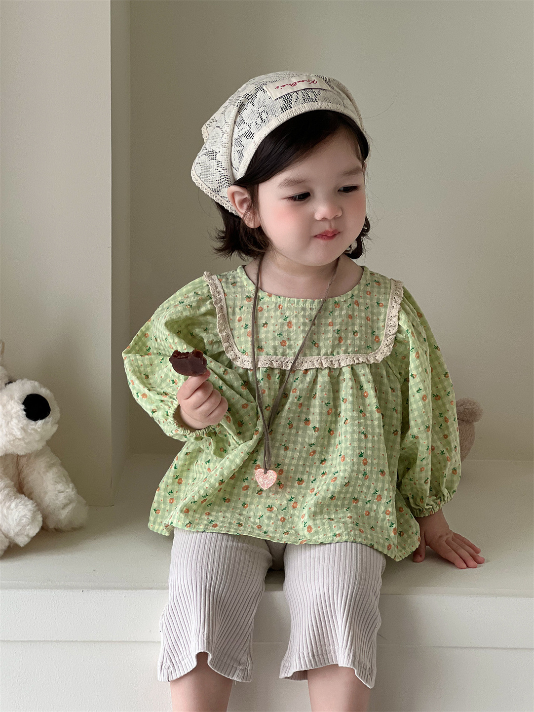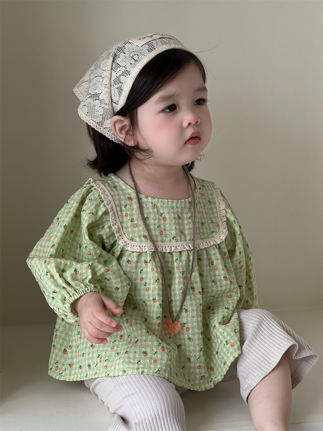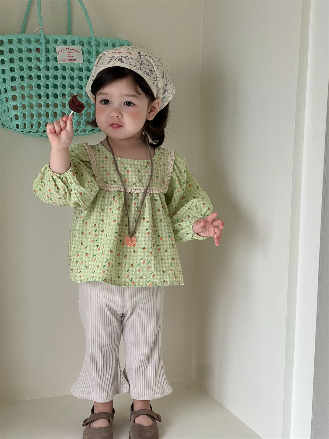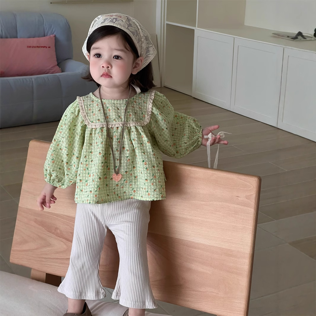 아동 가을 정장 한국 스타일 아동복 아기 레이스 인형 셔츠 벨 바닥 투피스 세트 가을 소녀 옷