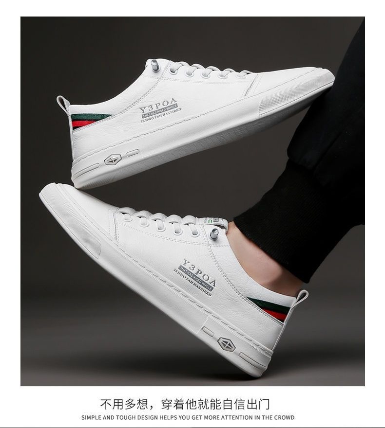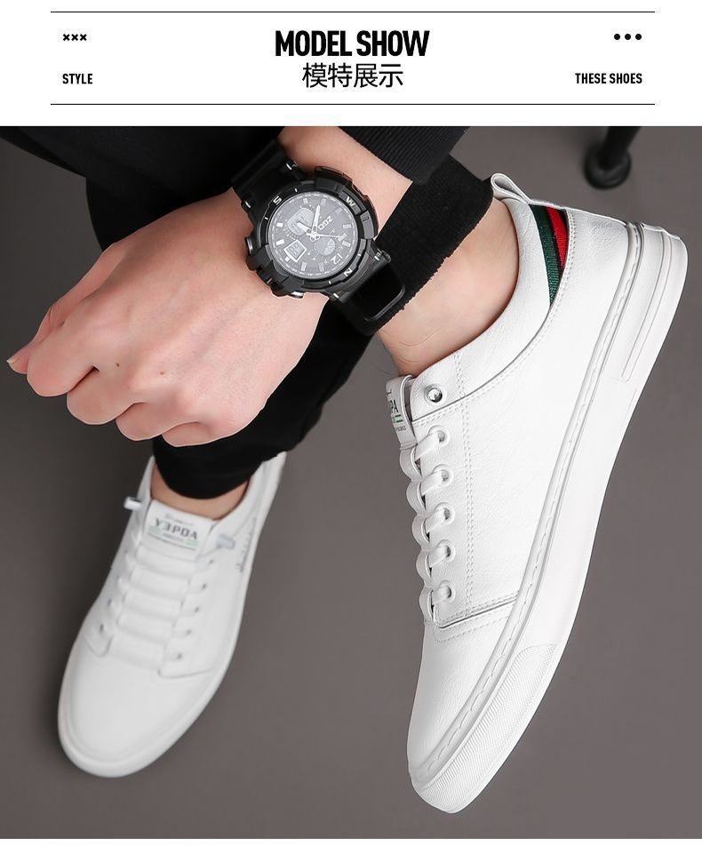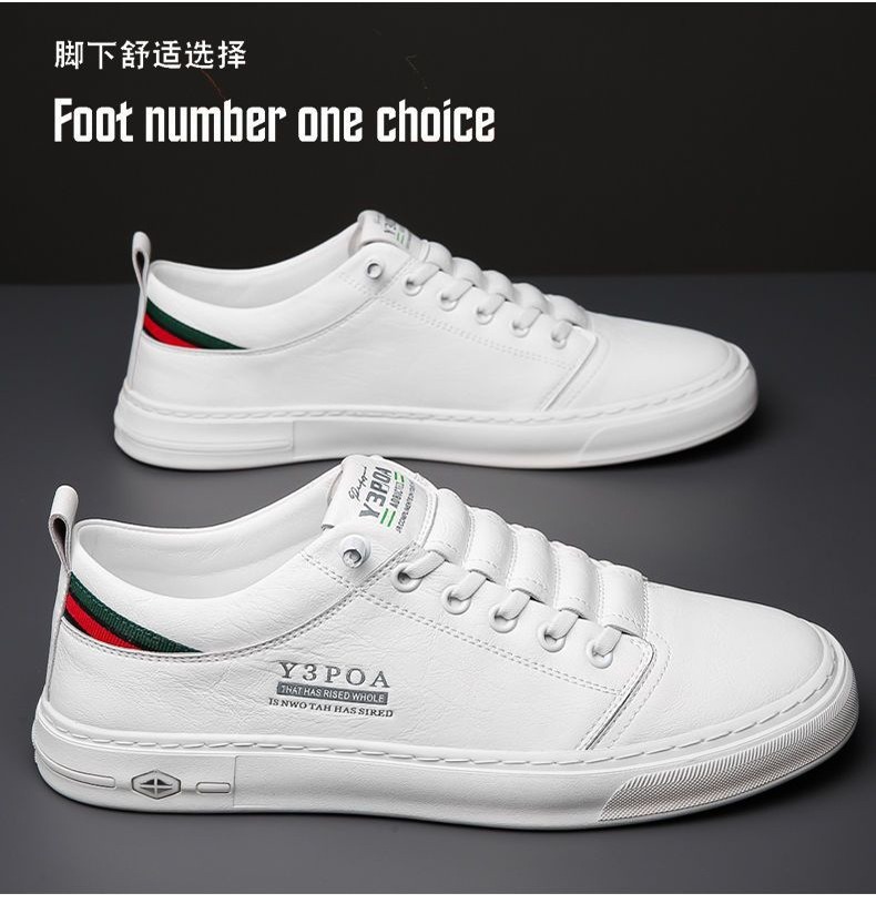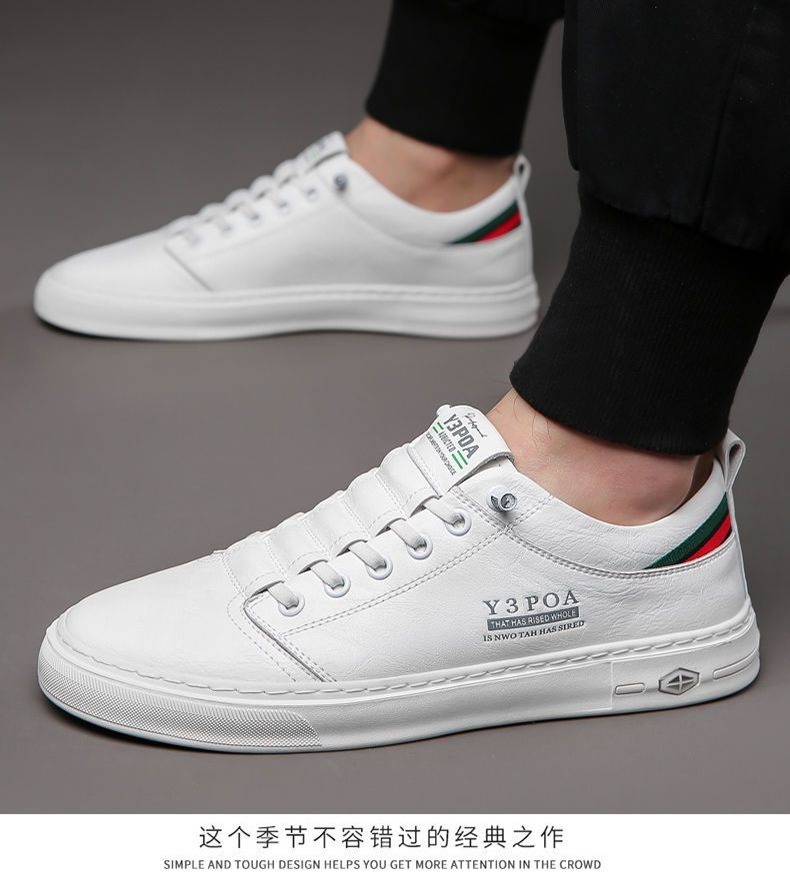 새로운 폭발 남성 흰색 신발 손으로 꿰매는 가죽 신발 부드러운 바닥 부드러운 표면 유행 올 매치 캐주얼 신발 학생 보드 신발