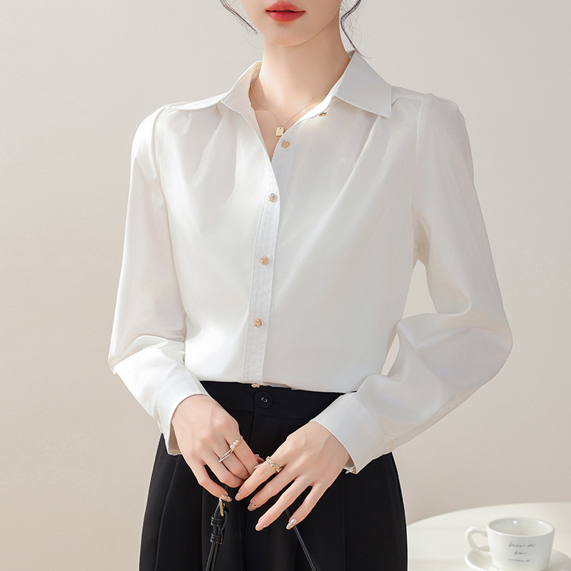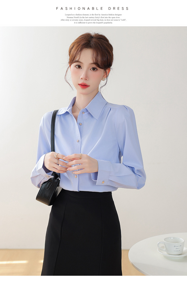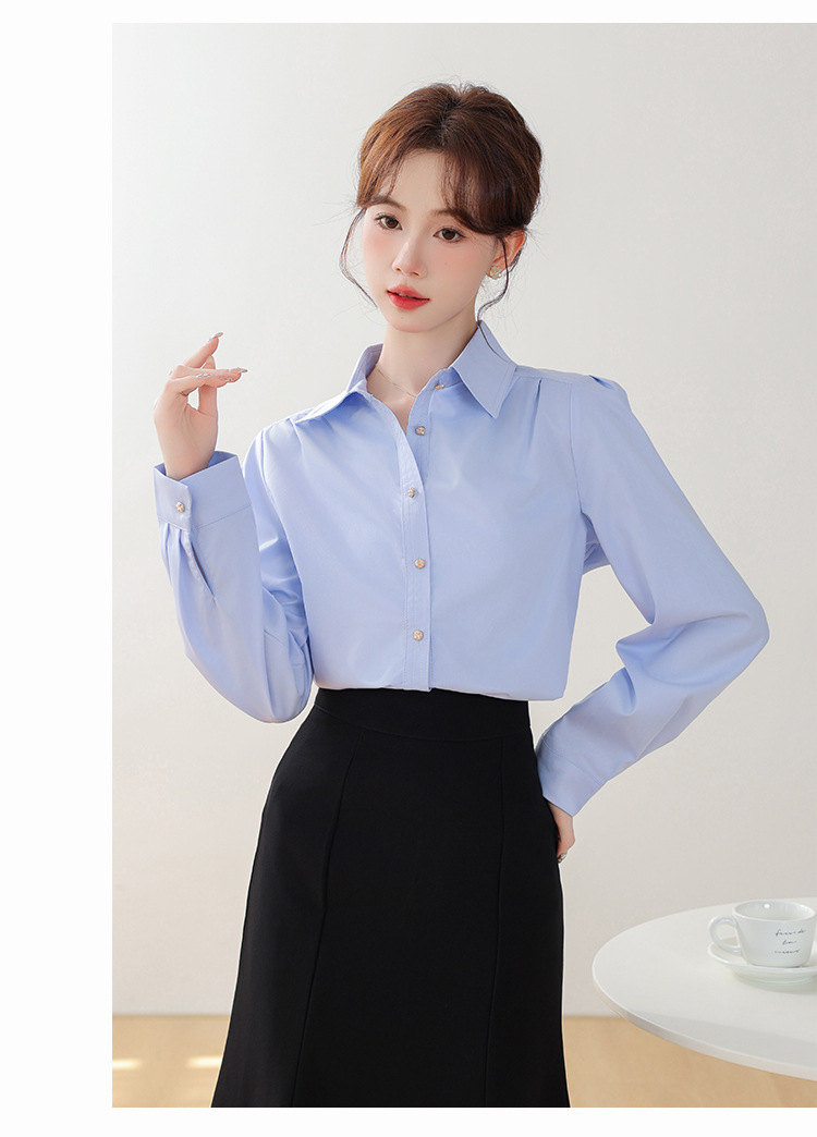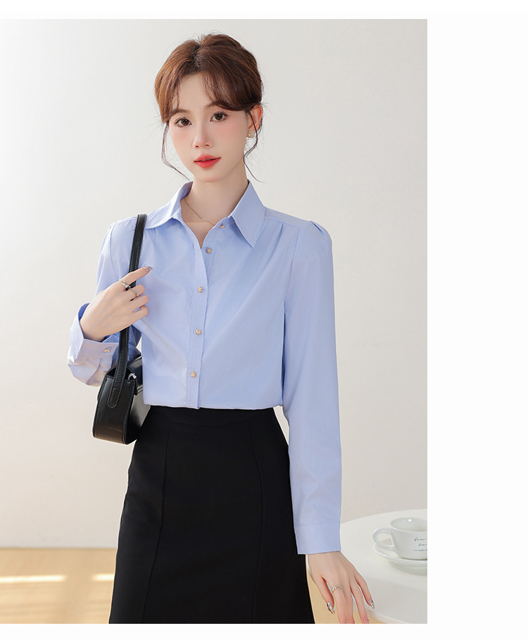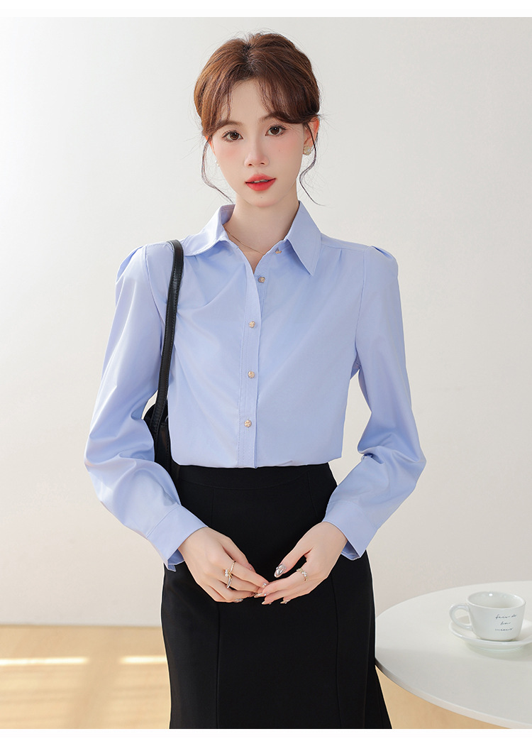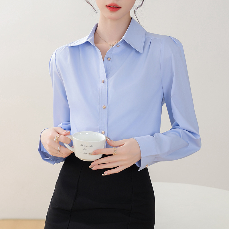 통근자 포수트 싱글 브레스트 긴팔 셔츠 여성의 2025 봄 새로운 간단한 단색 전문 셔츠 탑 크록