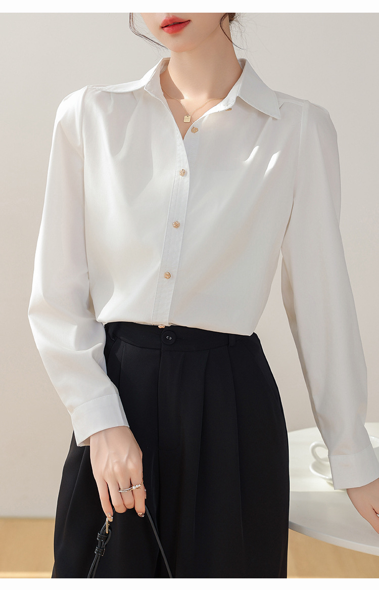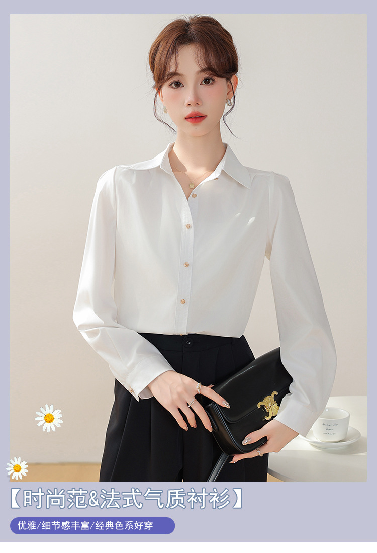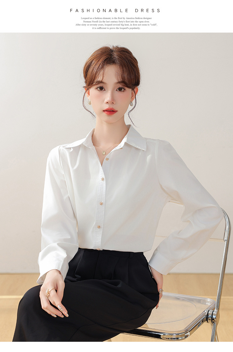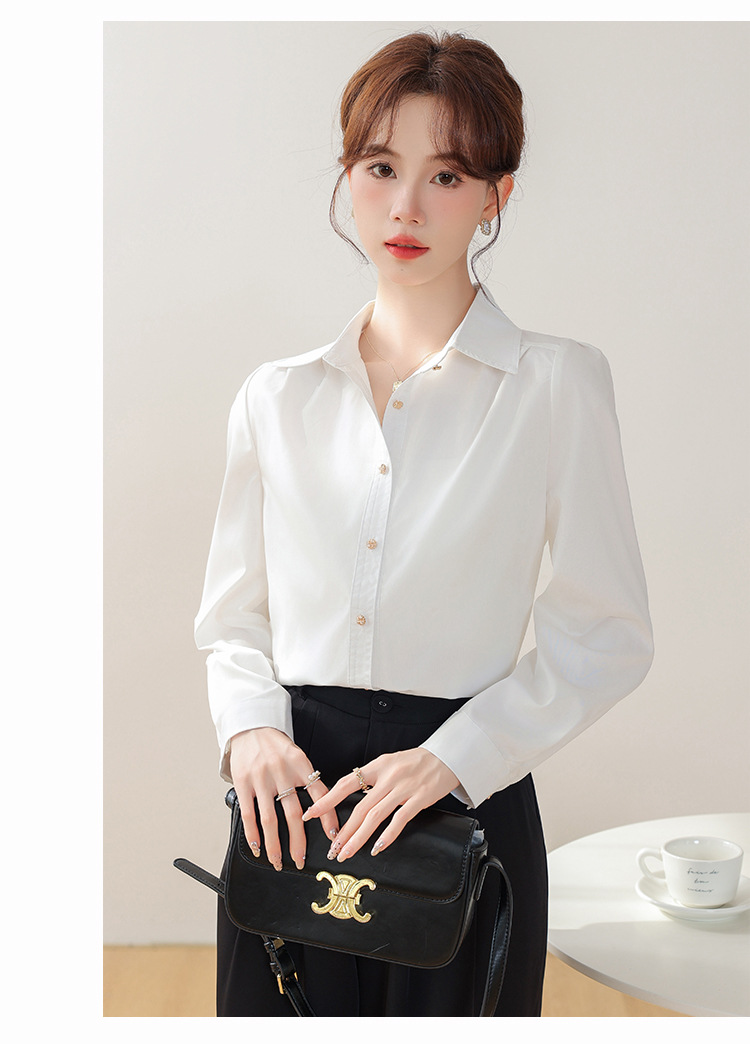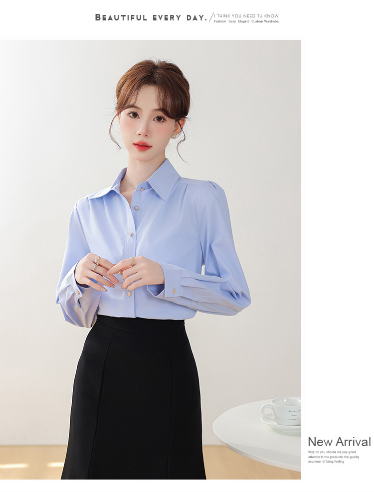 통근자 포수트 싱글 브레스트 긴팔 셔츠 여성의 2025 봄 새로운 간단한 단색 전문 셔츠 탑 크록